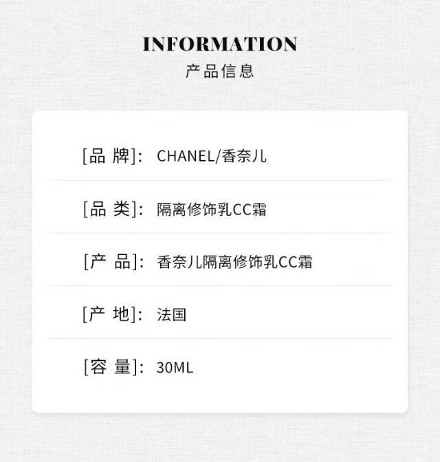 专柜630 香奈儿 CC霜保湿隔离妆前乳30ml懒人粉底遮瑕 10象牙白-白皙色30ml