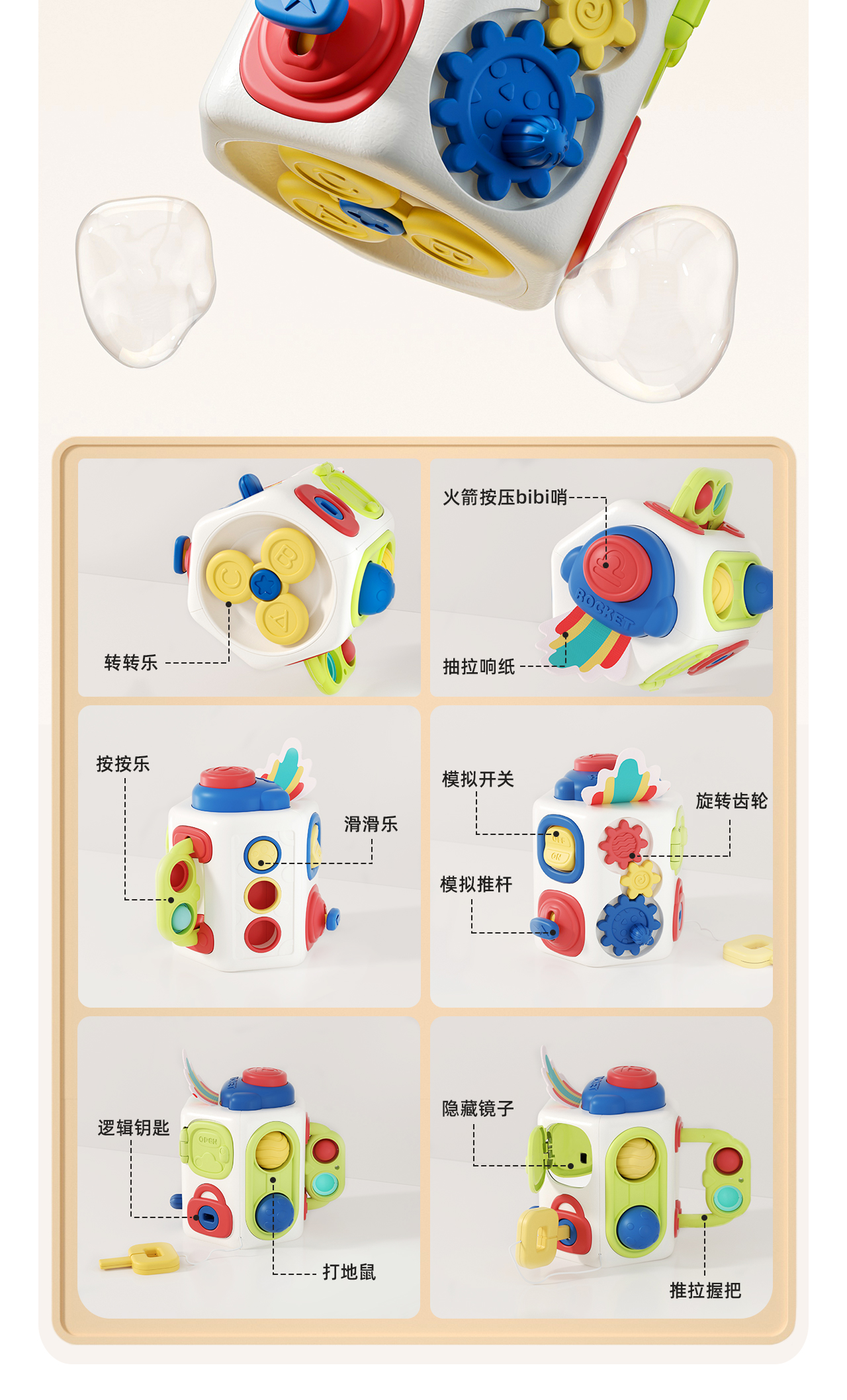 【孕味秒杀专属】曼龙mloong宝宝忙碌球六面体男女孩早教益智多面体1-3岁趣味婴儿童玩具