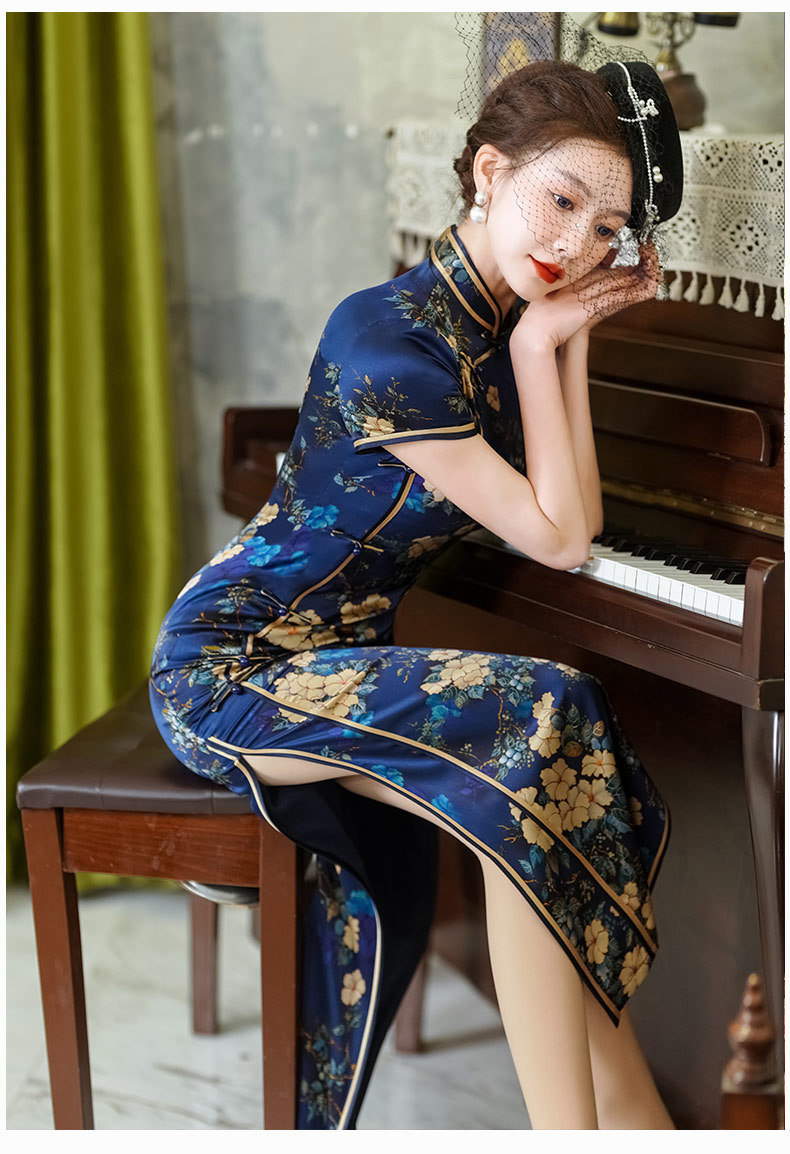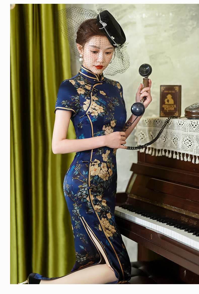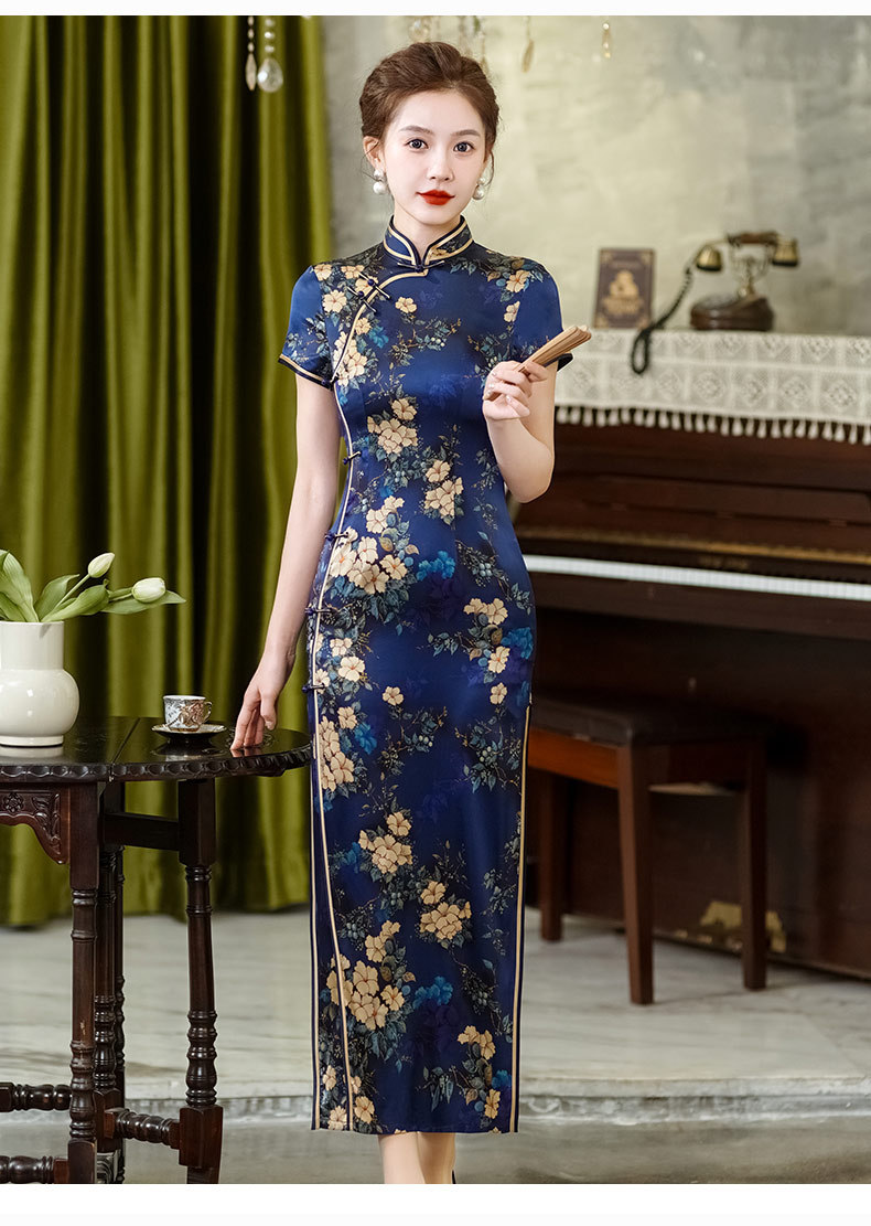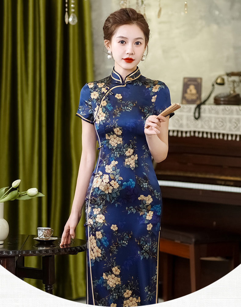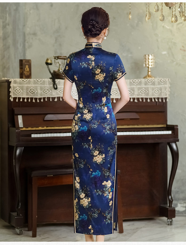 WX-春季新款真丝旗袍中式桑蚕丝连衣裙手工缝制宴席日常可穿