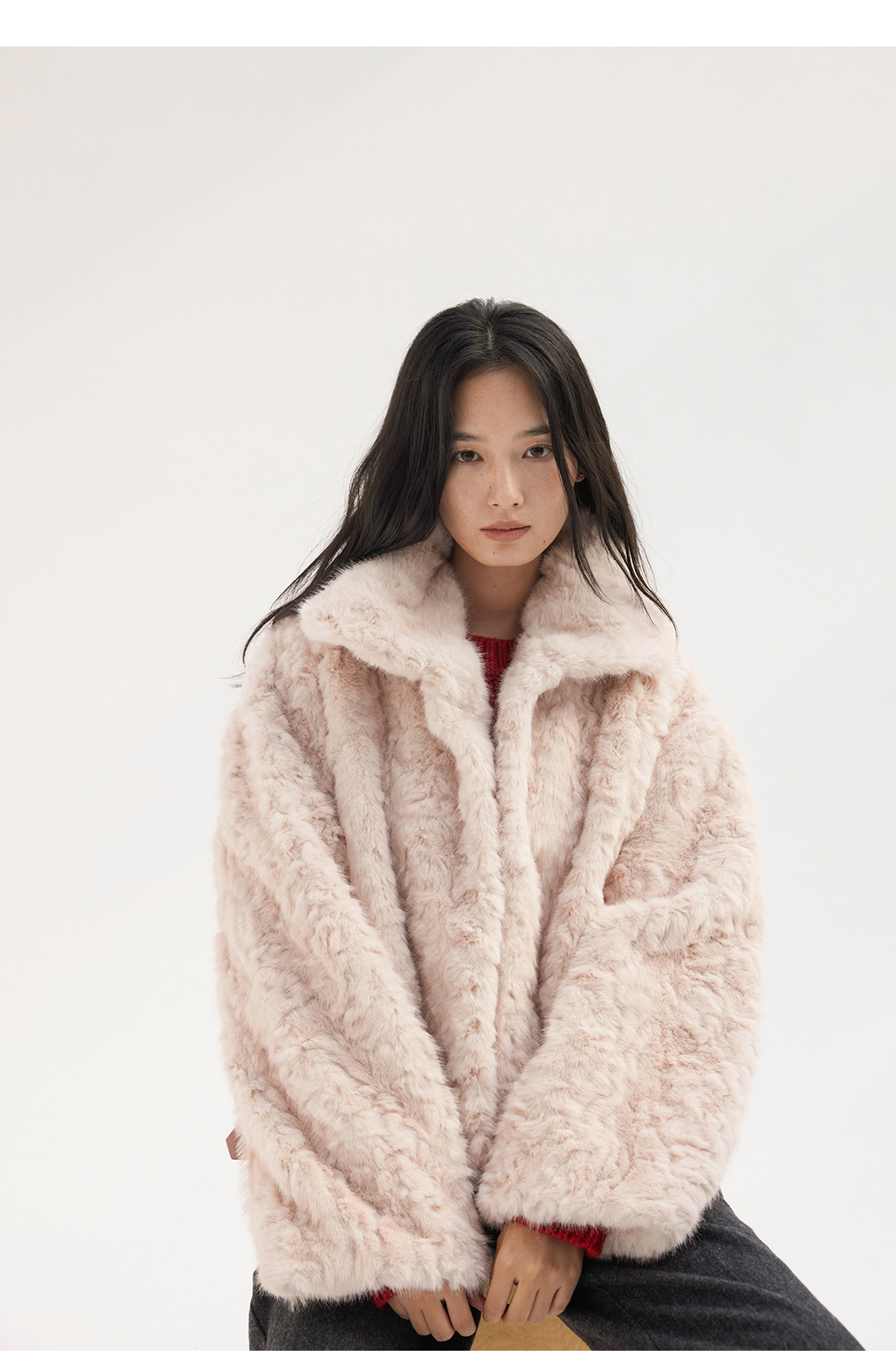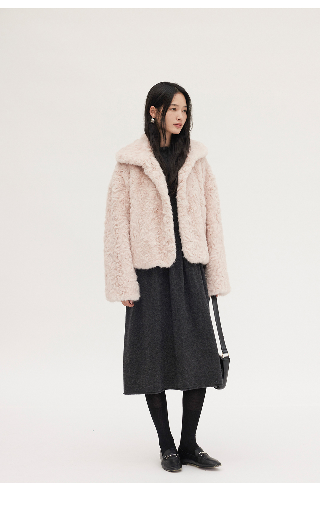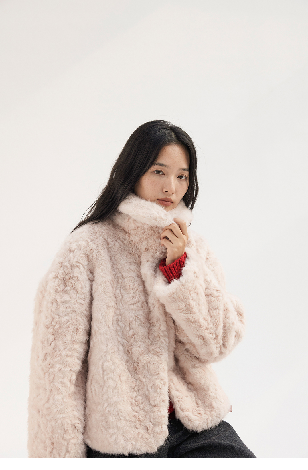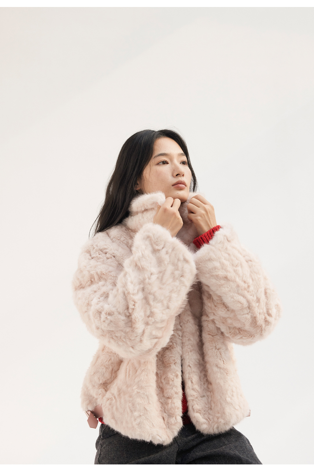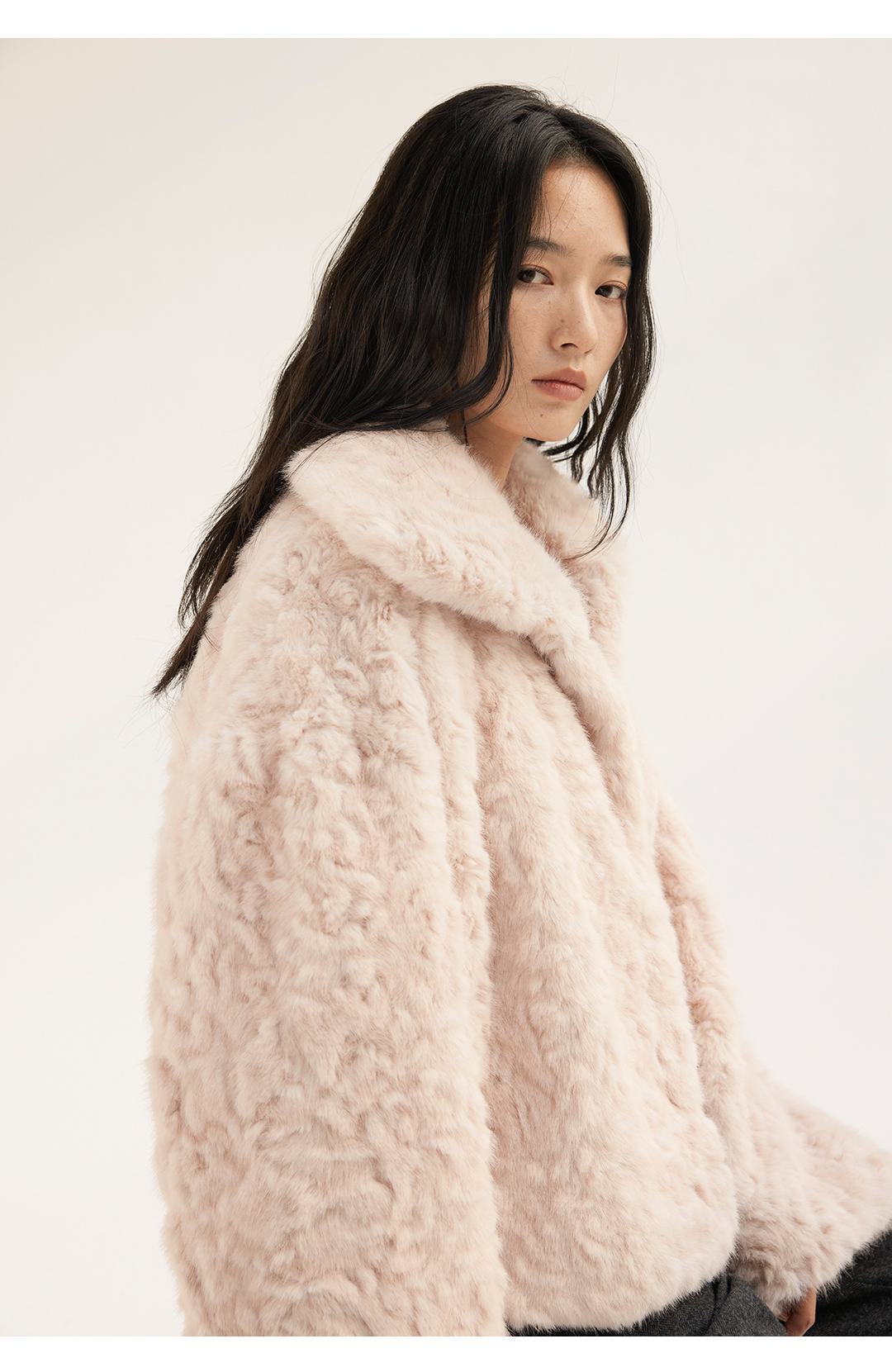 HeyDress翻领短款环保皮草外套