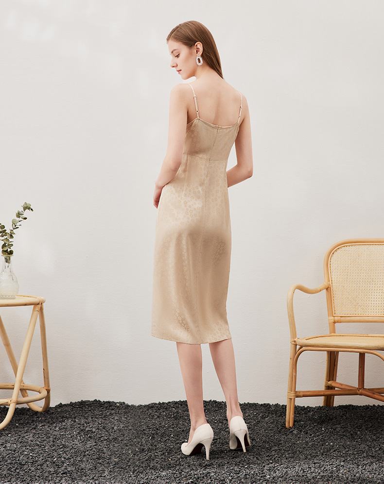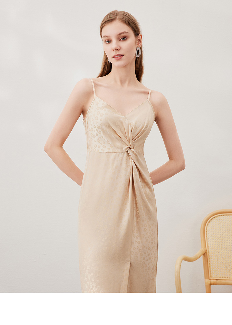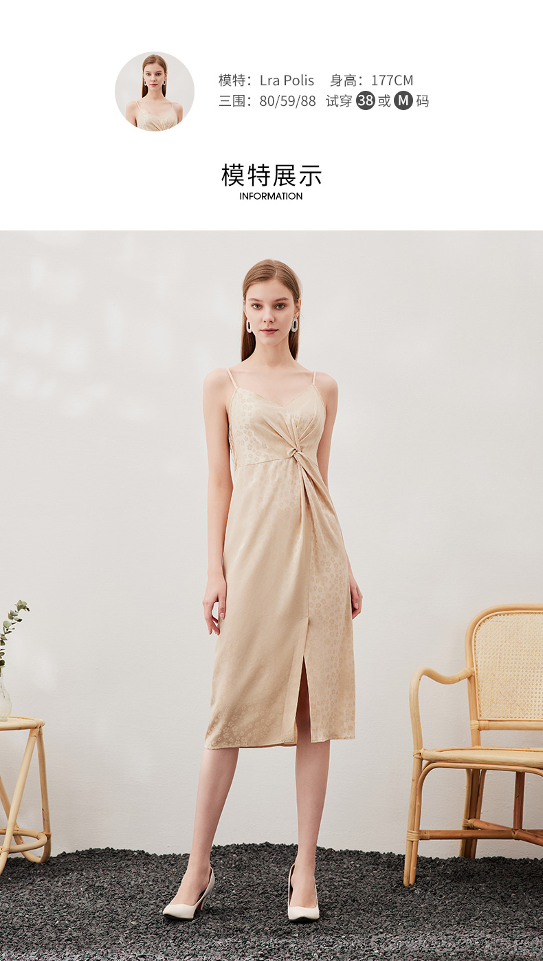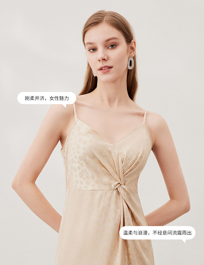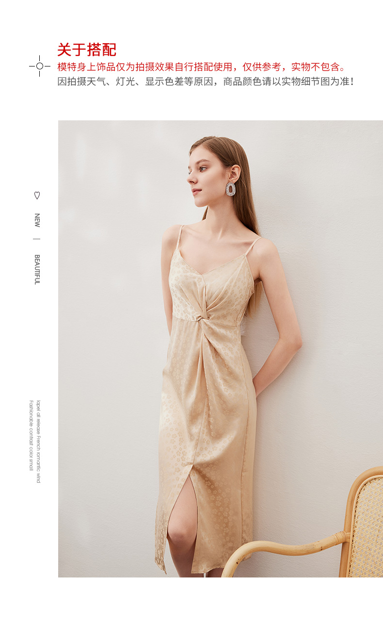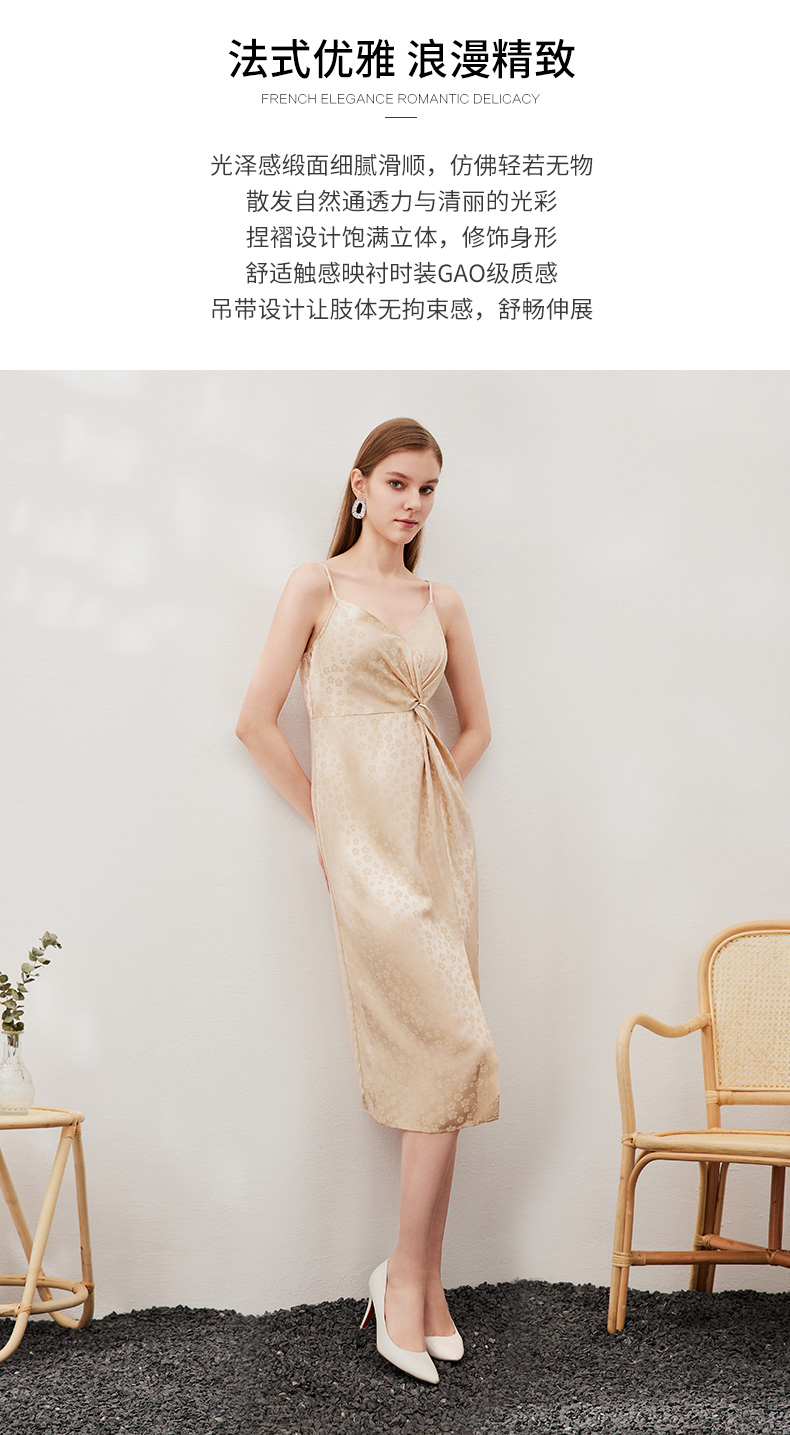 EITIE爱特爱夏季新款时尚舒适性感印花吊带开叉连衣裙女裙7007705