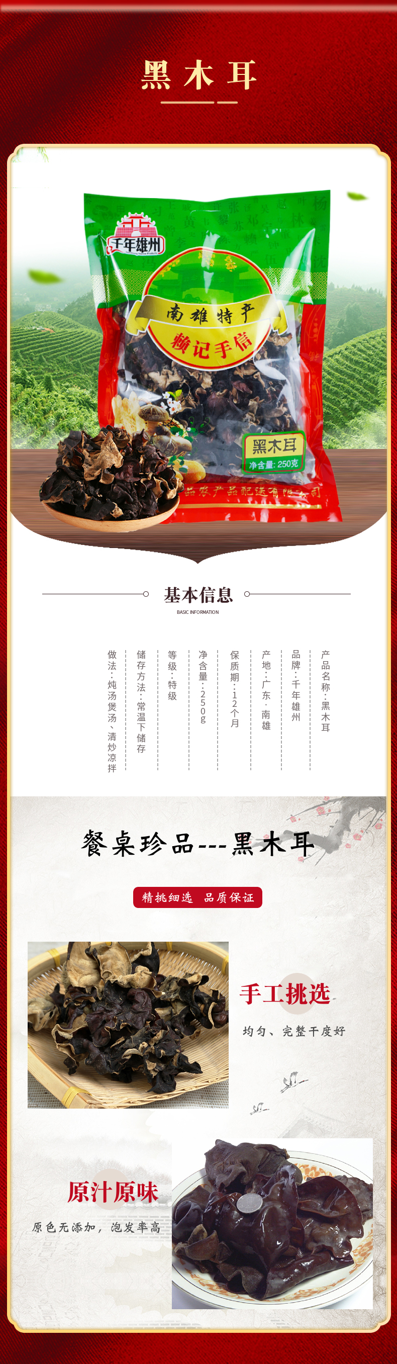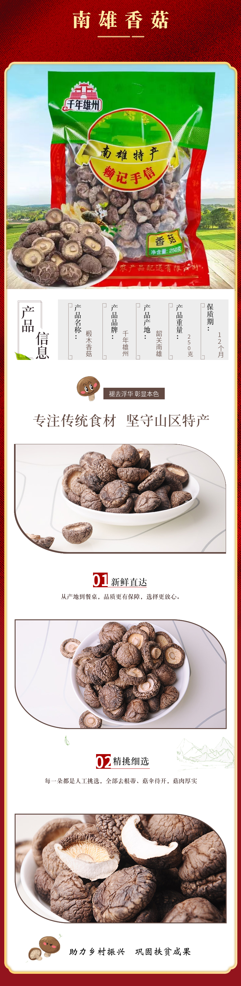 韶关特产【南雄-千年雄州】菇菌四宝(南雄香菇/黑木耳/南雄腊肠/银杏仁)省内包邮~