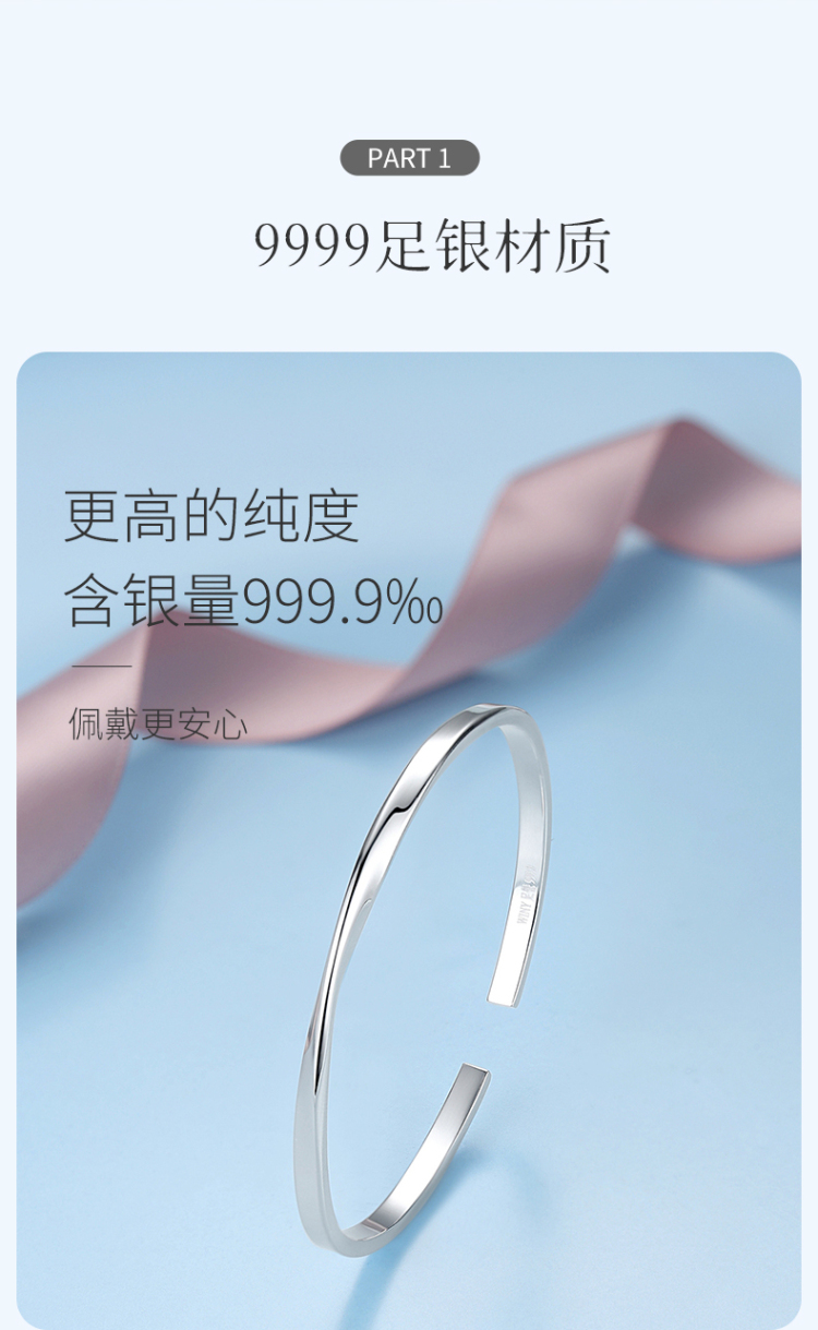 Winy9999足银福禄长久手镯送女友闺蜜节日生日礼物