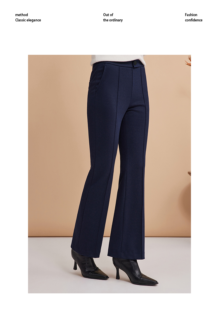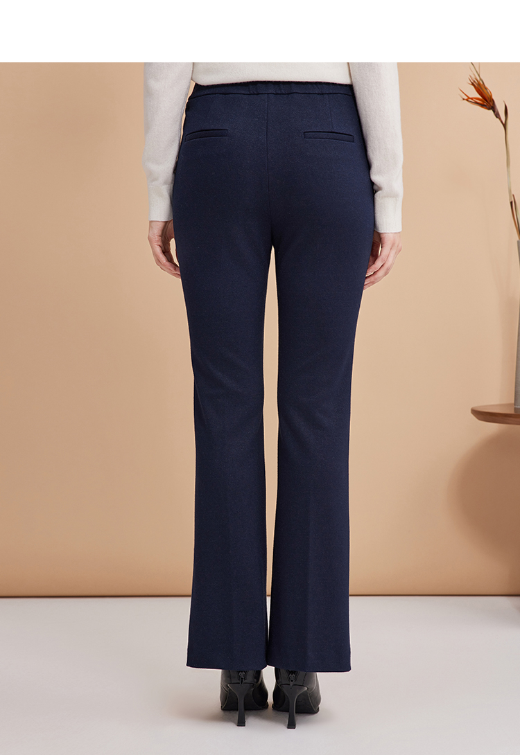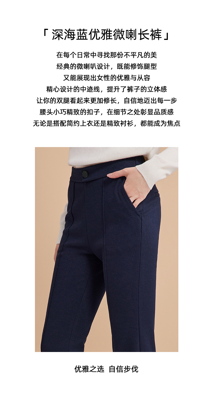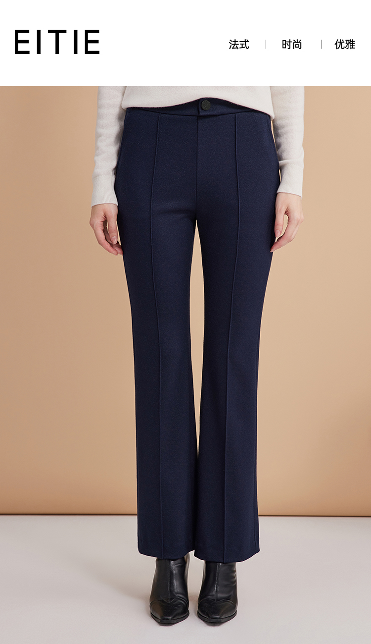 EITIE爱特爱舒适微弹显瘦微喇通勤深蓝百搭休闲长裤秋季新款D2405407