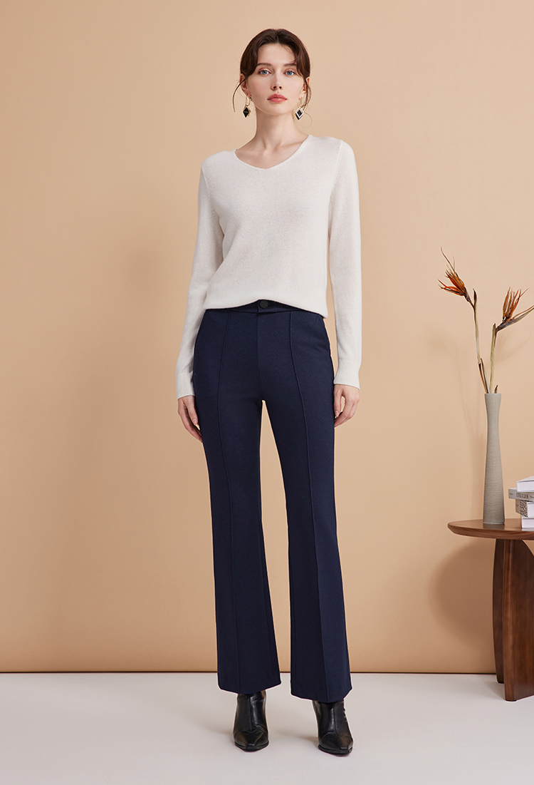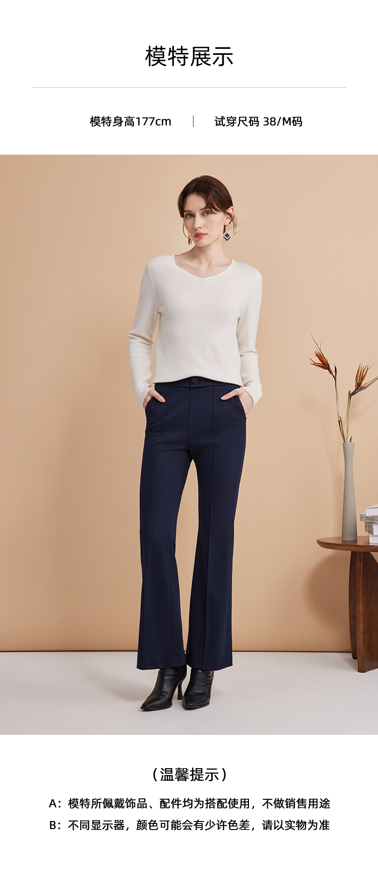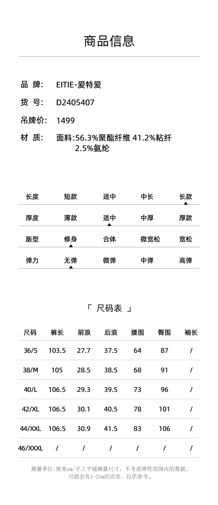 EITIE爱特爱舒适微弹显瘦微喇通勤深蓝百搭休闲长裤秋季新款D2405407