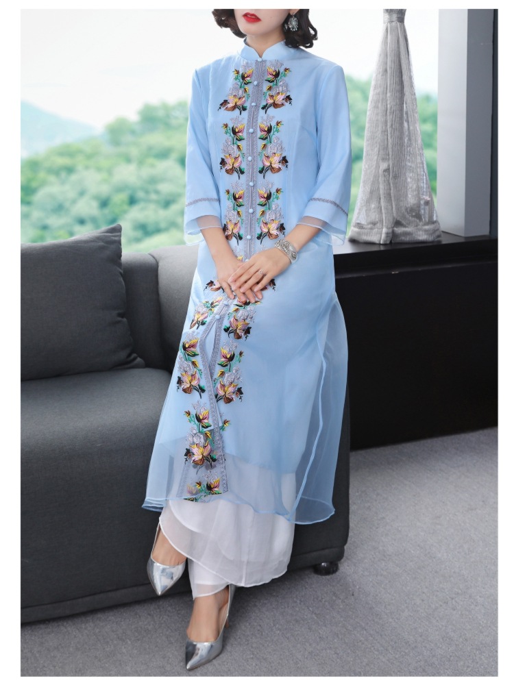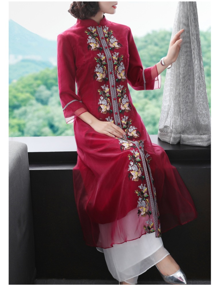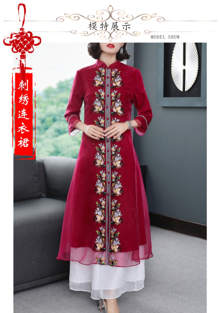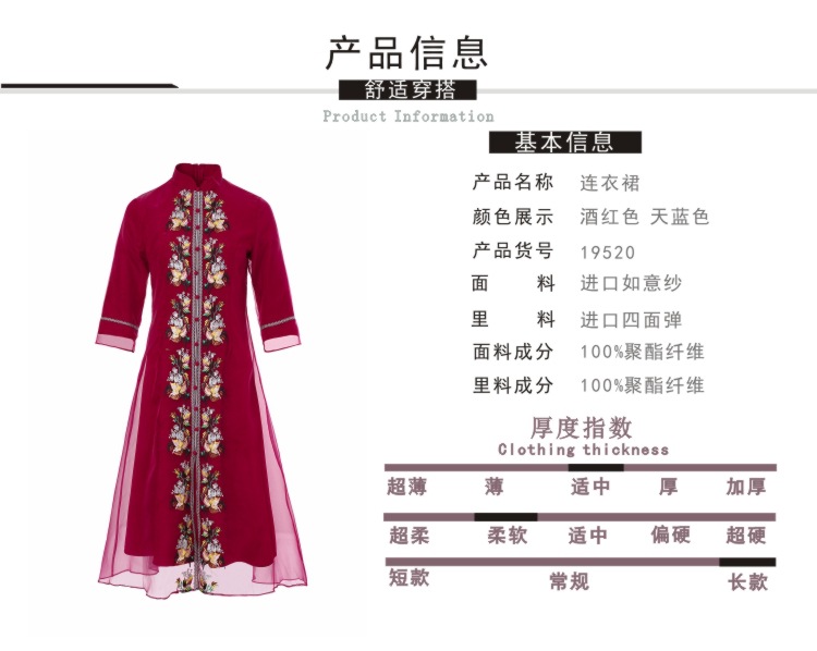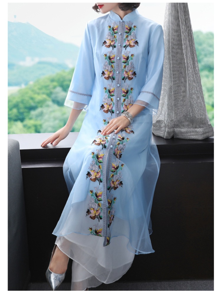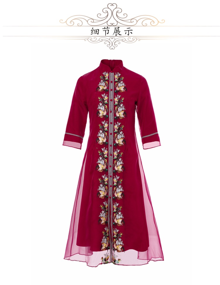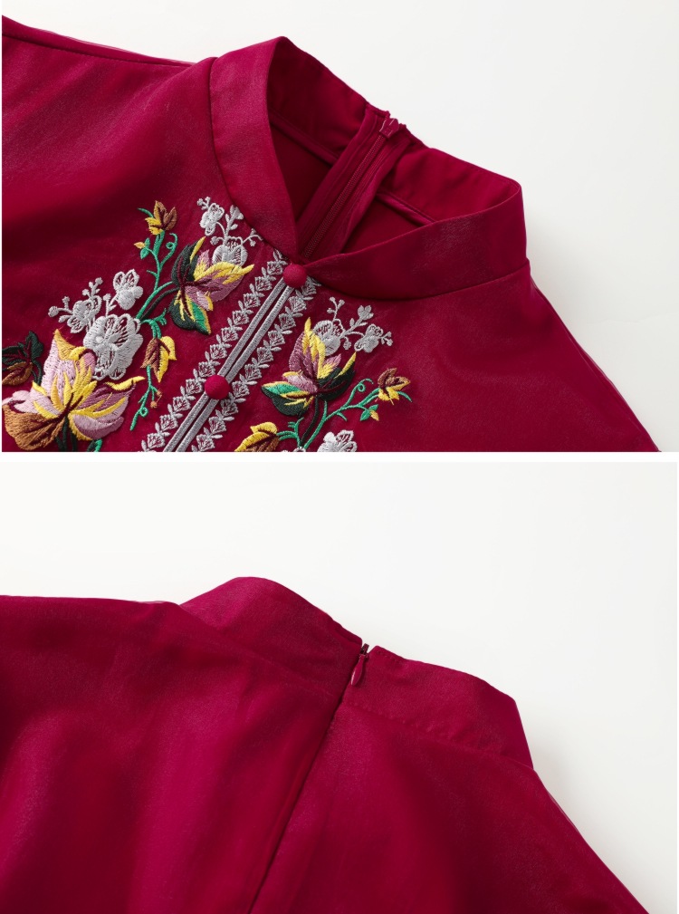 YFN-19520新款中国风改良后现代欧根纱刺绣旗袍连衣裙