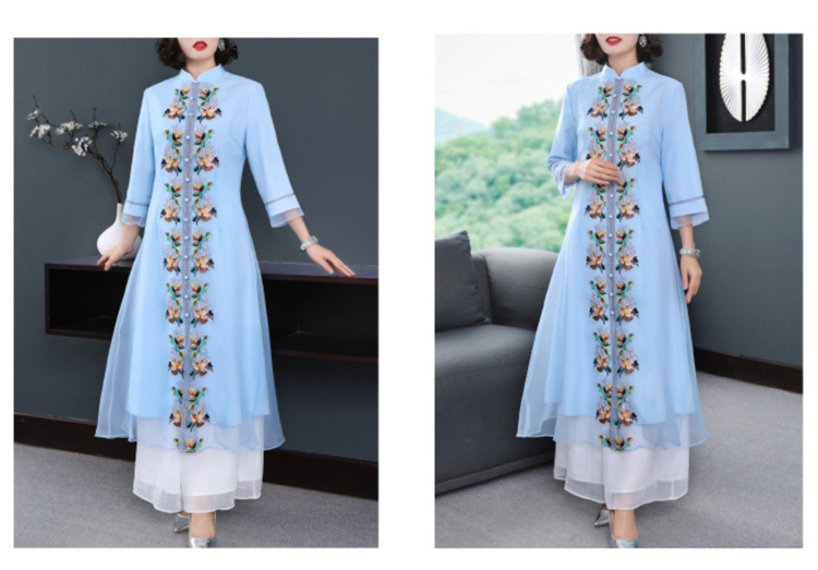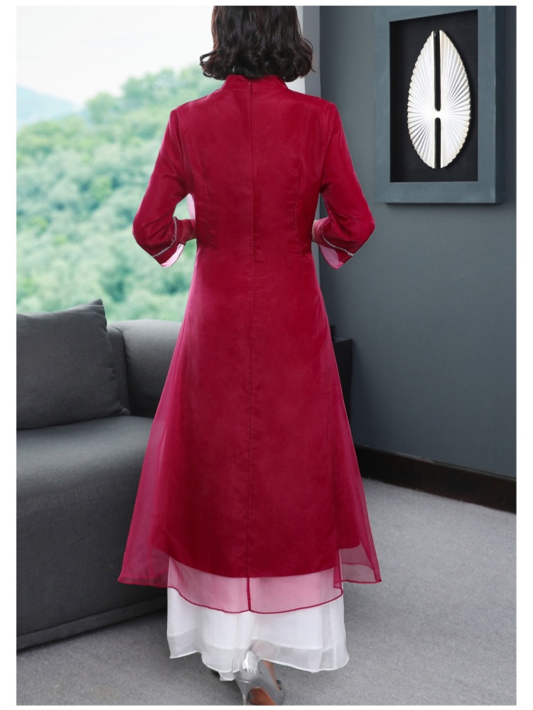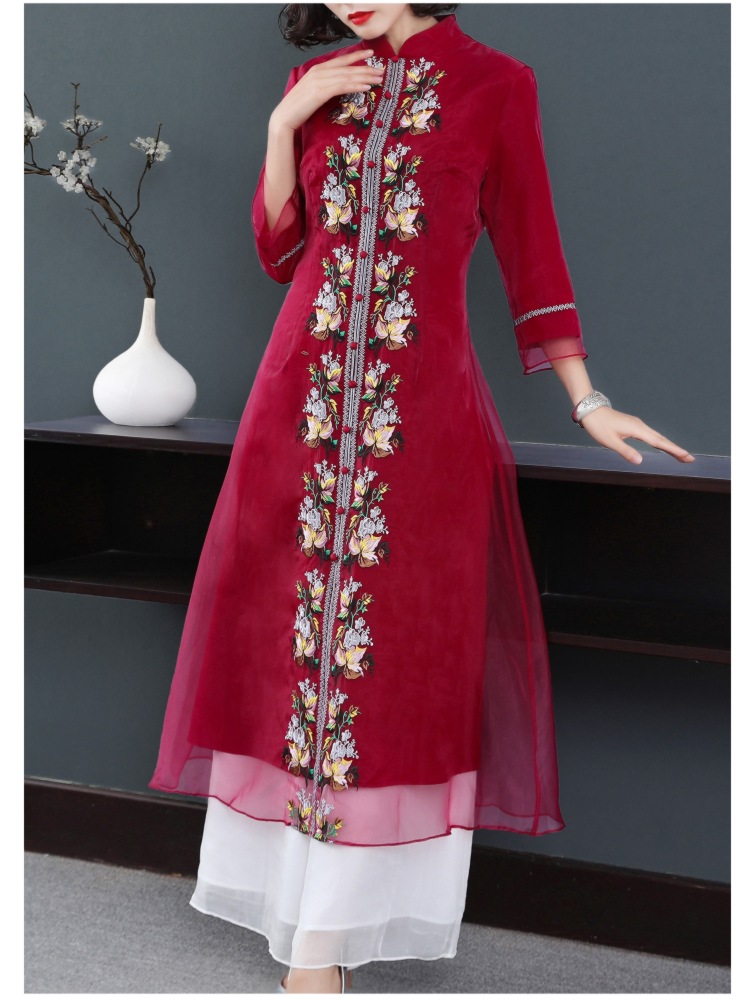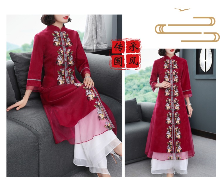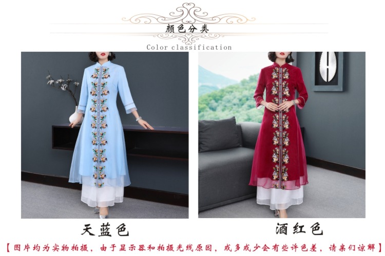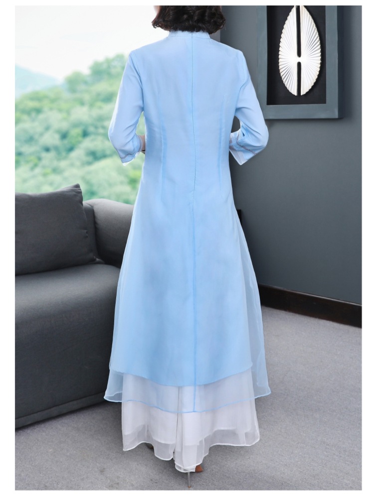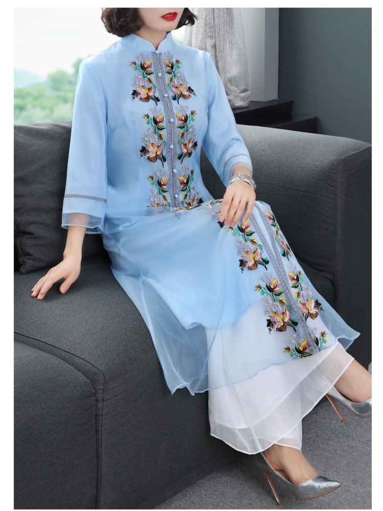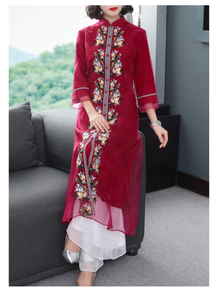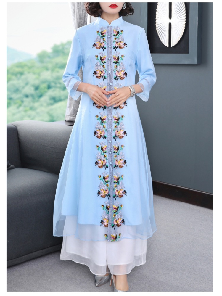 YFN-19520新款中国风改良后现代欧根纱刺绣旗袍连衣裙