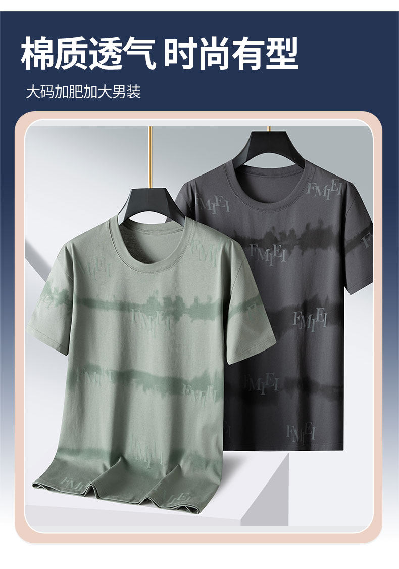 【棉质】【新款DPS】大依优型大码短袖T恤圆领加肥加大肥佬休闲宽松透气上衣男士半袖夏装潮款