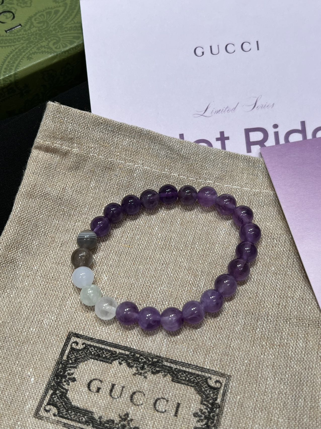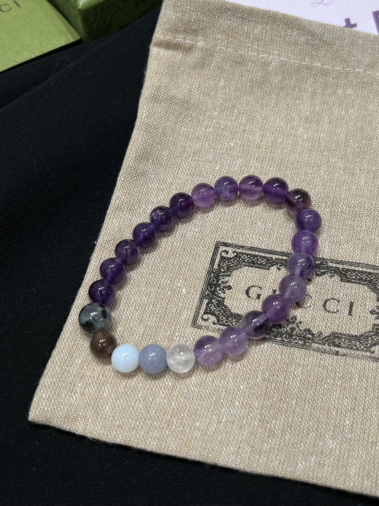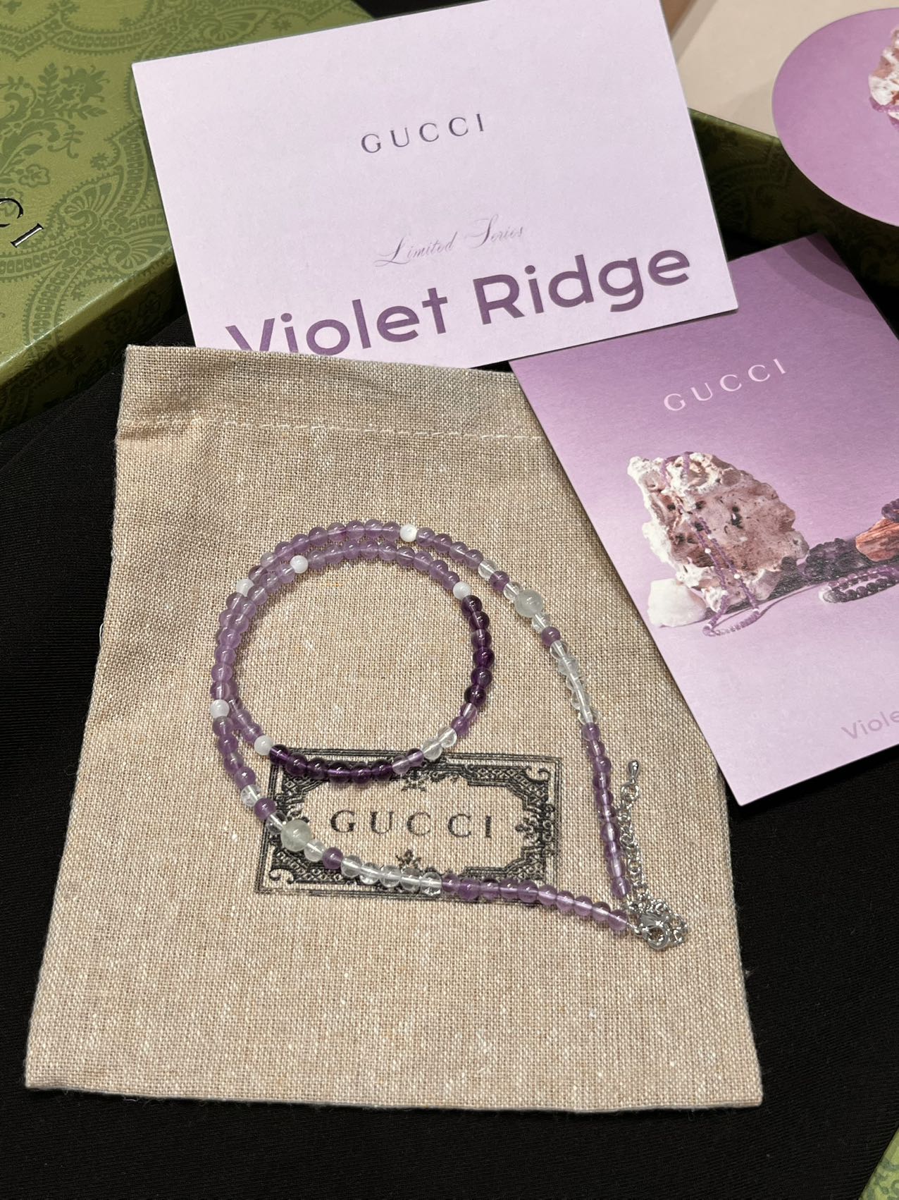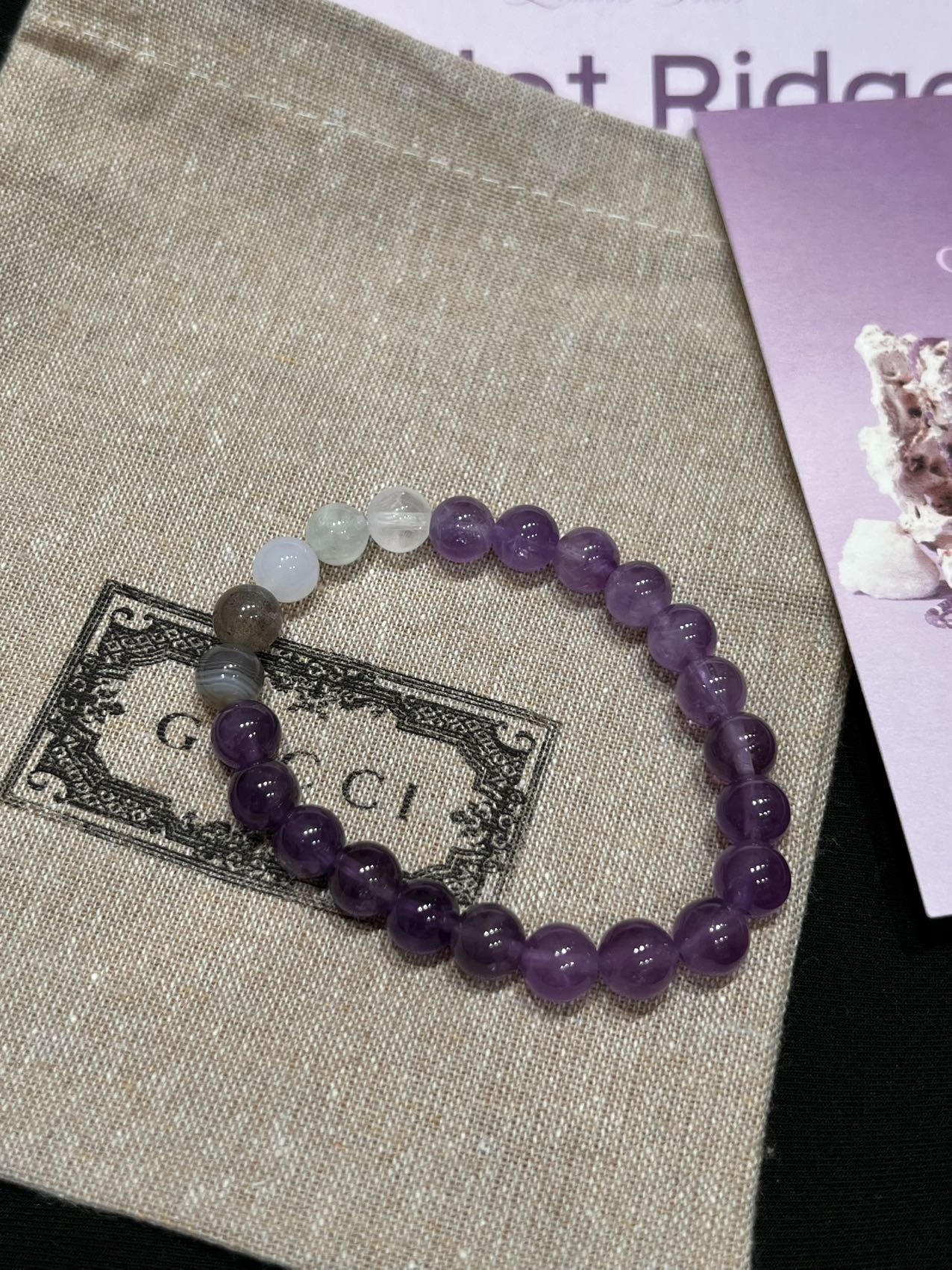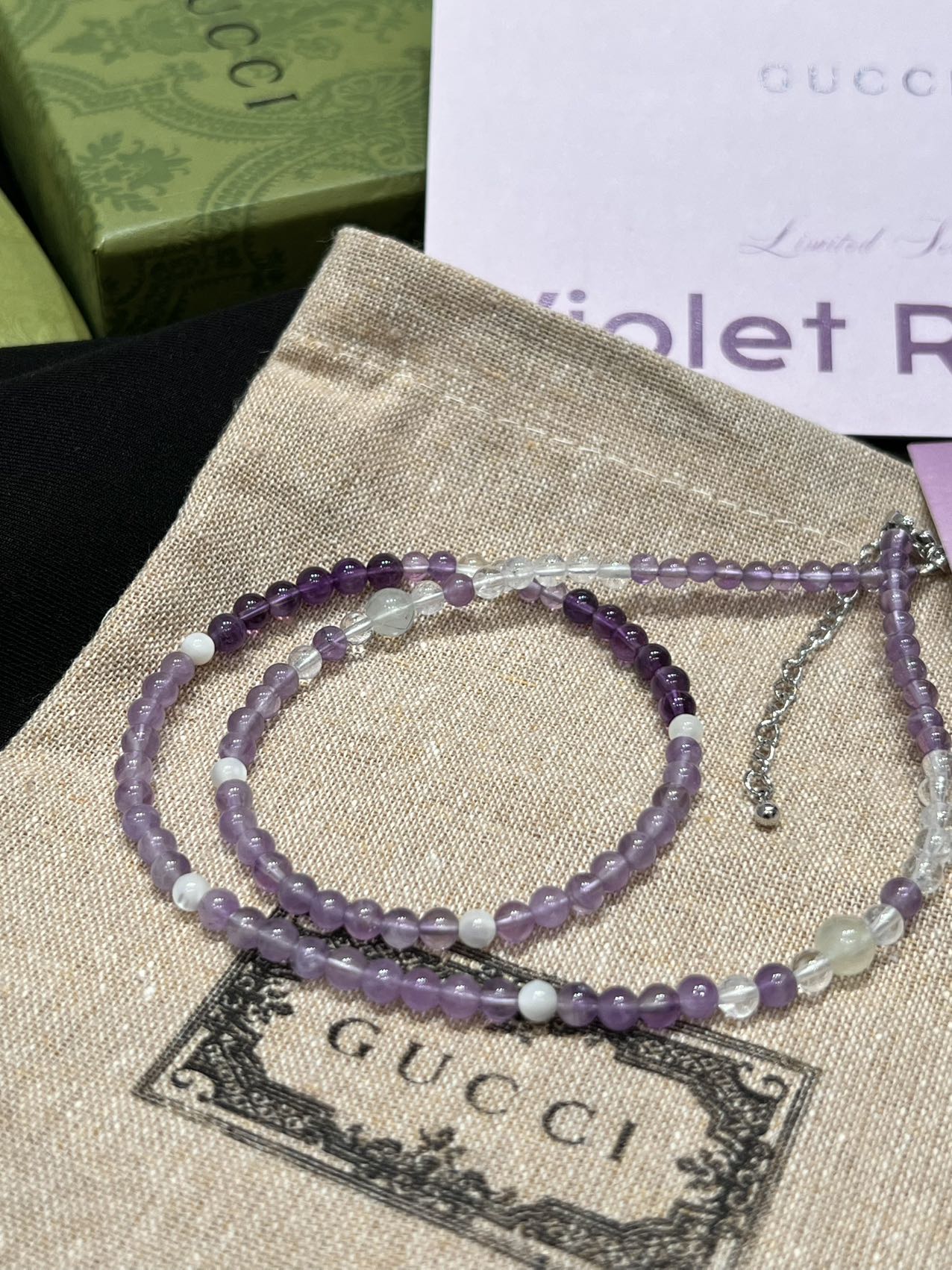 古家高级珠宝VioletRidge系列九紫离火手串/项链…今年必入的首饰,优化你的运势,自然之诗,能量之脉!!九紫离火年,一定不能错过的紫色手串!!guc同款高能量紫水晶手串…来,姐妹们!各位大女主们!迅速来补财位,迎接大财入库!九紫离火运是求财和发展的好时机!这个阶段适合佩戴不同的紫色手串,以吸引正能量!是女性崛起转运的时刻!是属于女性的20年!紫色自古便是尊贵与吉祥的象征,它融合了白与蓝的温柔和冷静,既显贵气又不失优雅,散发着深沉的艺术魅力!!⚠️每一颗水晶均由日本京都百年工坊匠人手工甄选,溯源巴西紫晶洞、马达加斯加粉晶矿脉、印尼金曜石岩层,微镶技法串联,让晶石天然裂隙化为光轨,层叠如起伏山脊!整个系列有项链/手串,男女现货,全部原封带芯片!款式:女款手链、男款手链、项链