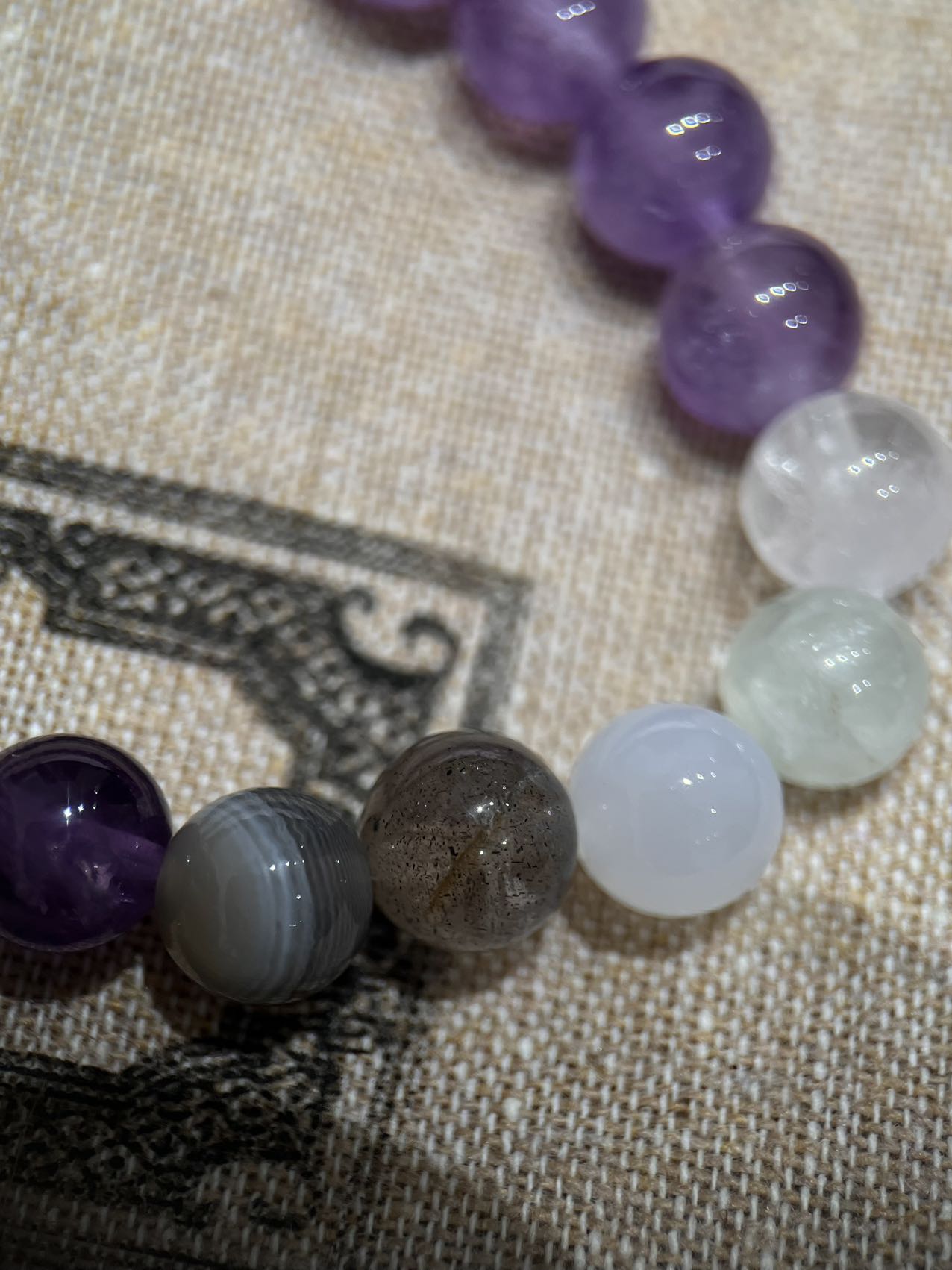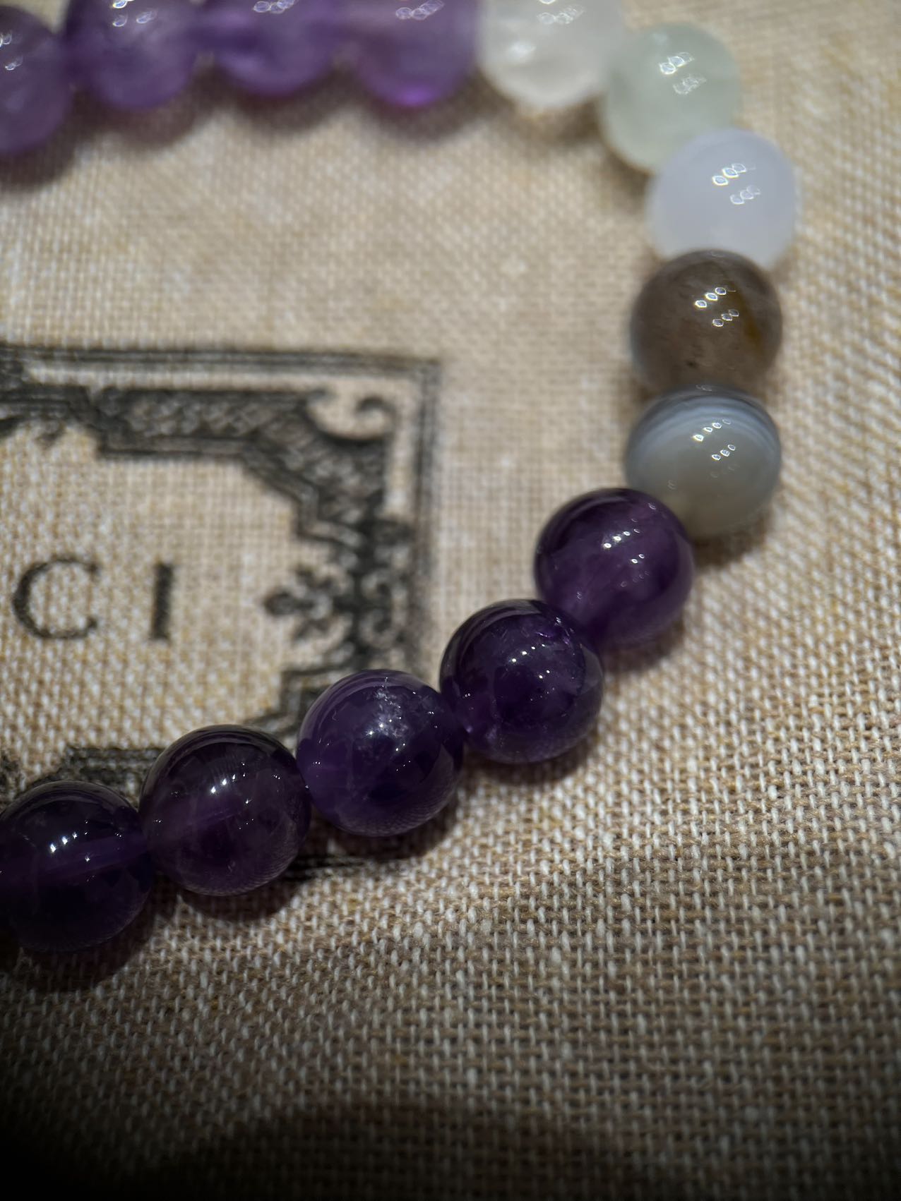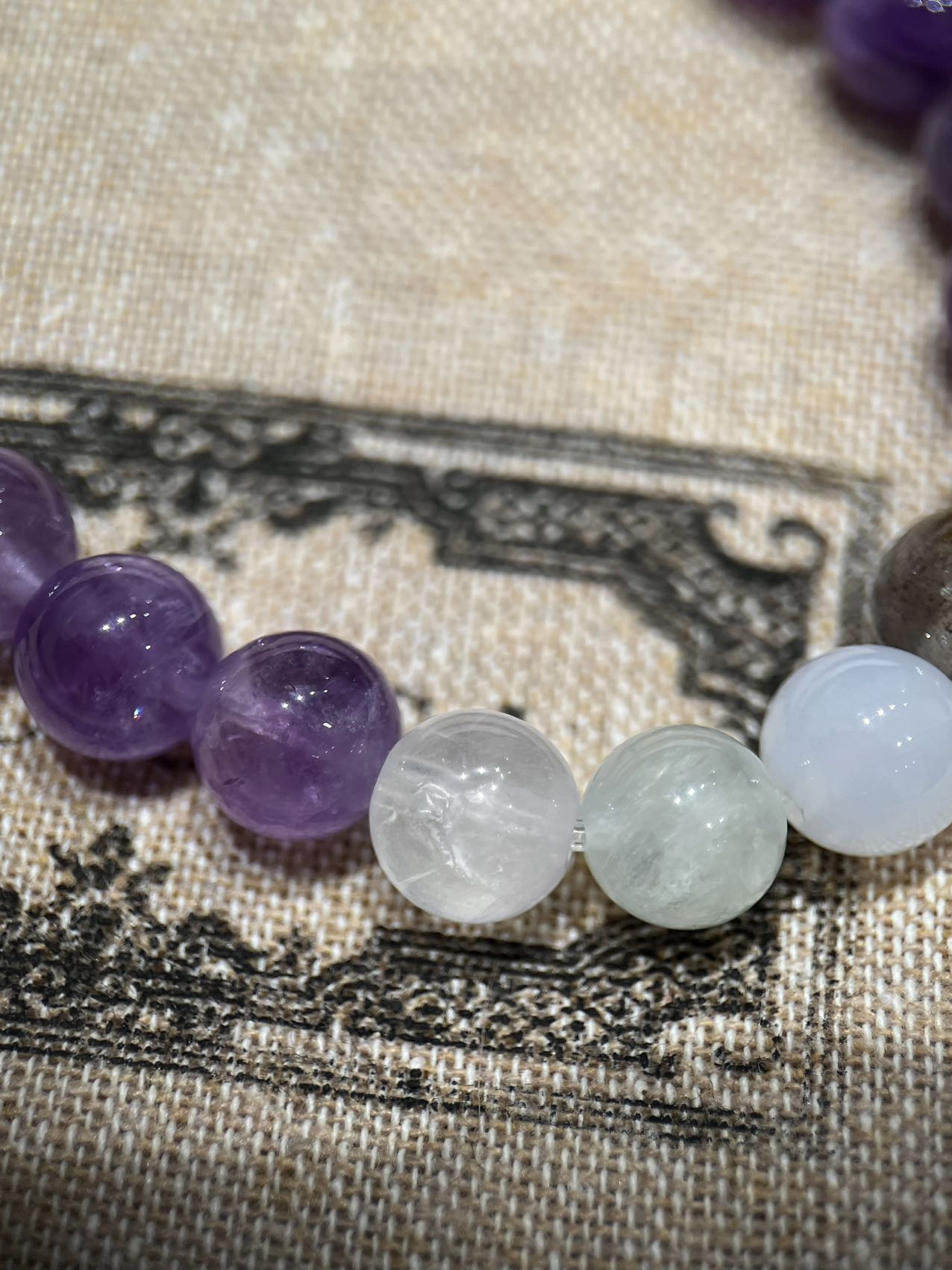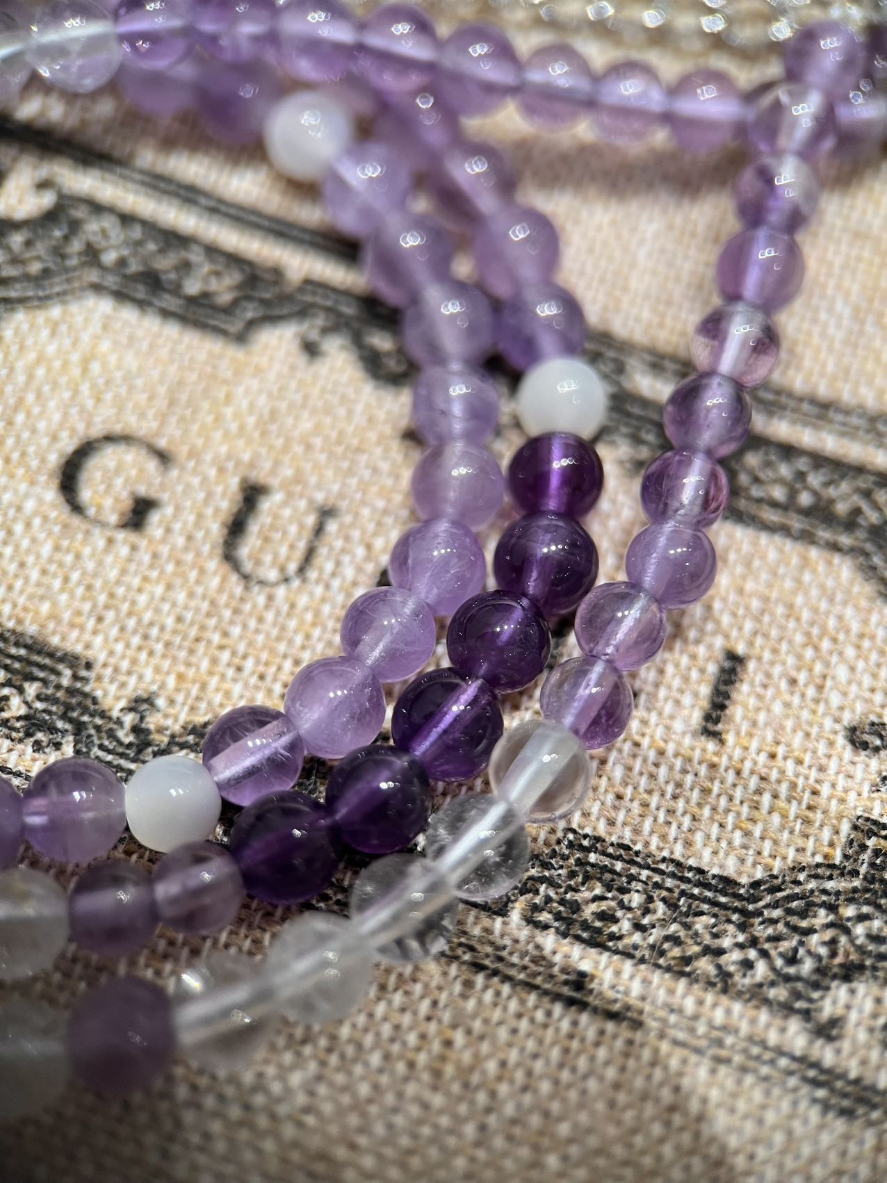 古家高级珠宝VioletRidge系列九紫离火手串/项链…今年必入的首饰,优化你的运势,自然之诗,能量之脉!!九紫离火年,一定不能错过的紫色手串!!guc同款高能量紫水晶手串…来,姐妹们!各位大女主们!迅速来补财位,迎接大财入库!九紫离火运是求财和发展的好时机!这个阶段适合佩戴不同的紫色手串,以吸引正能量!是女性崛起转运的时刻!是属于女性的20年!紫色自古便是尊贵与吉祥的象征,它融合了白与蓝的温柔和冷静,既显贵气又不失优雅,散发着深沉的艺术魅力!!⚠️每一颗水晶均由日本京都百年工坊匠人手工甄选,溯源巴西紫晶洞、马达加斯加粉晶矿脉、印尼金曜石岩层,微镶技法串联,让晶石天然裂隙化为光轨,层叠如起伏山脊!整个系列有项链/手串,男女现货,全部原封带芯片!款式:女款手链、男款手链、项链
