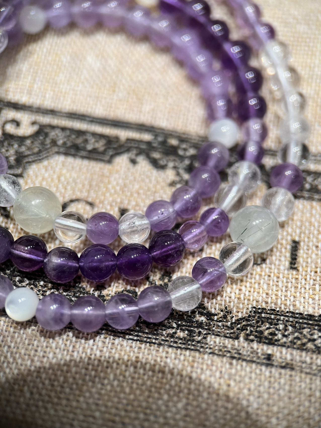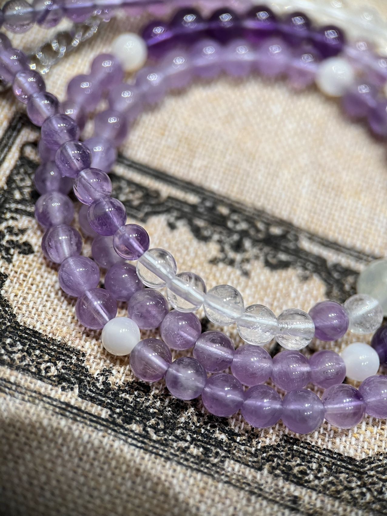 ⚠️每一颗水晶均由日本京都百年工坊匠人手工甄选,溯源巴西紫晶洞、马达加斯加粉晶矿脉、印尼金曜石岩层,微镶技法串联,让晶石天然裂隙化为光轨,层叠如起伏山脊!灵性守护,赋予能量磁场 古欧洲传说中,紫水晶是「清醒之石」驱散混沌,唤醒直觉力
