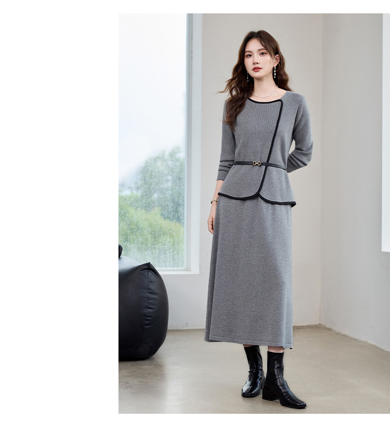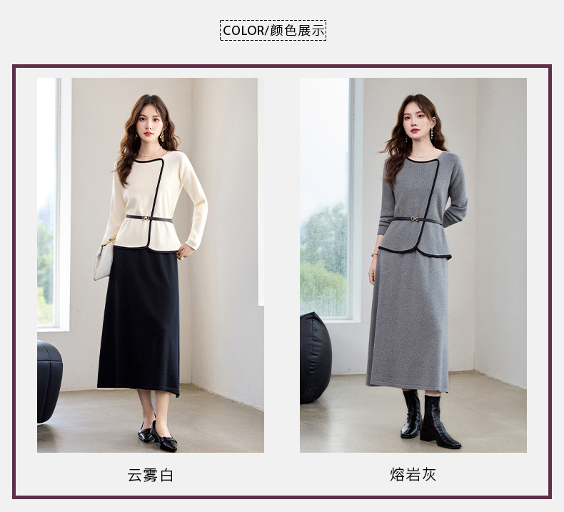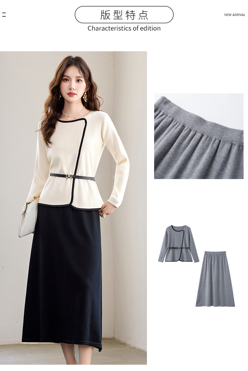 针织套装时尚洋气减龄,两件套穿搭毛衣裙子HR-610