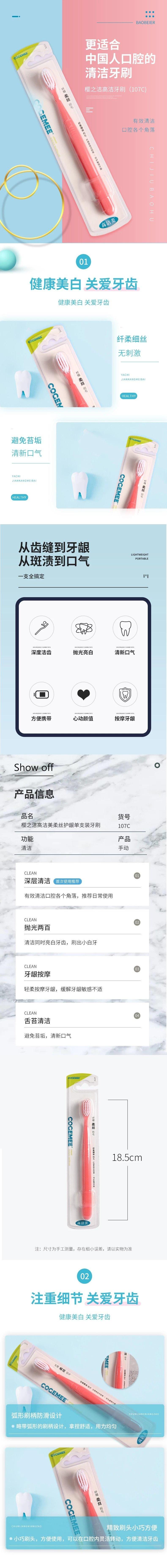 高洁美 柔丝护龈单支装牙刷随机色10支 107C