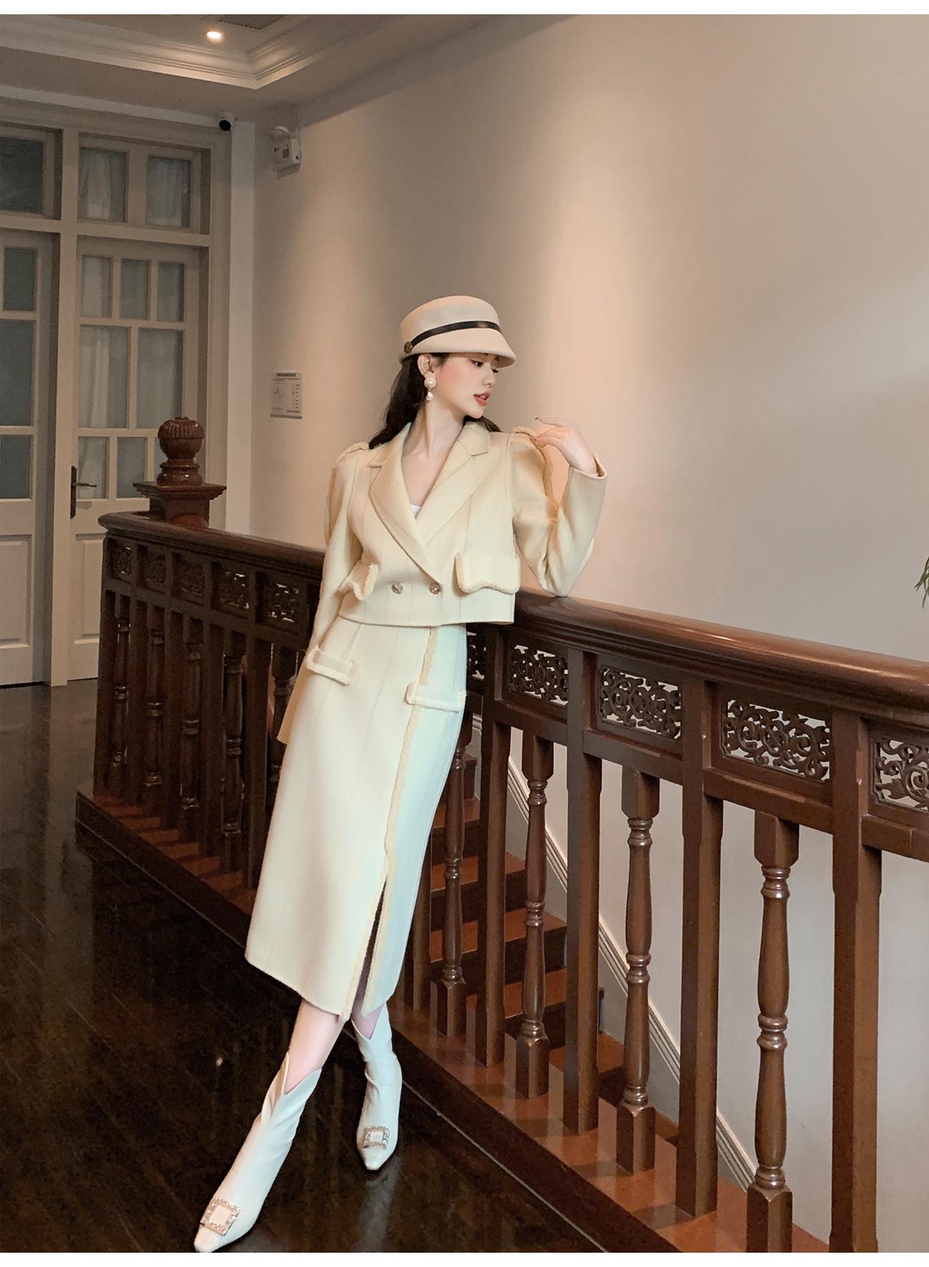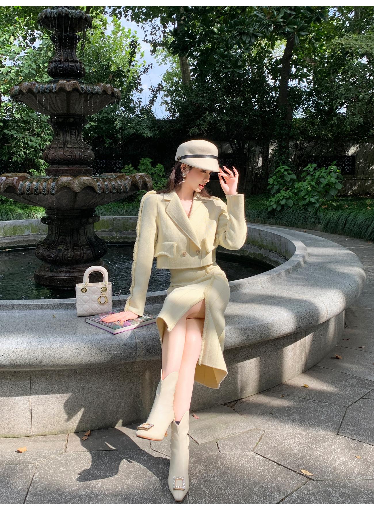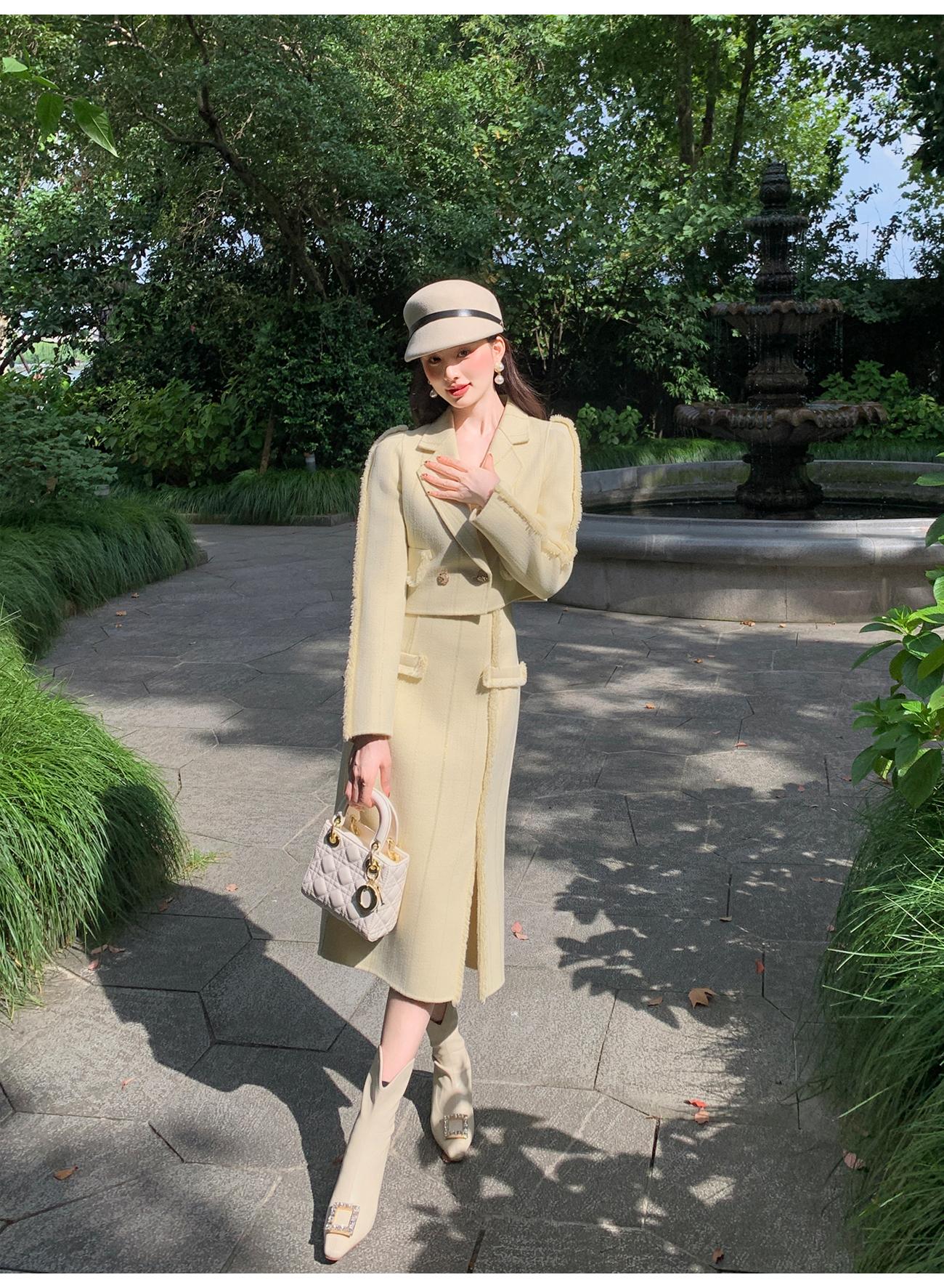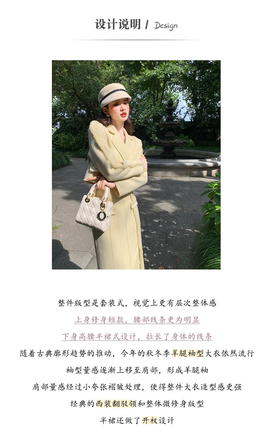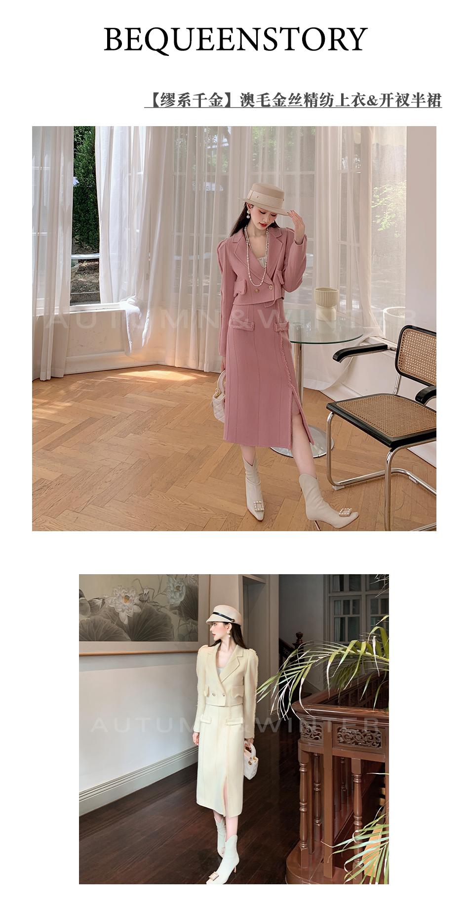 BeQueenStory【春日来信】进口澳毛金丝精纺上衣&毛边开衩半裙套装