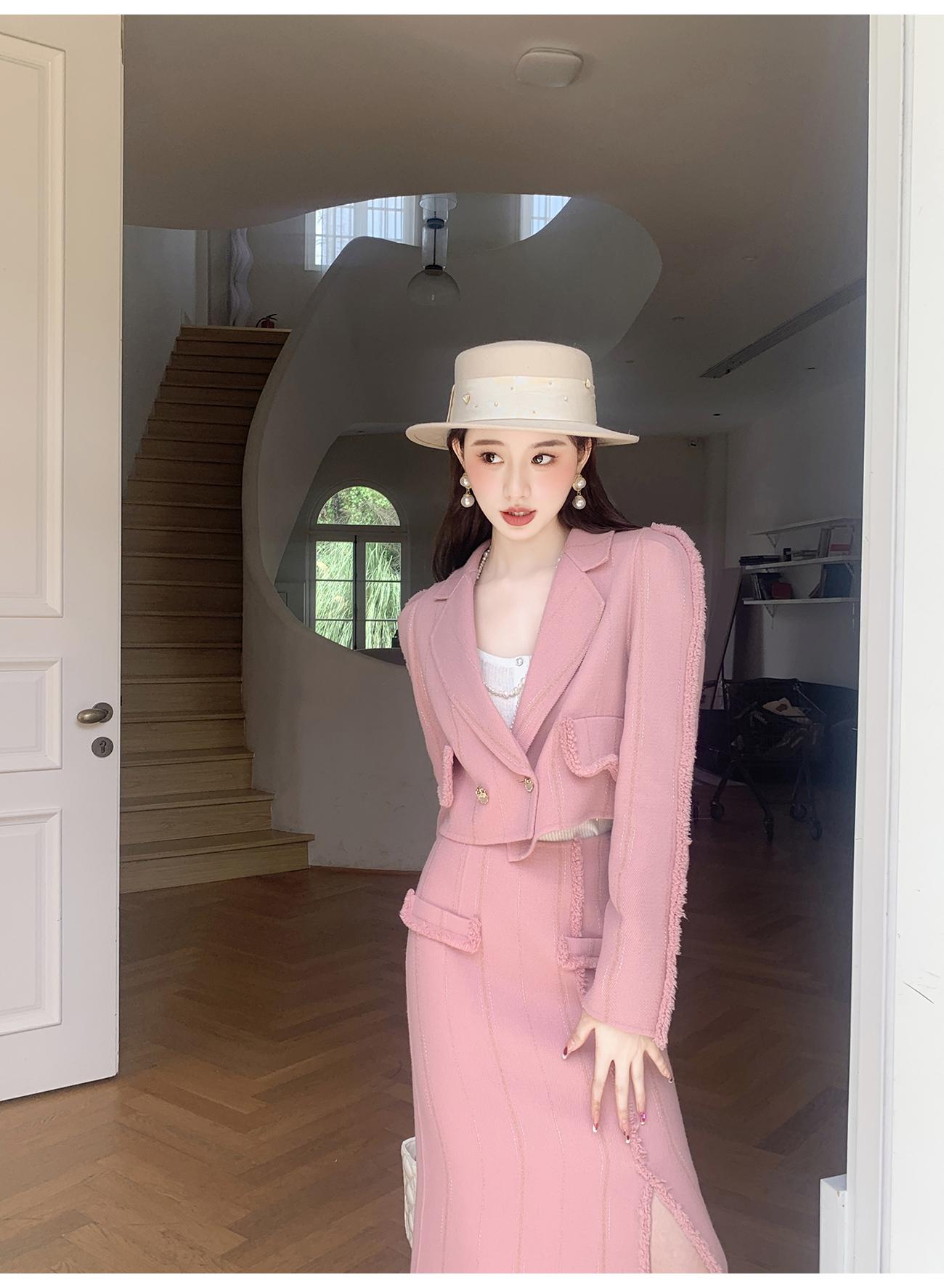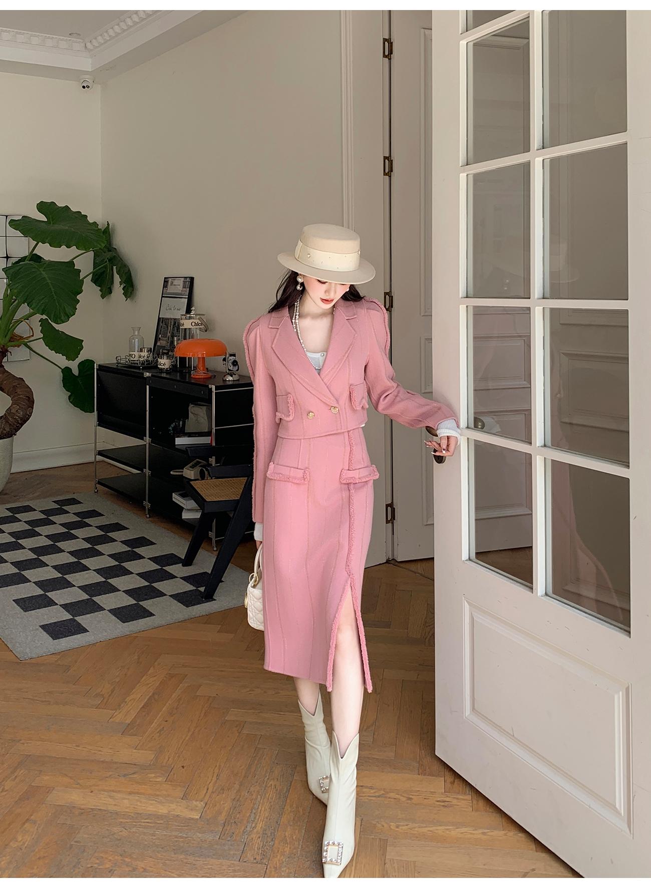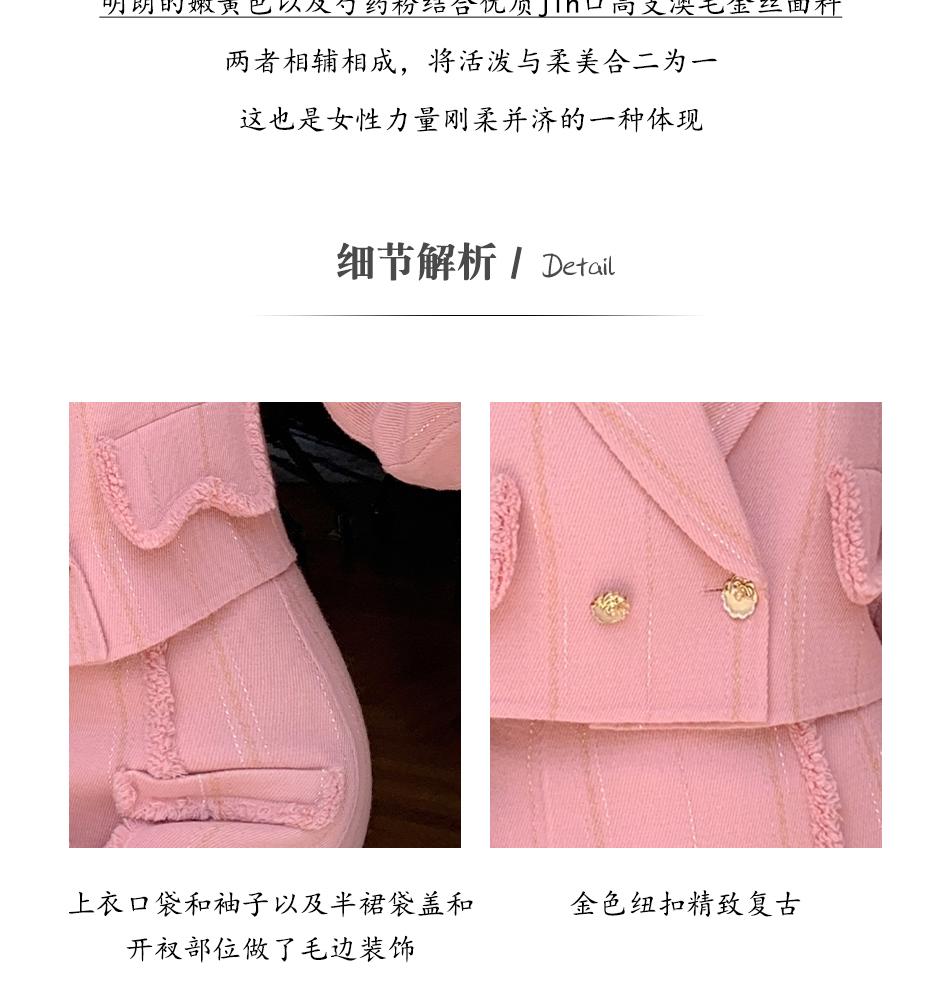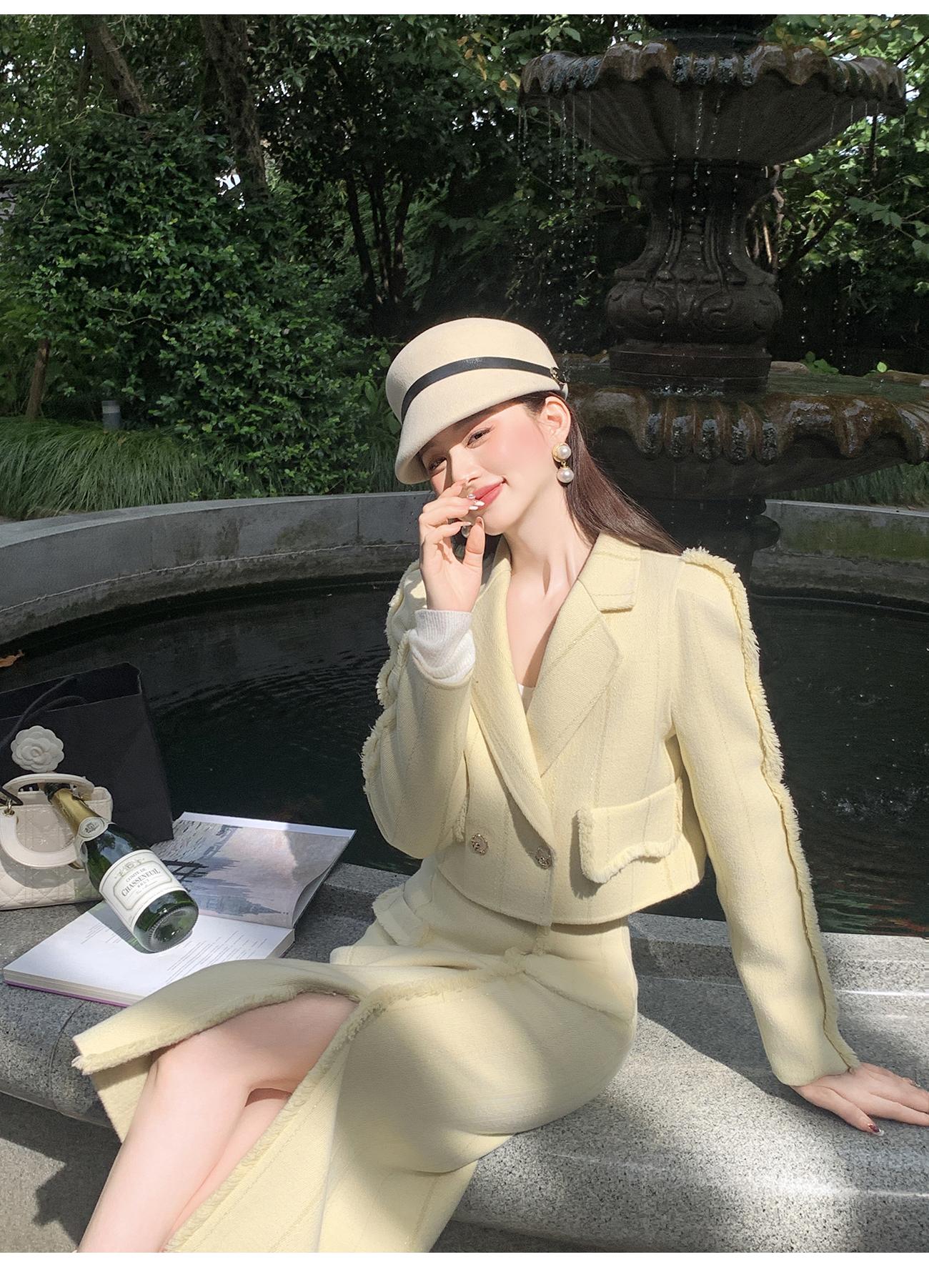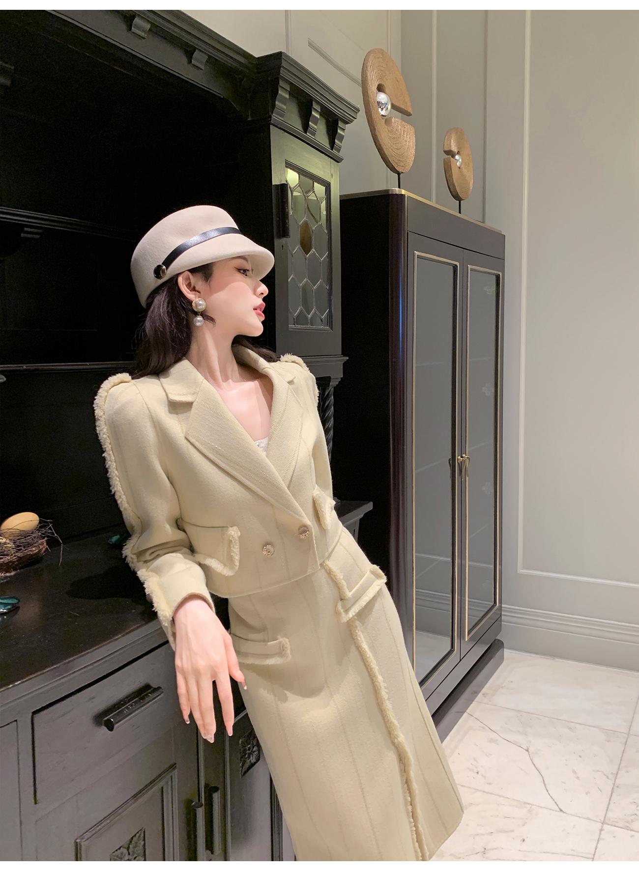 BeQueenStory【春日来信】进口澳毛金丝精纺上衣&毛边开衩半裙套装
