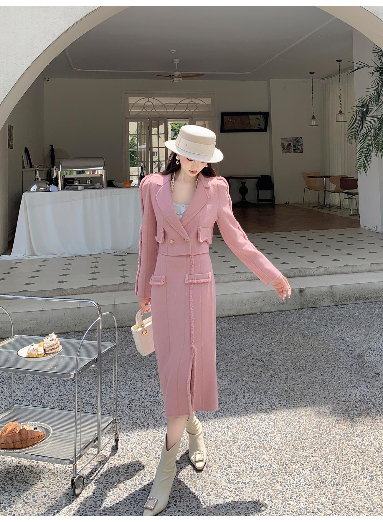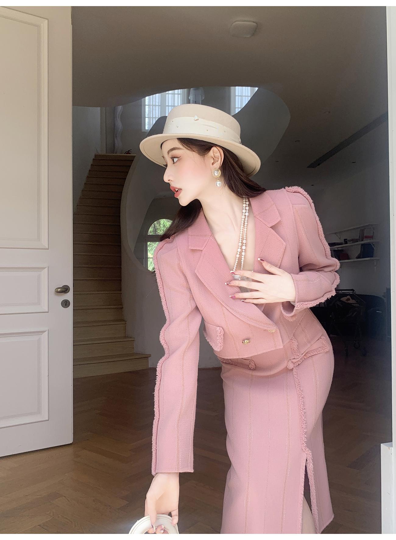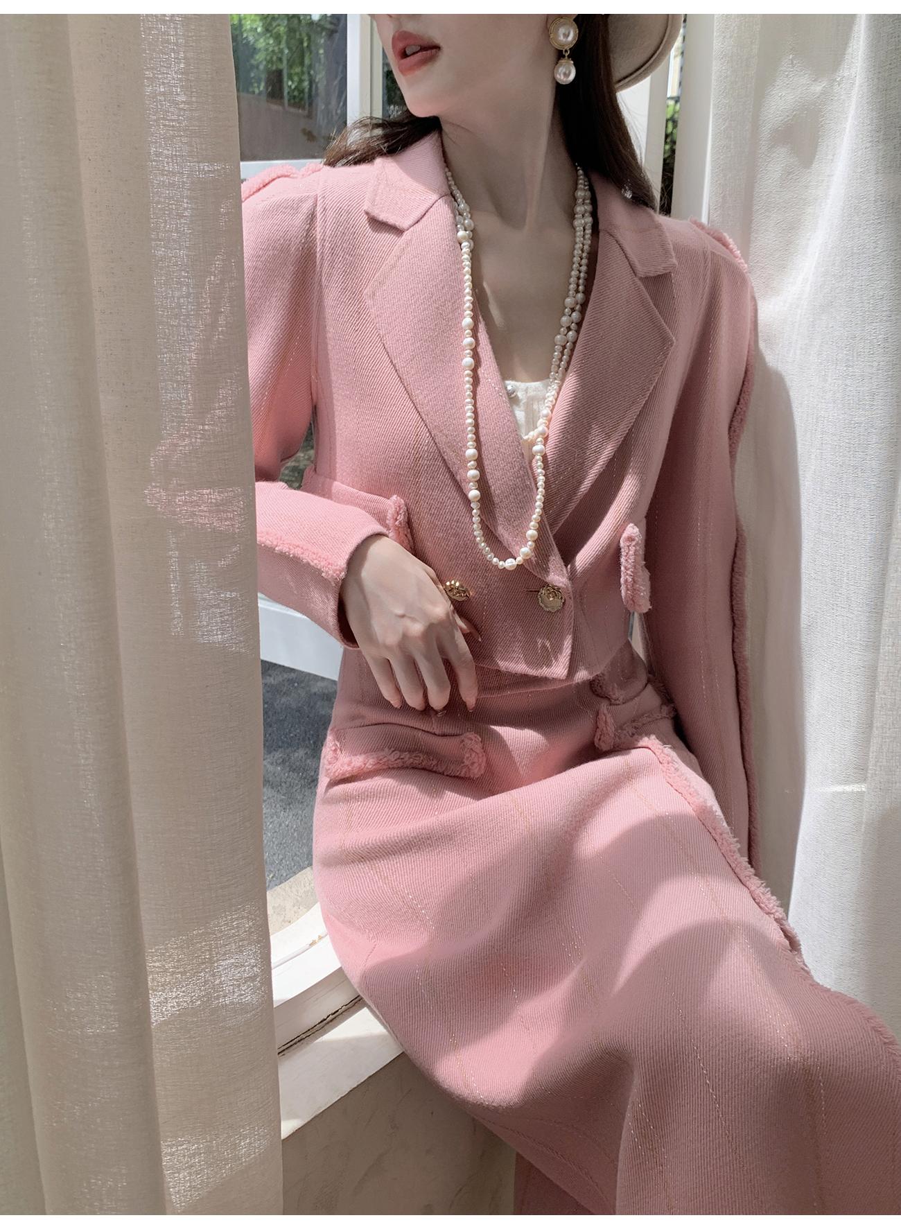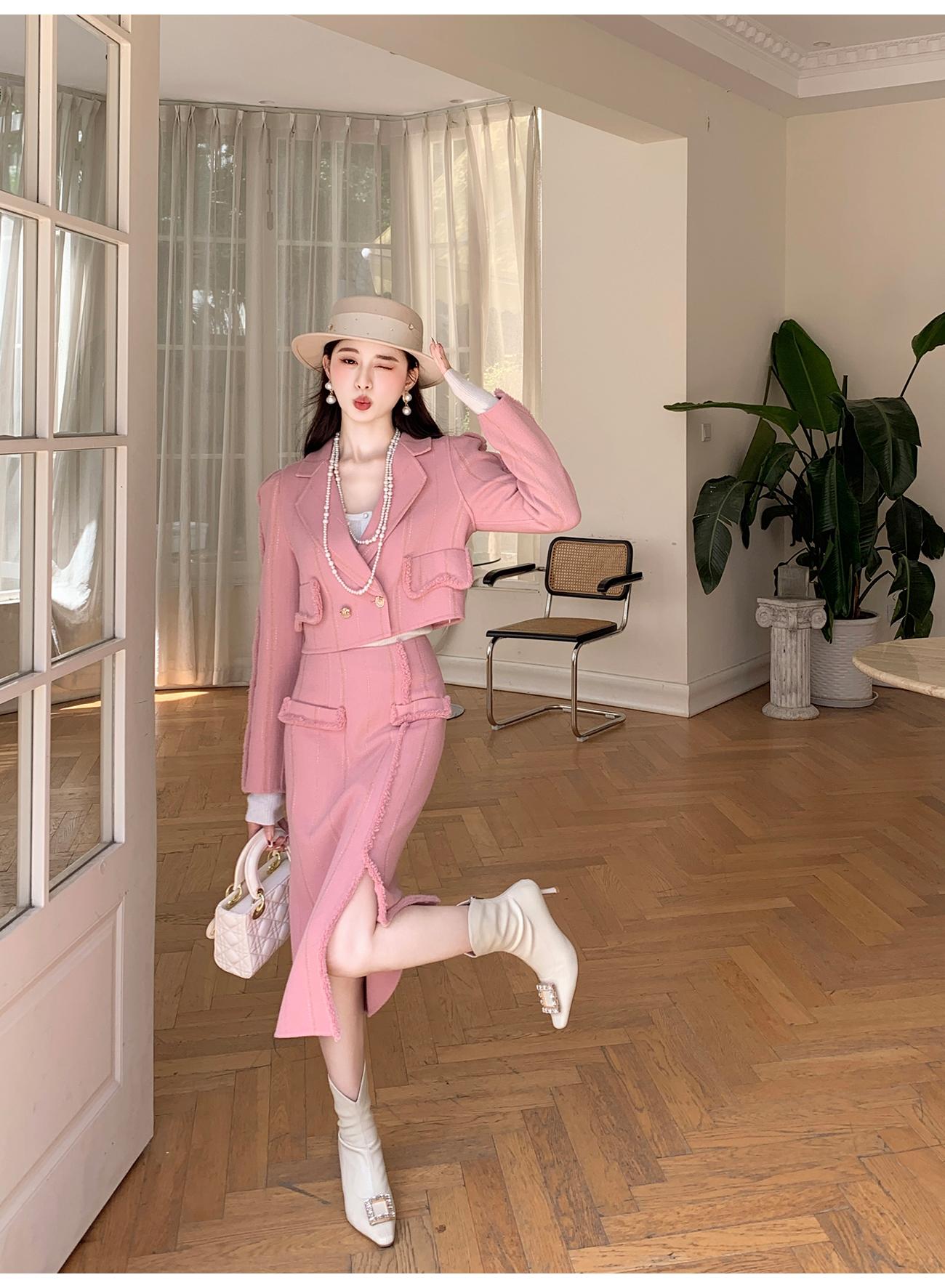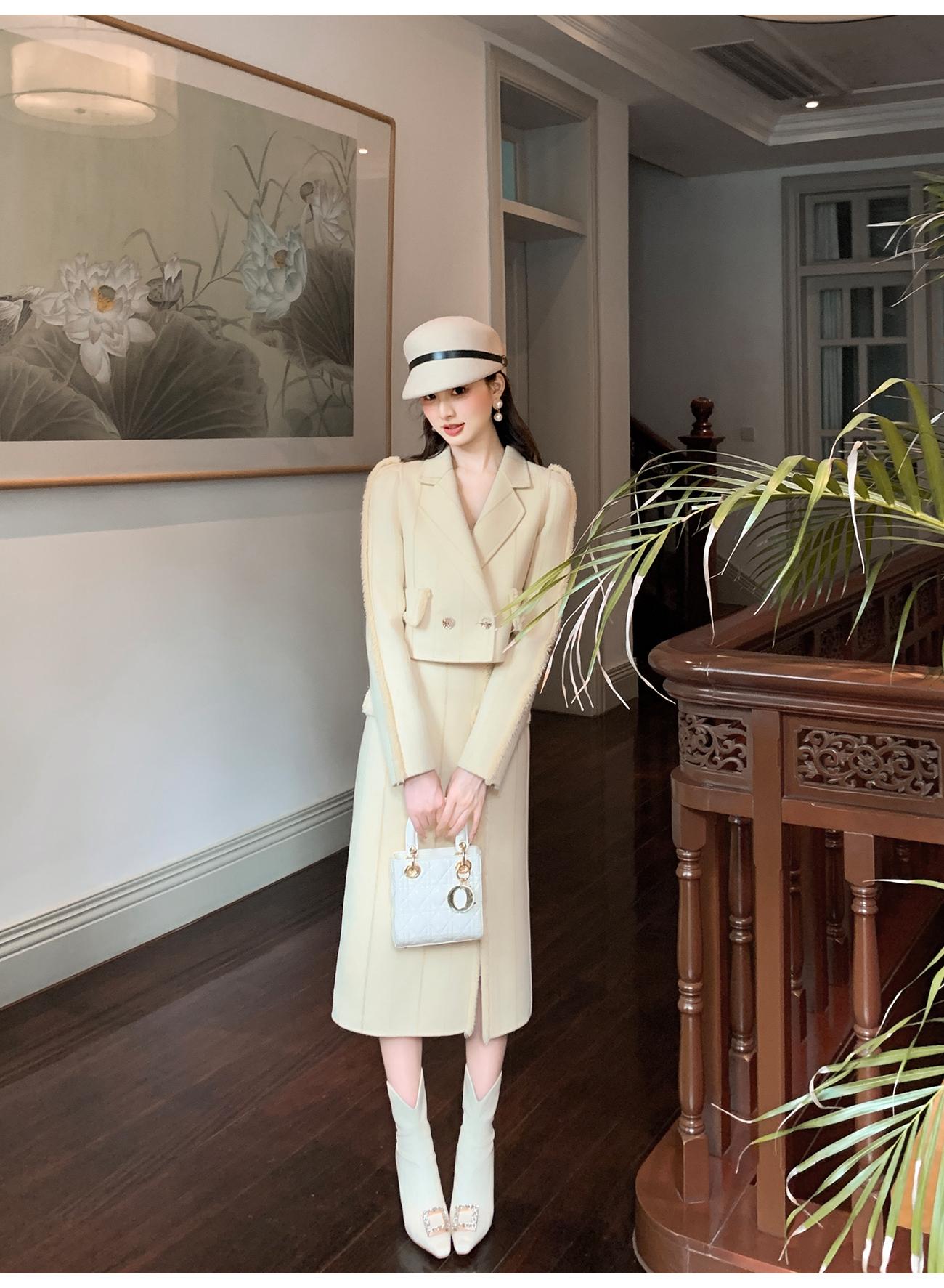 BeQueenStory【春日来信】进口澳毛金丝精纺上衣&毛边开衩半裙套装