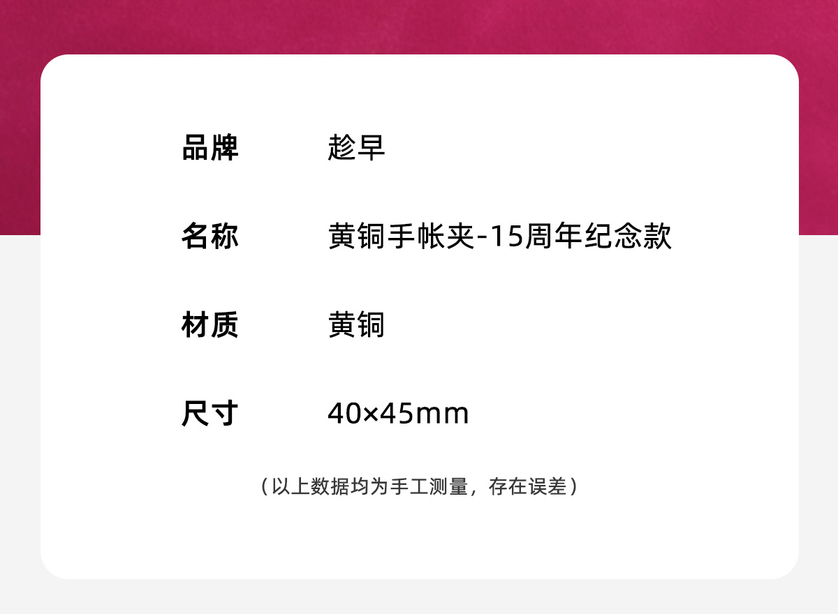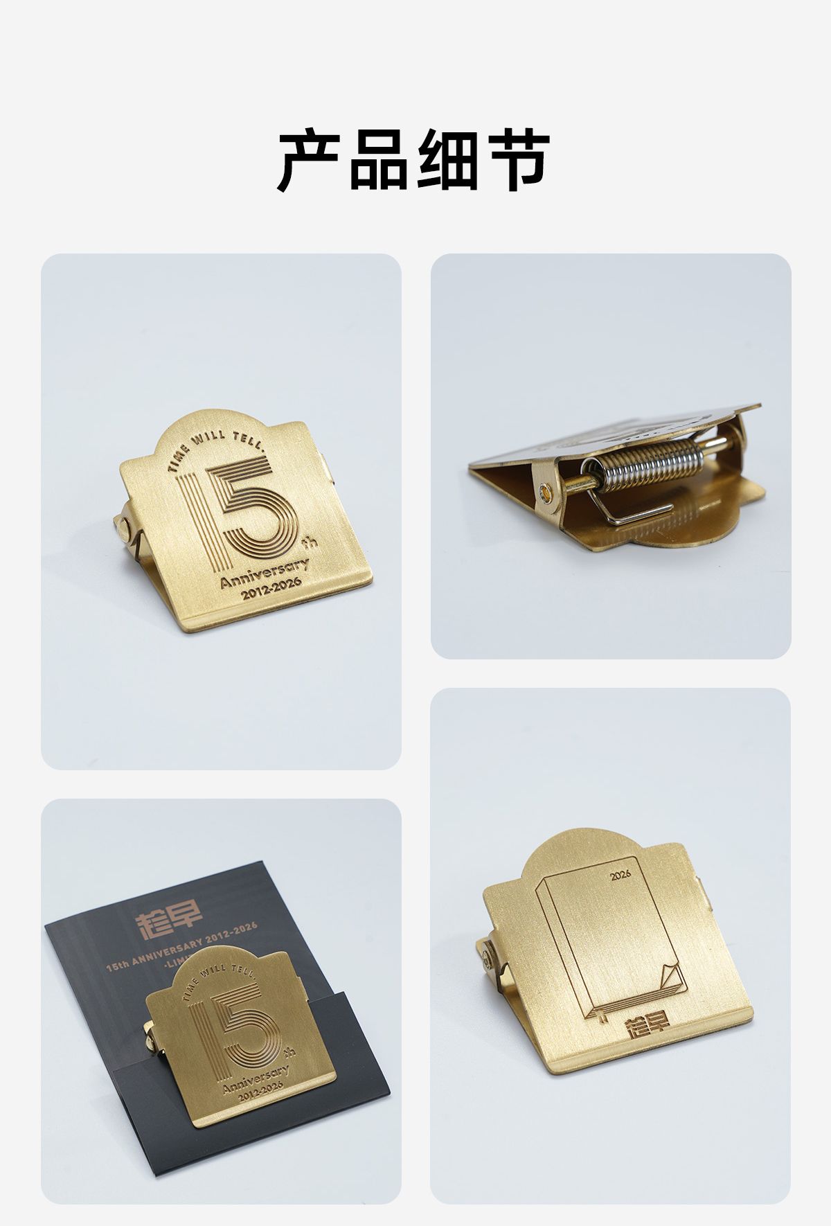 趁早15周年纪念黄铜夹手账本装饰书签夹子票据金属夹