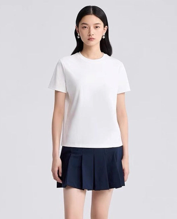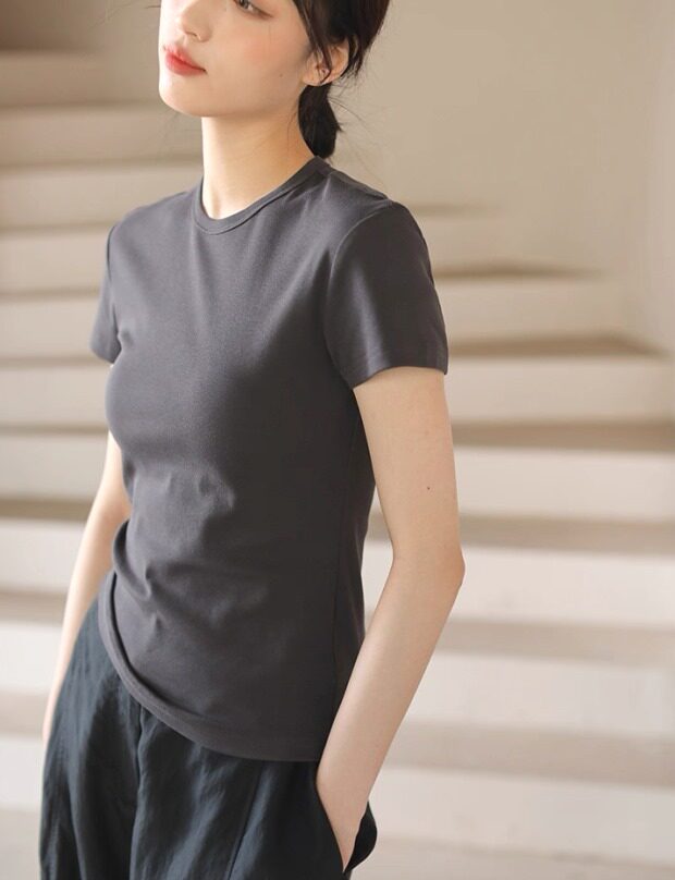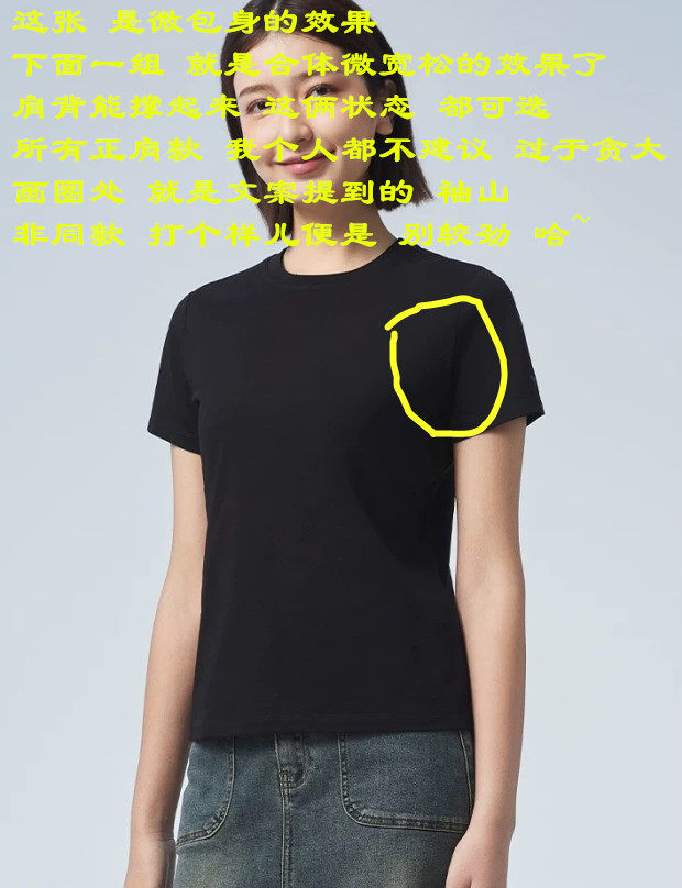适中的小圆领 正肩 微微收腰 小宽松状态下 收腰不明显 单穿打底 都很棒