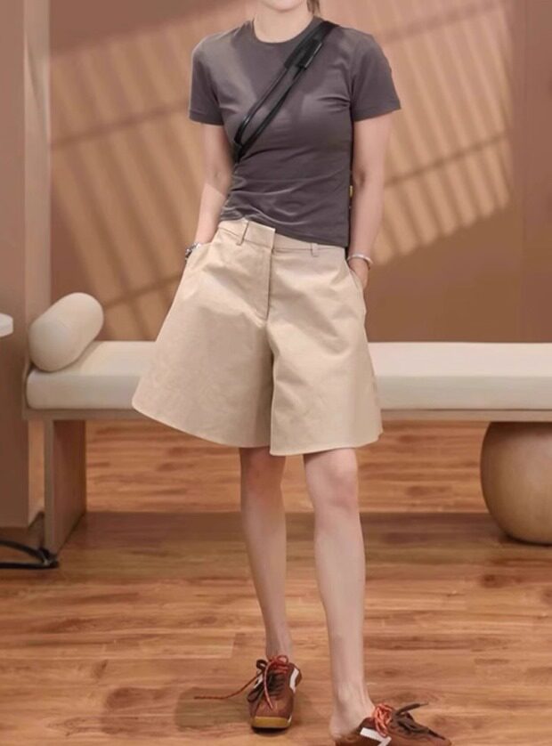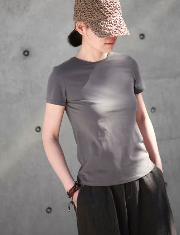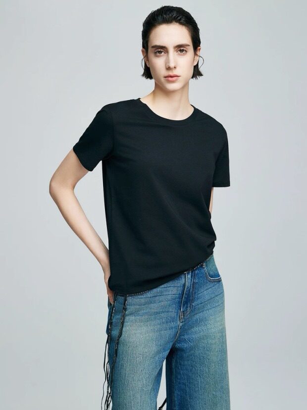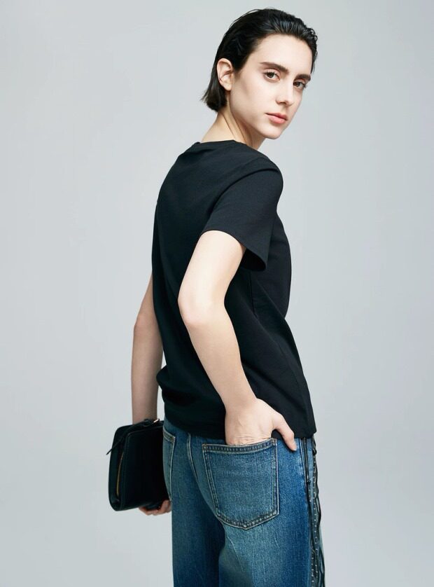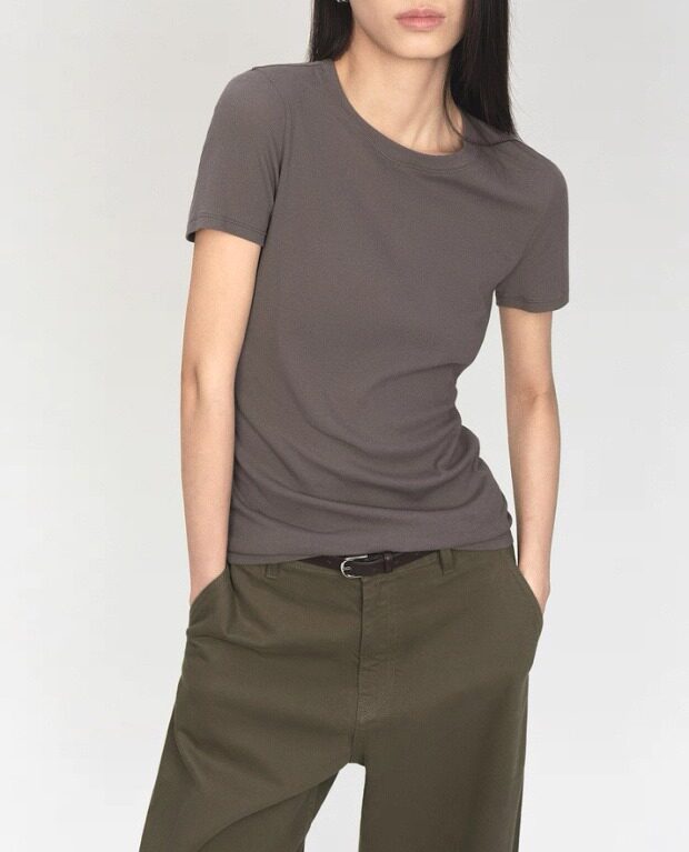合体小宽松 肩背量挺足 不是窄窄的那种 衣身也没有很短 极简又不失小松弛