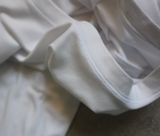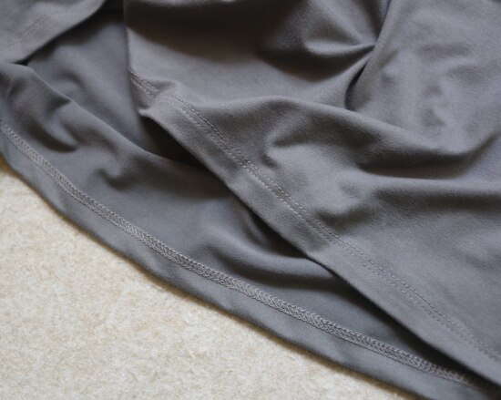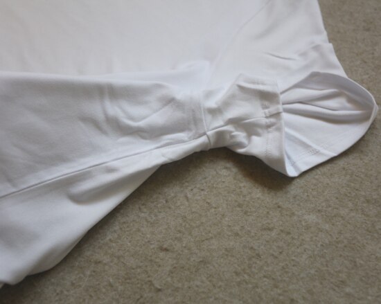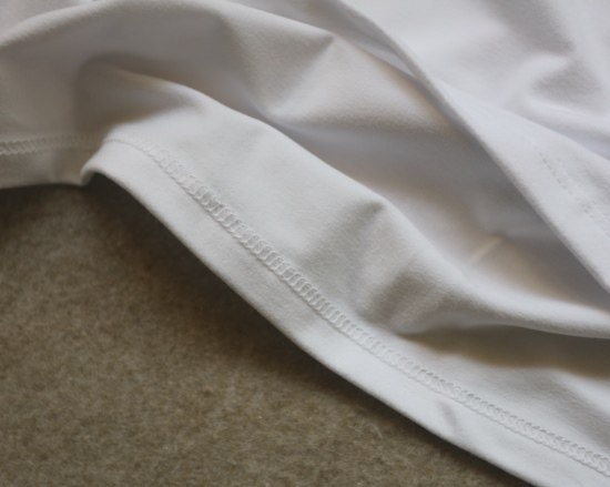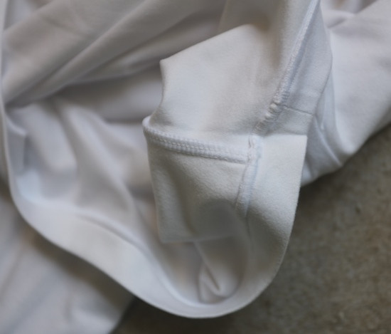肩头和侧身 是采用包裹式的线迹 比常规车缝 更紧密平整