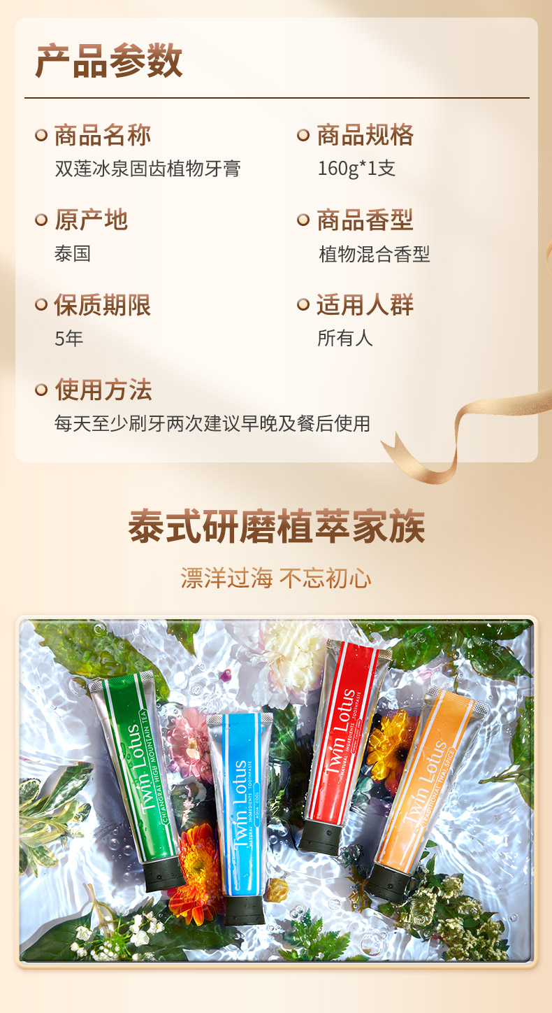 泰国双莲冰泉固齿植物牙膏【100g/160g】