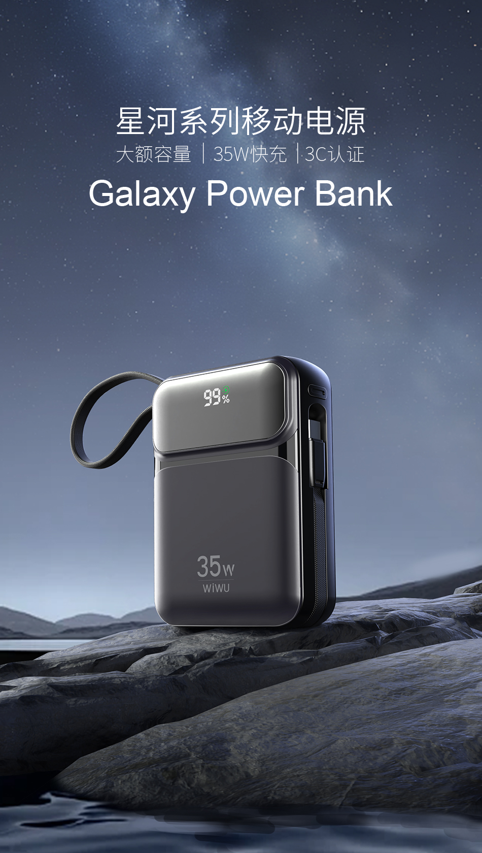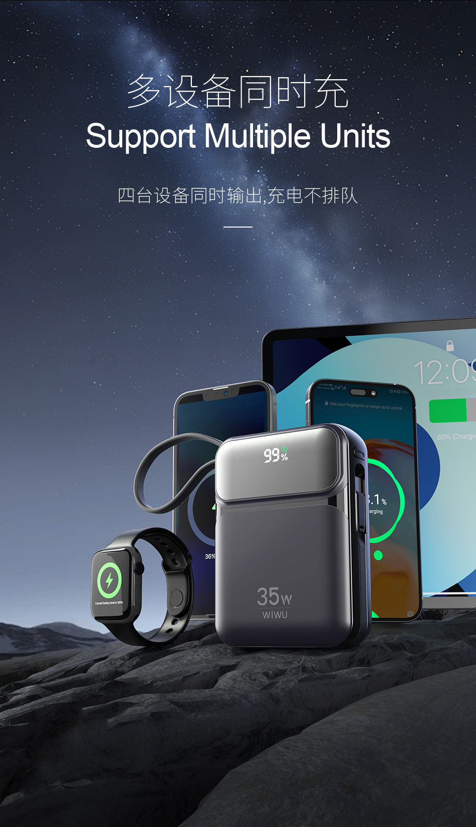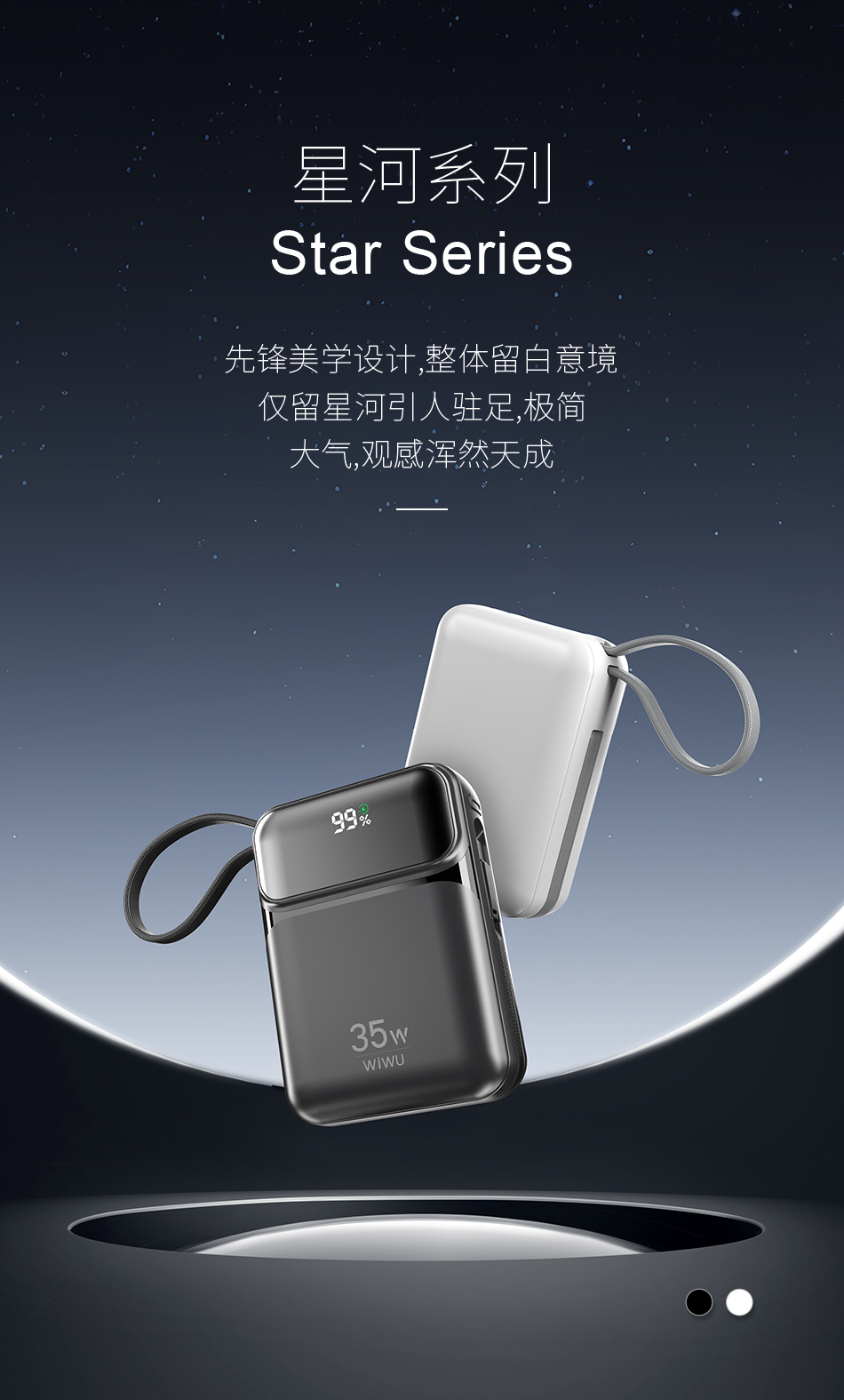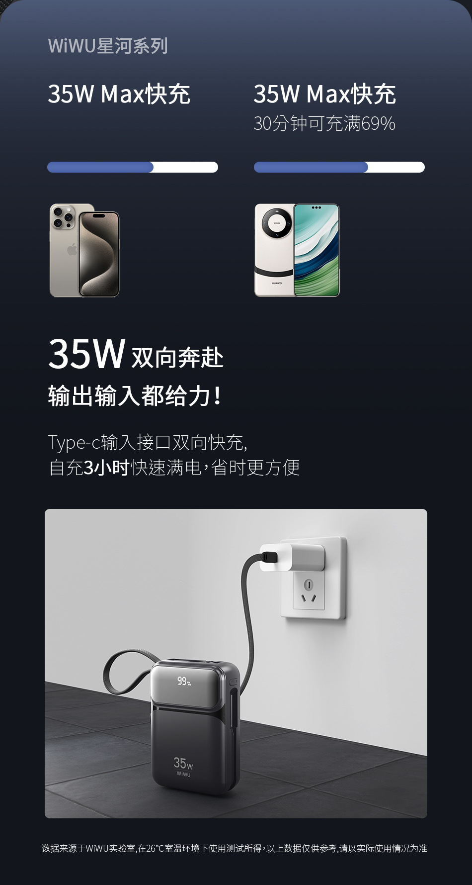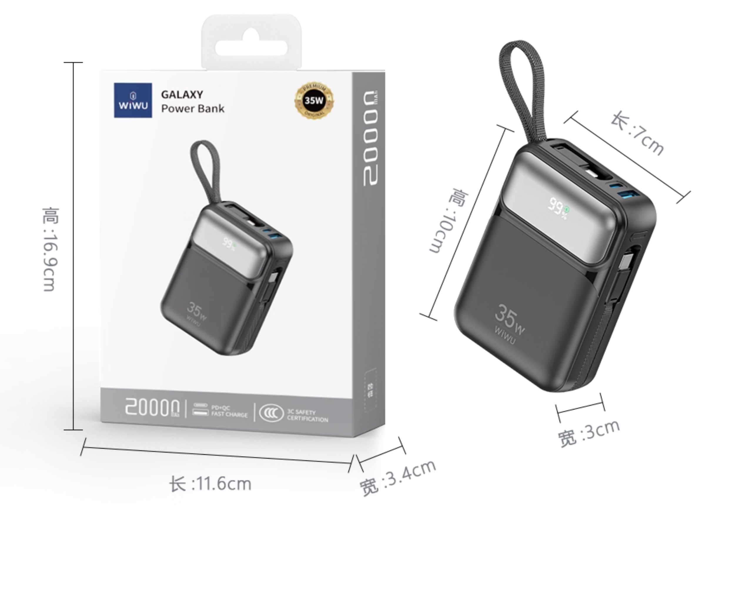 wiwu/为悟星河充电宝20000毫安mAh大容量超级快充35w自带线数显22.5w适用苹果华为小米vivo手机oppo