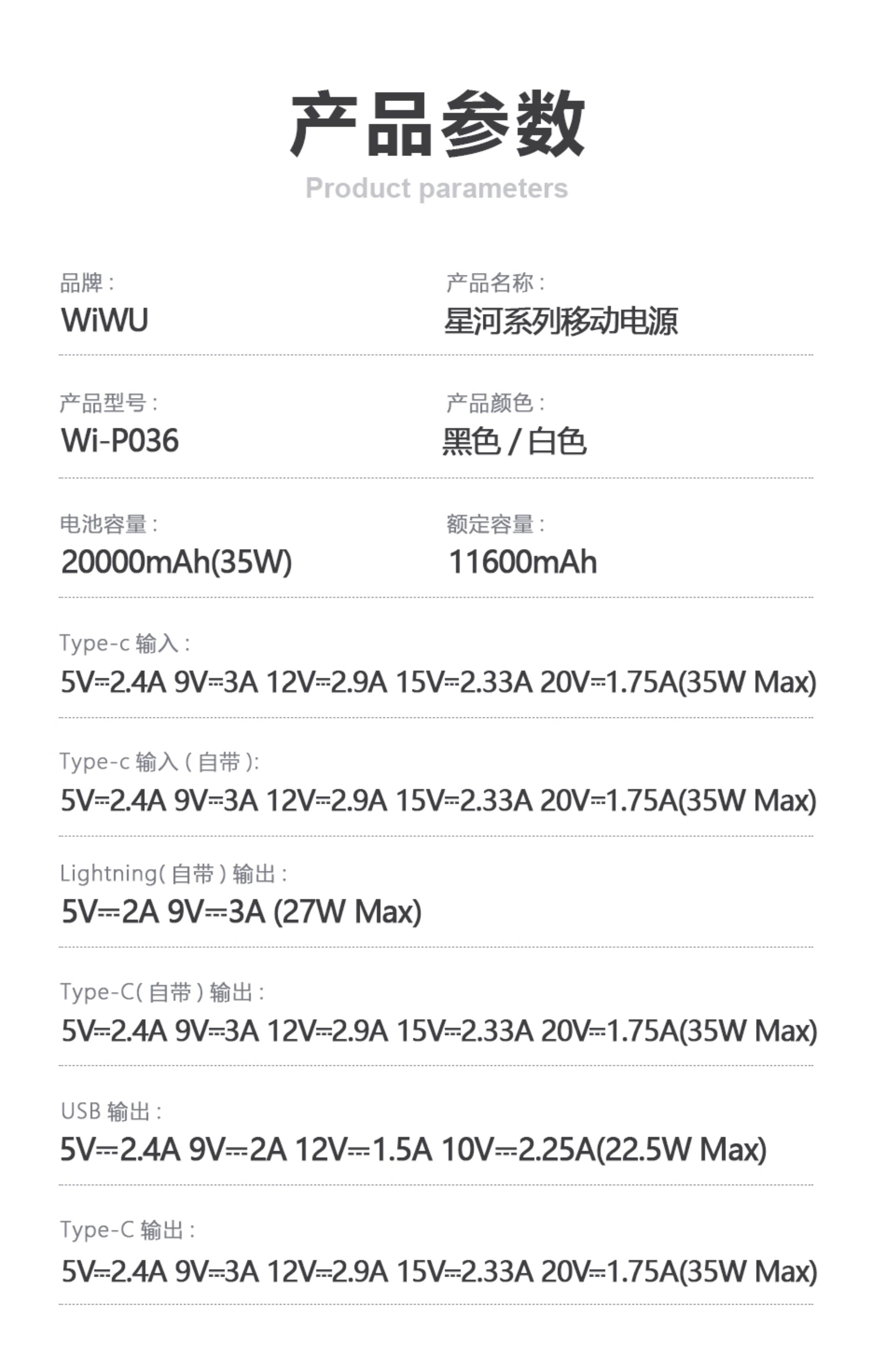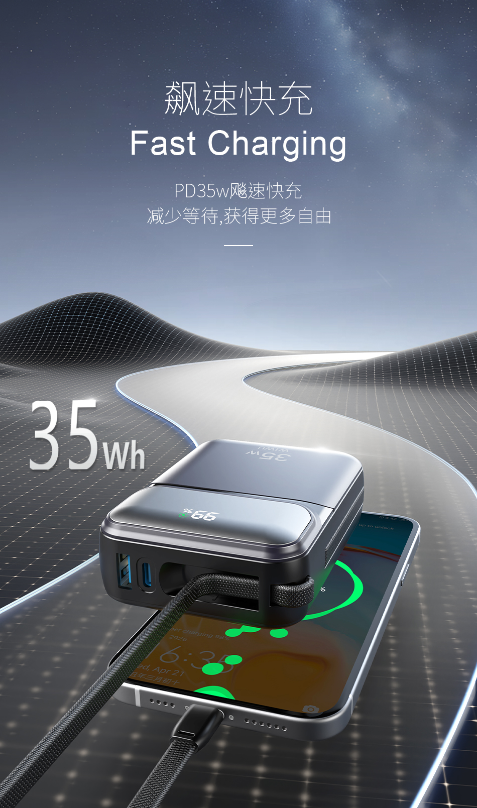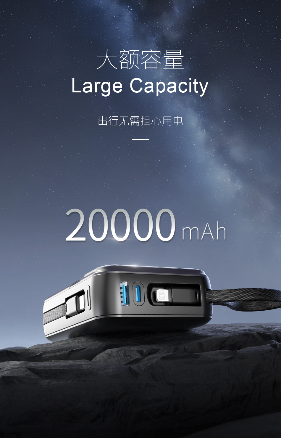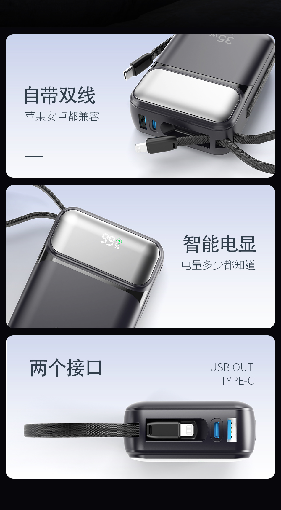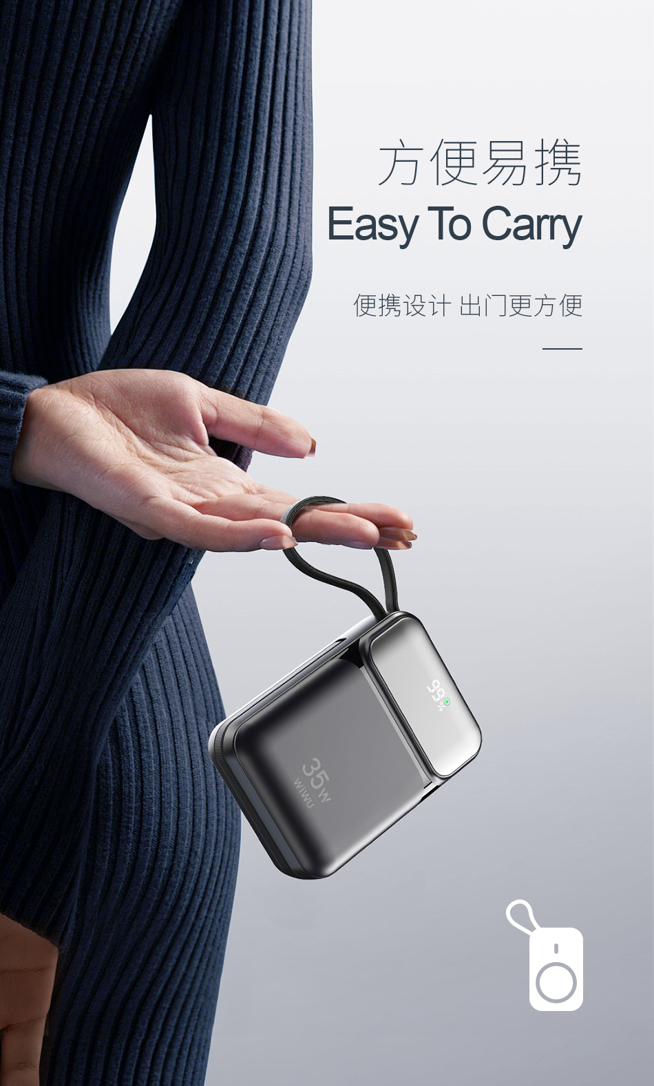 wiwu/为悟星河充电宝20000毫安mAh大容量超级快充35w自带线数显22.5w适用苹果华为小米vivo手机oppo