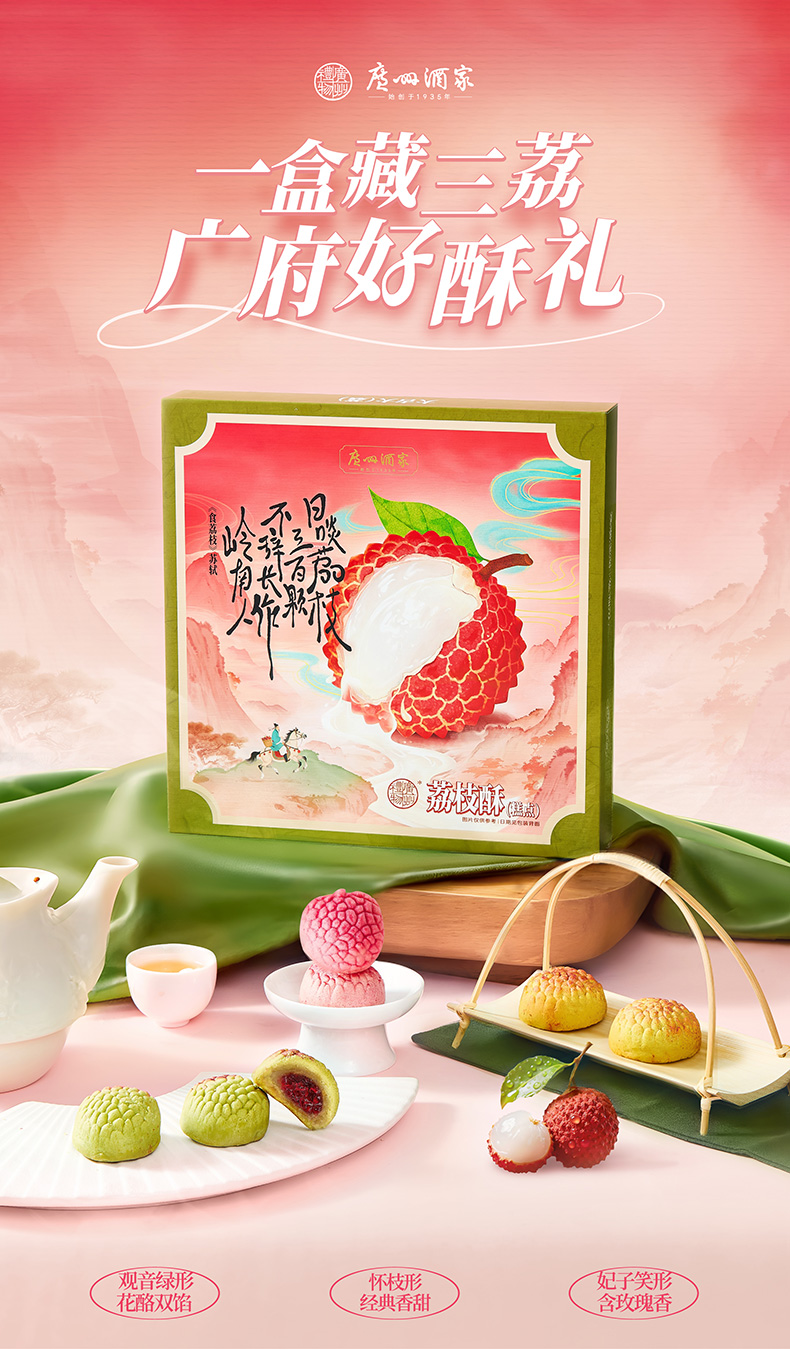广州酒家 荔枝酥礼盒岭南风味特产糕点点心下午茶休闲零食伴手礼物