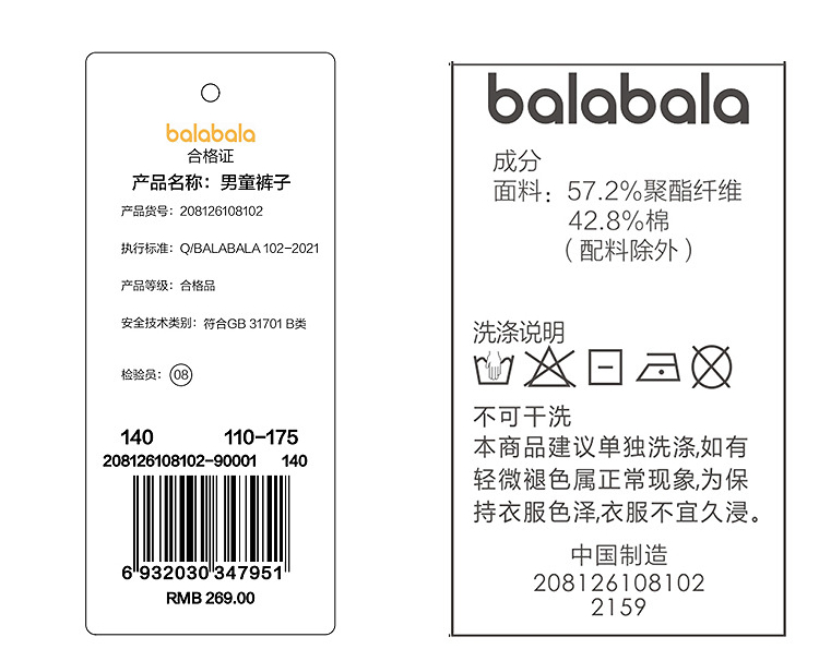 【balaOne】巴拉巴拉童装儿童裤子男童2025新款春秋装加绒慢跑裤