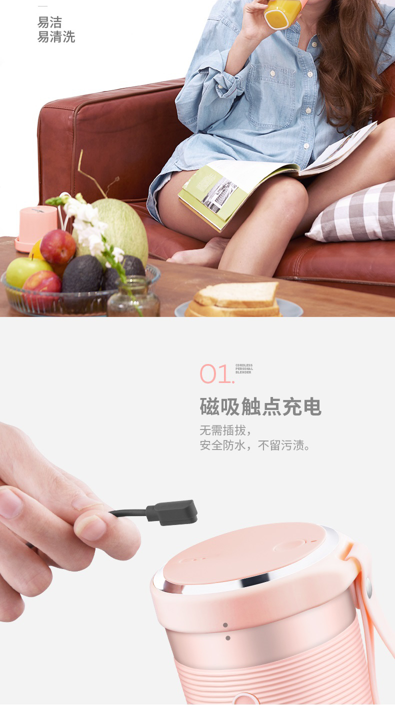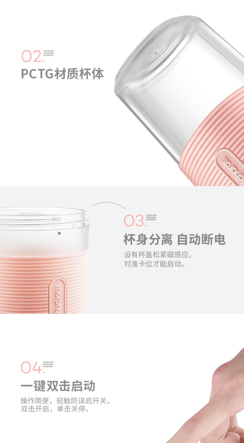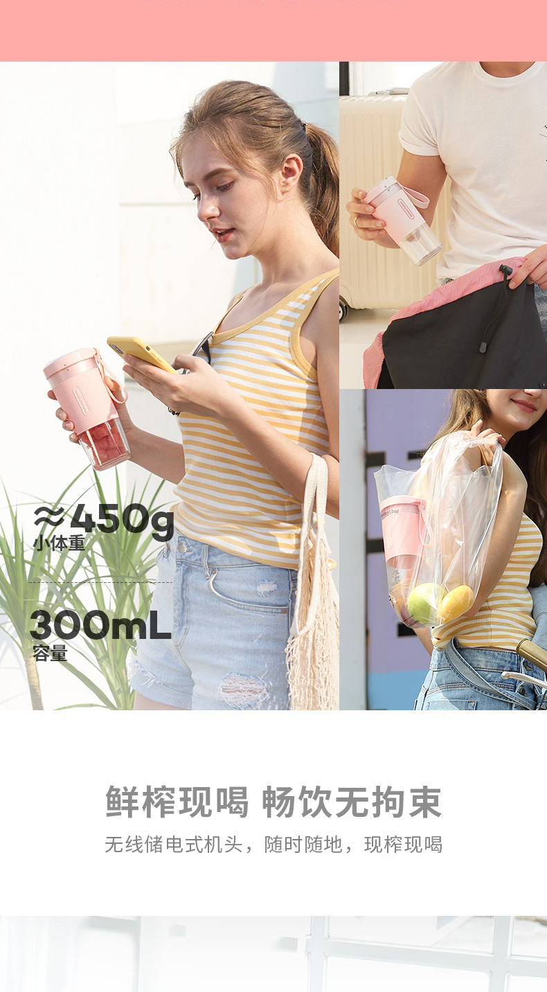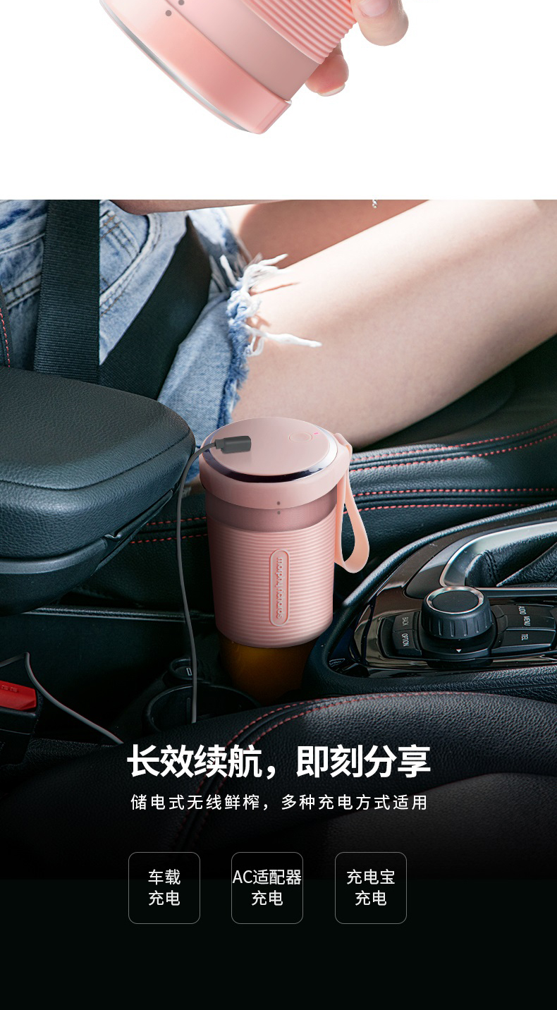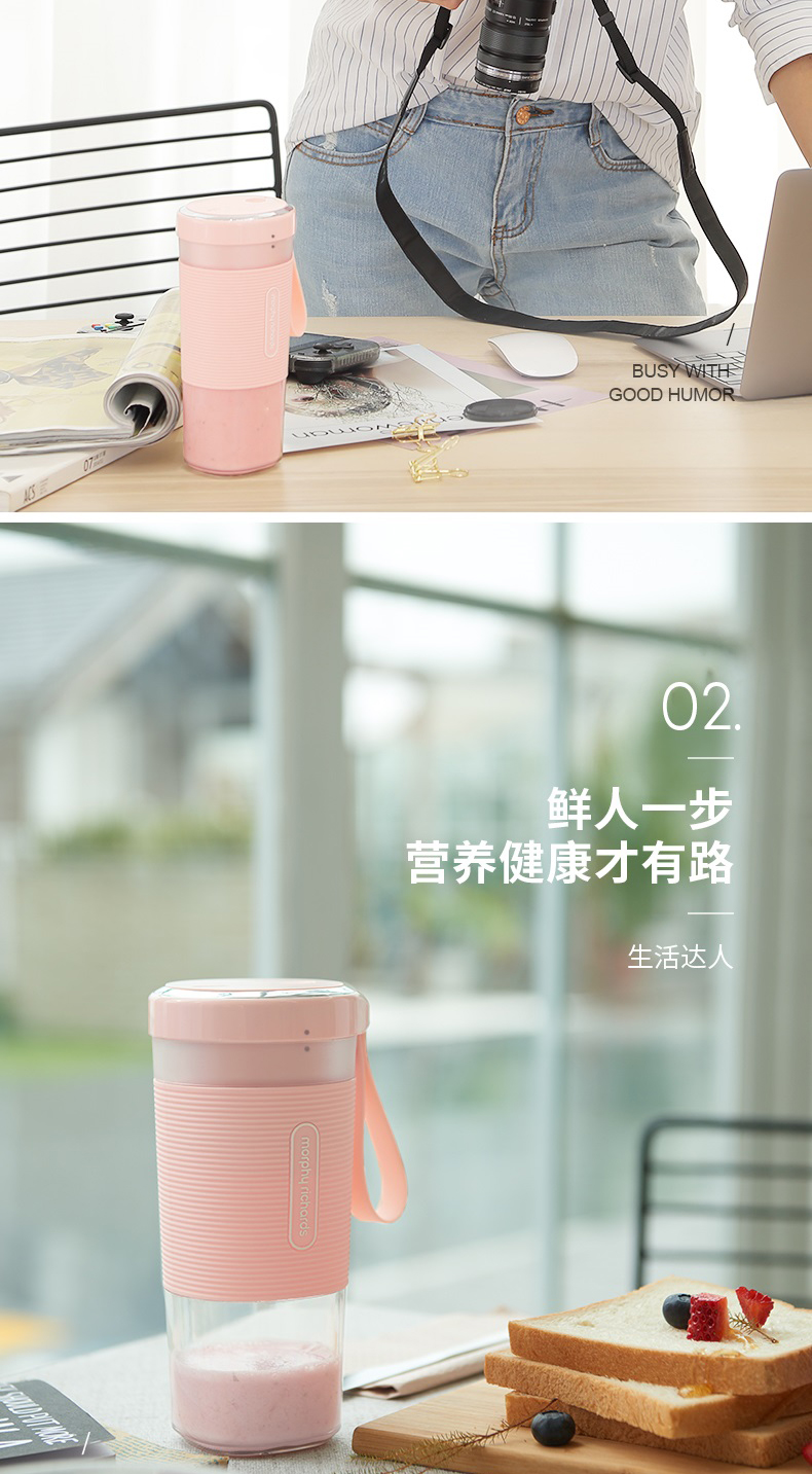 摩飞榨汁机便携式磁吸充电迷你无线果汁机料理机随行杯MR9600(粉色)