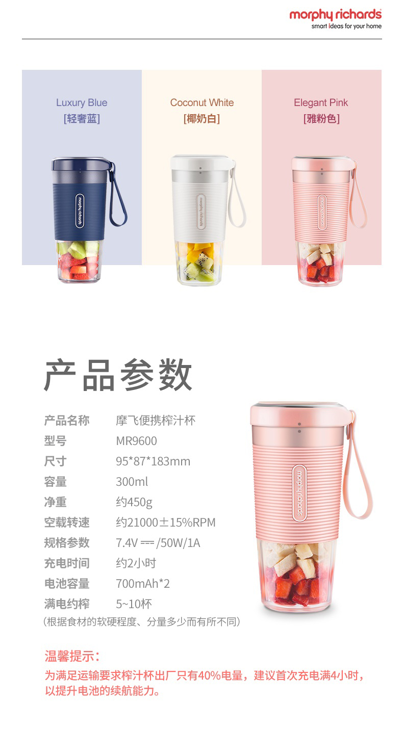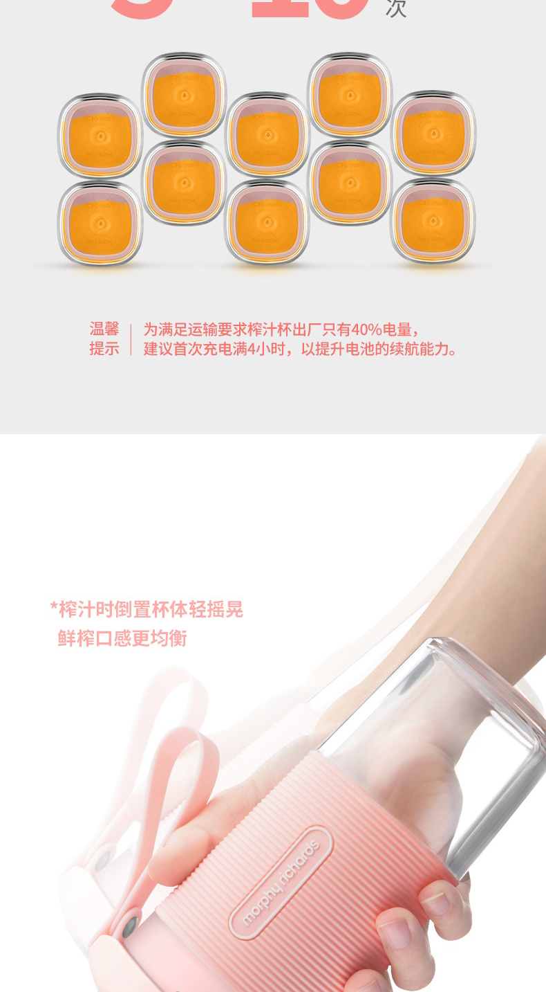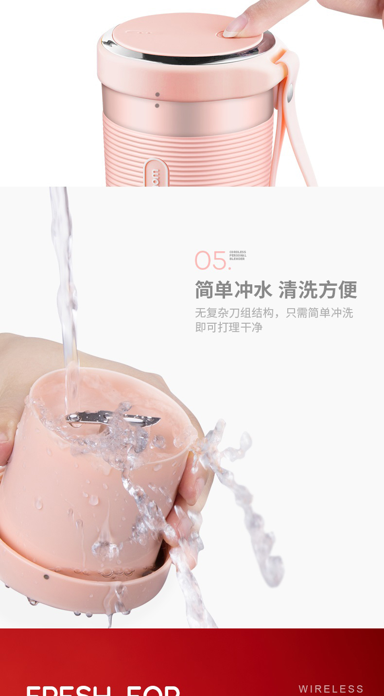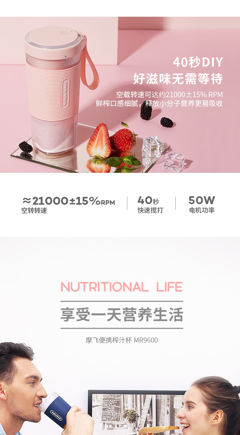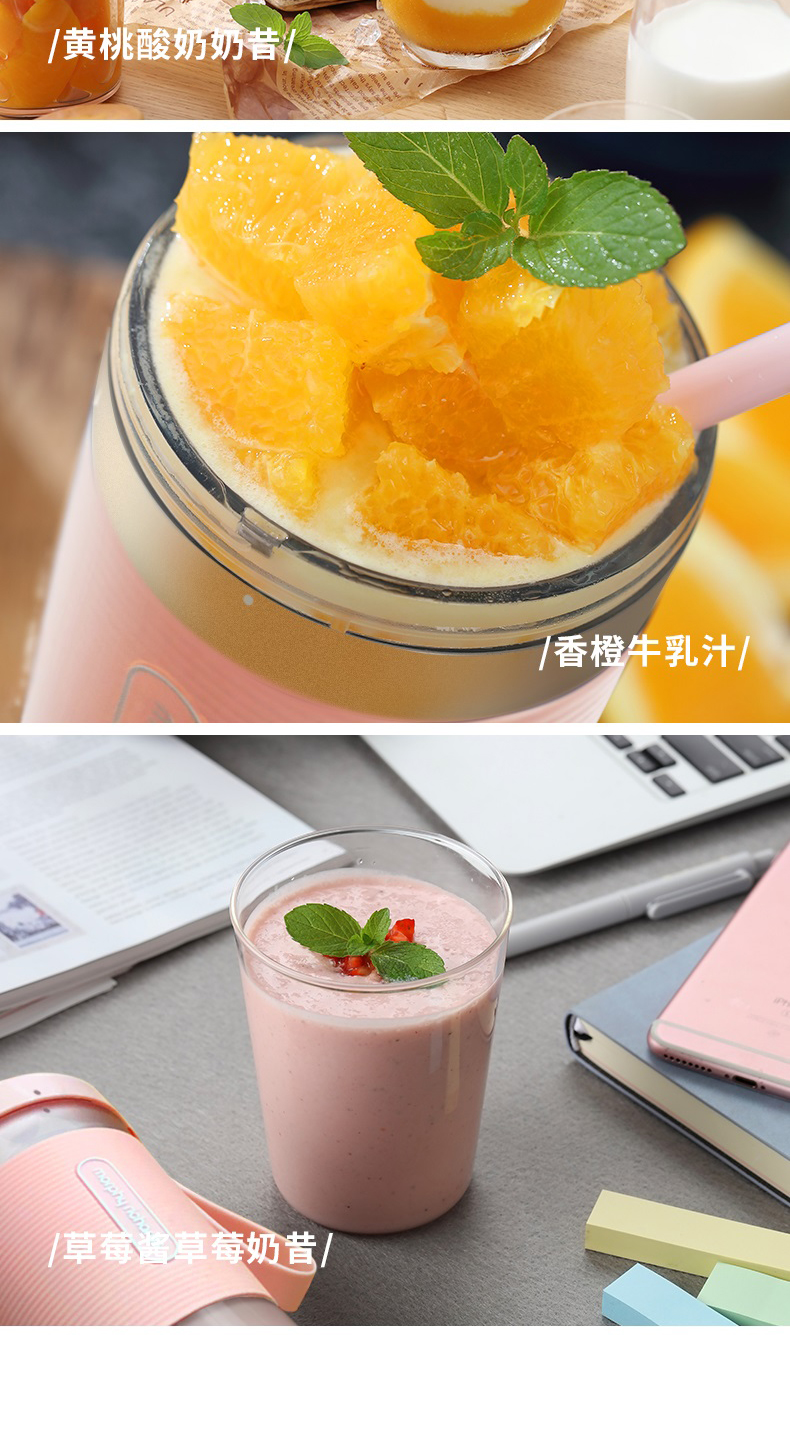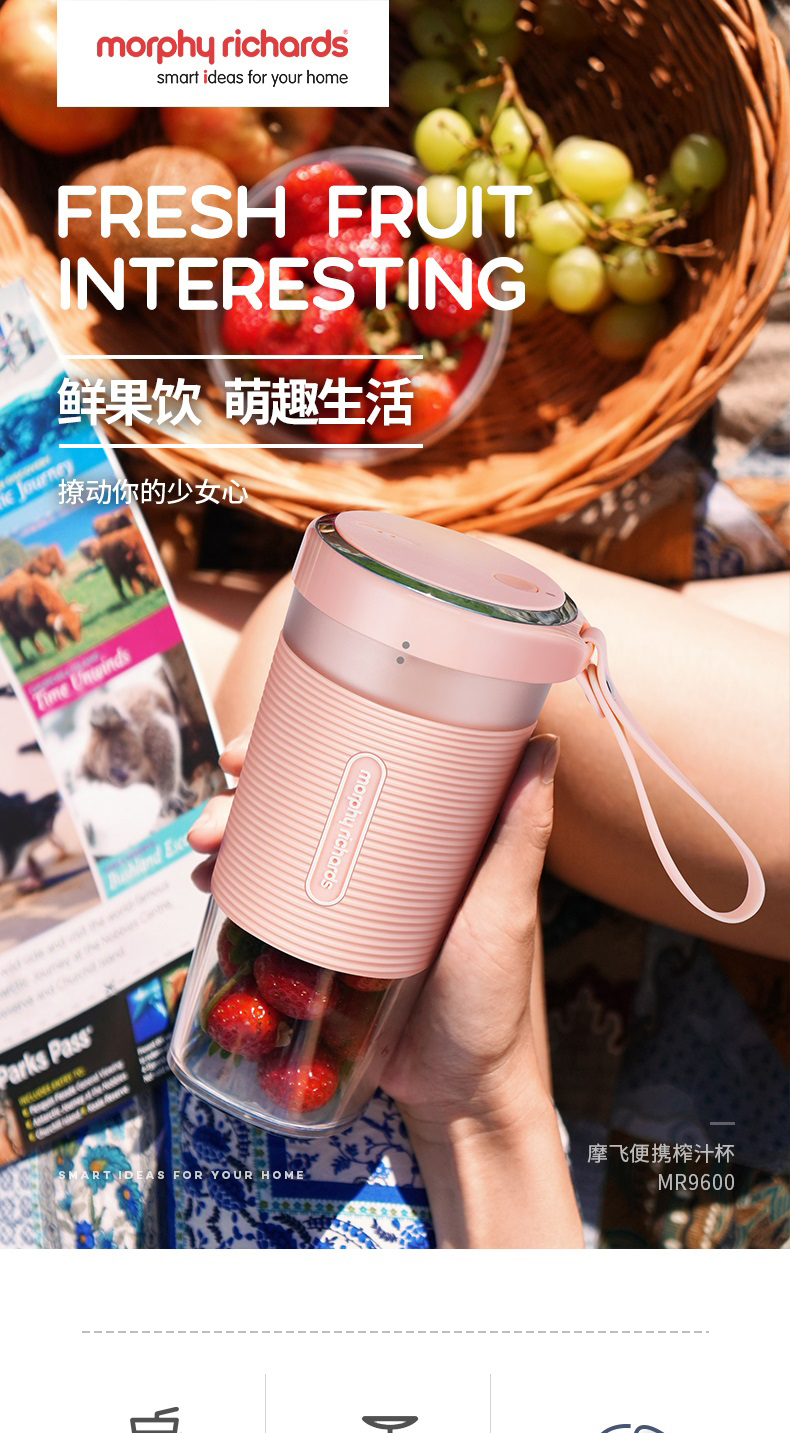 摩飞榨汁机便携式磁吸充电迷你无线果汁机料理机随行杯MR9600(粉色)