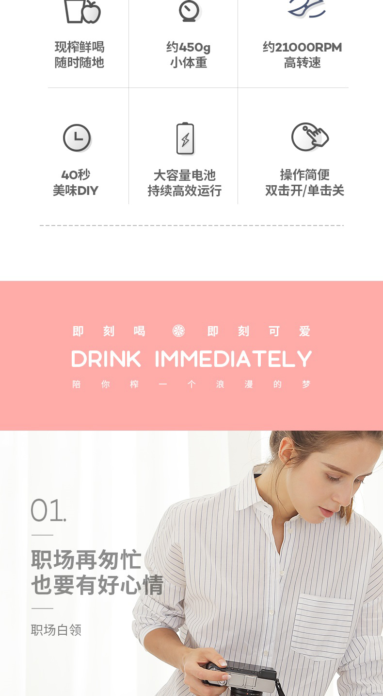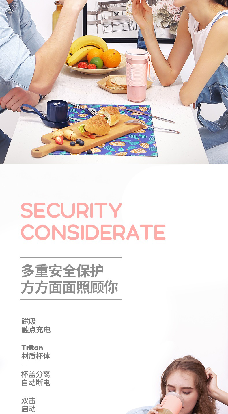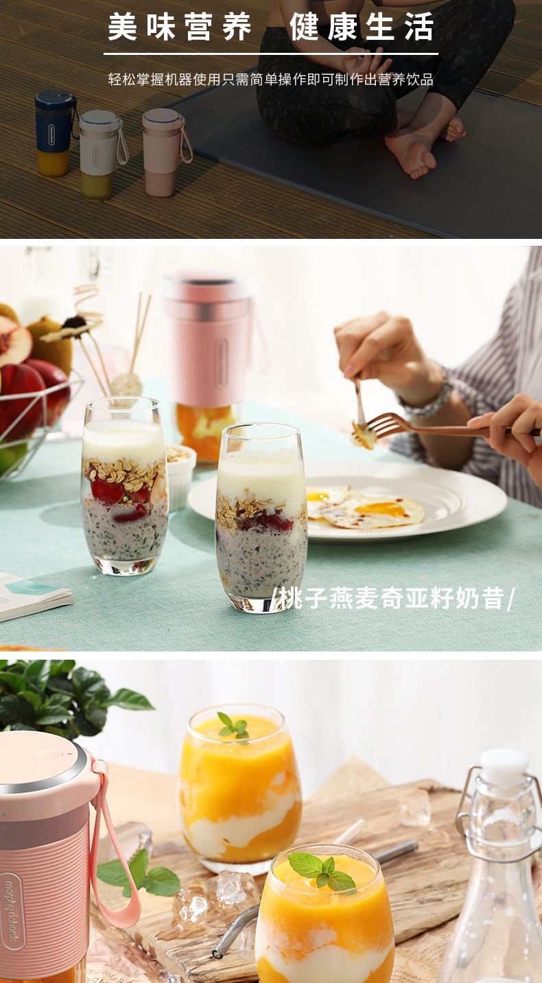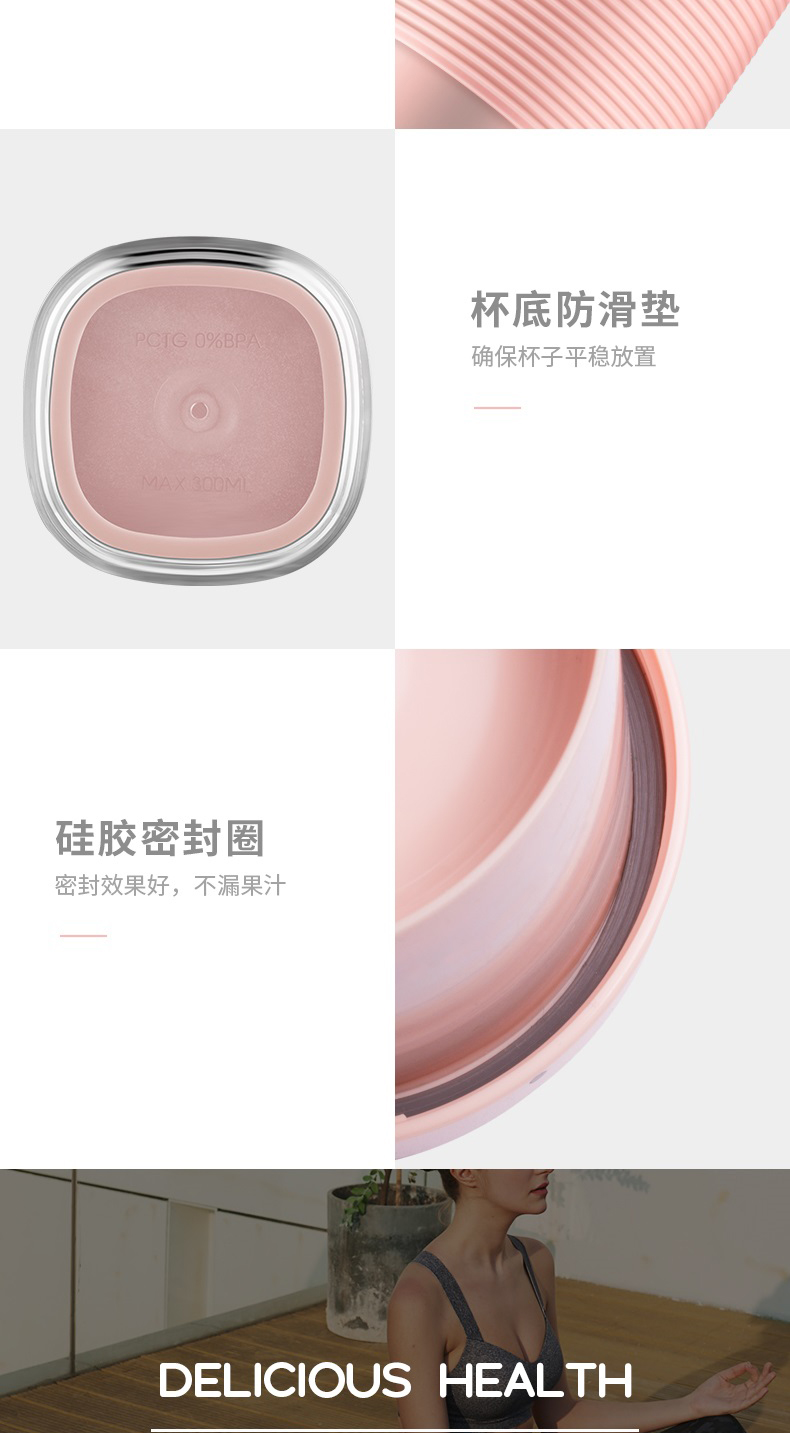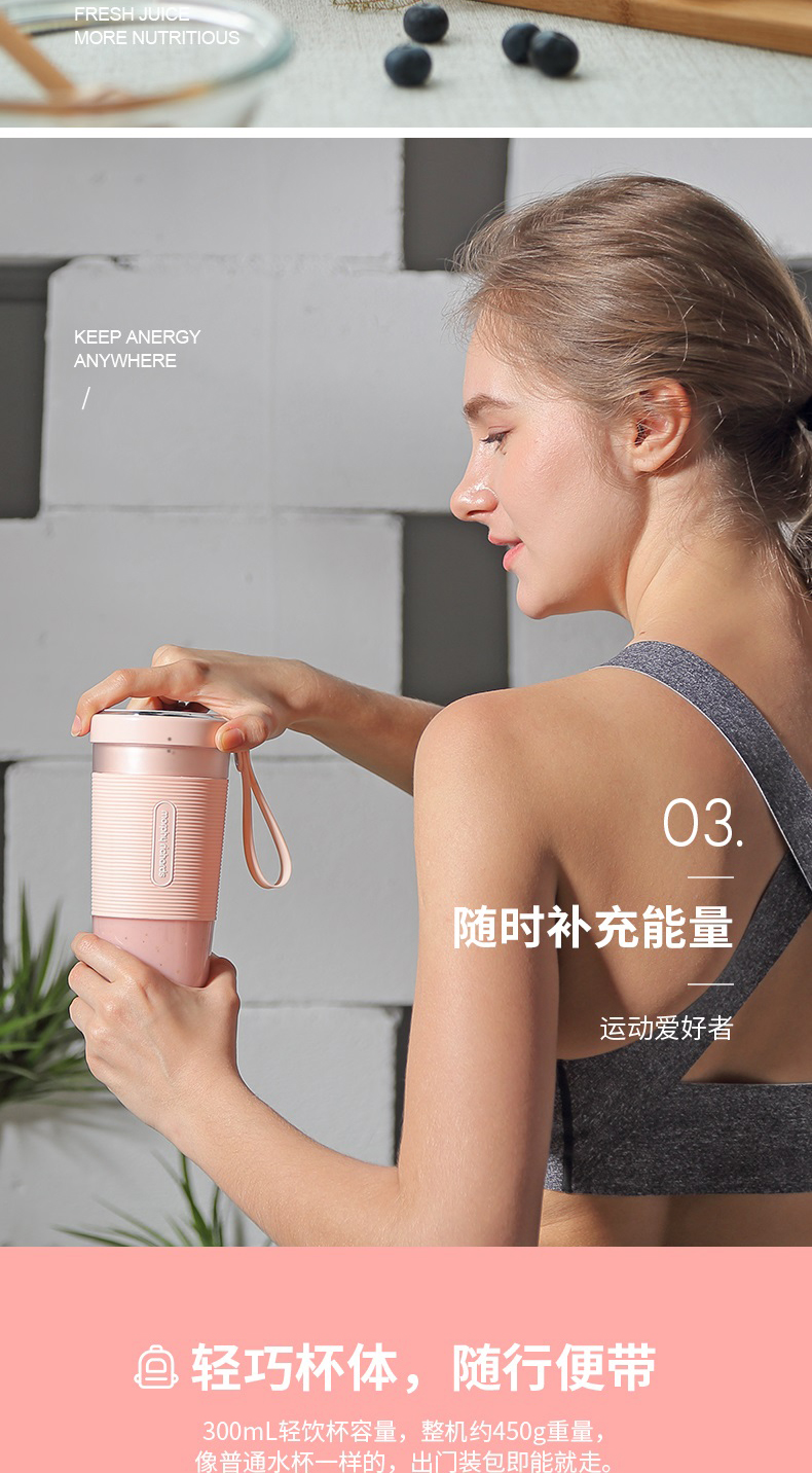 摩飞榨汁机便携式磁吸充电迷你无线果汁机料理机随行杯MR9600(粉色)