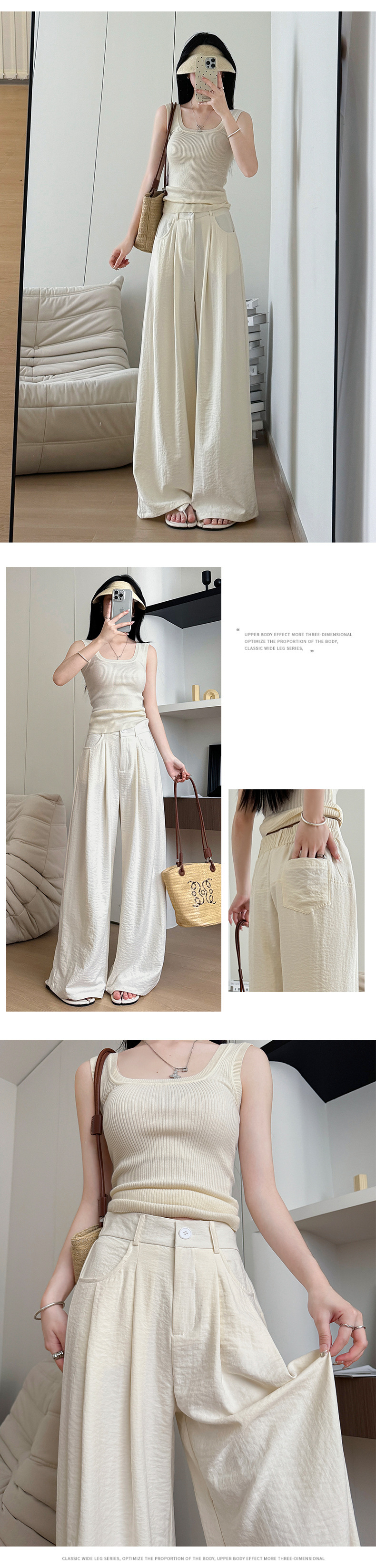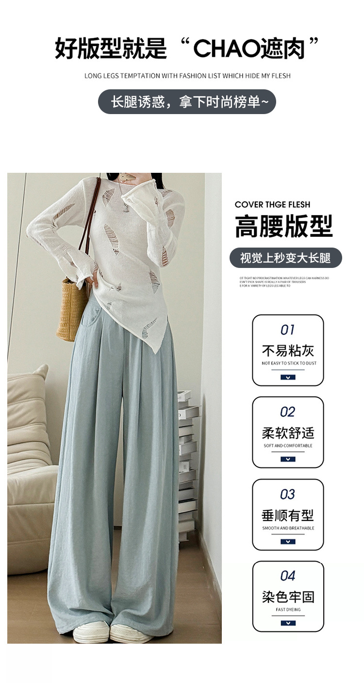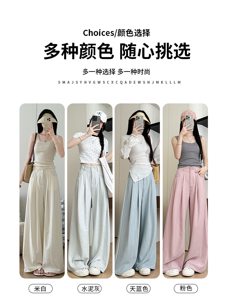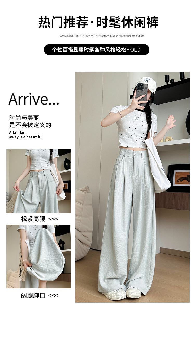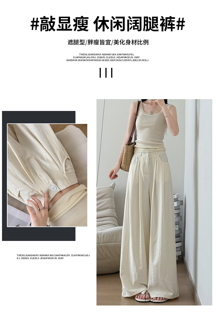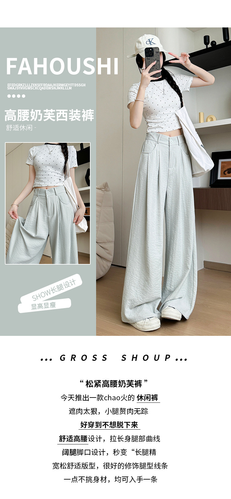 春夏轻薄奶芙西装裤 显瘦高腰宽松慵懒直筒阔腿裤