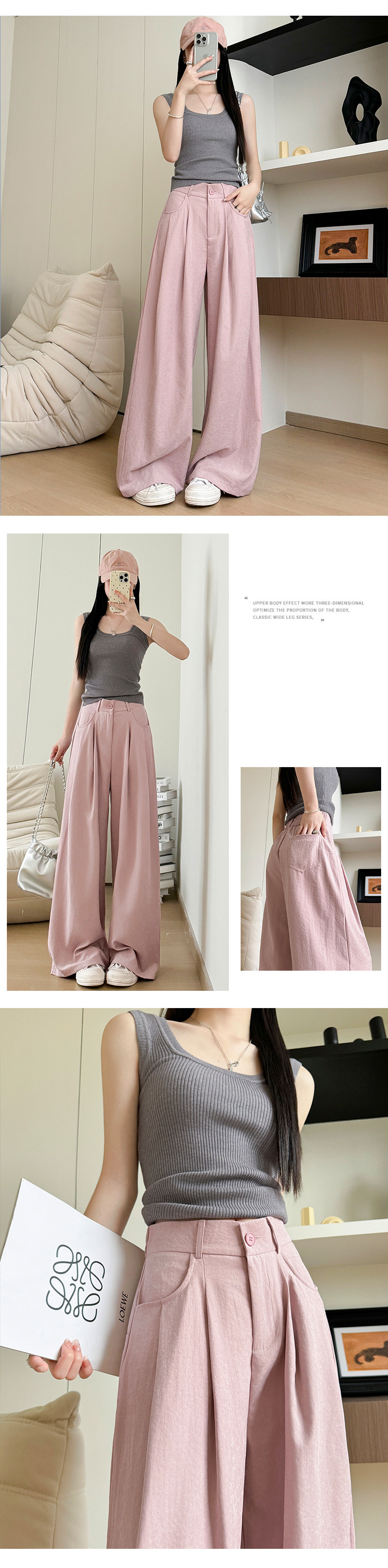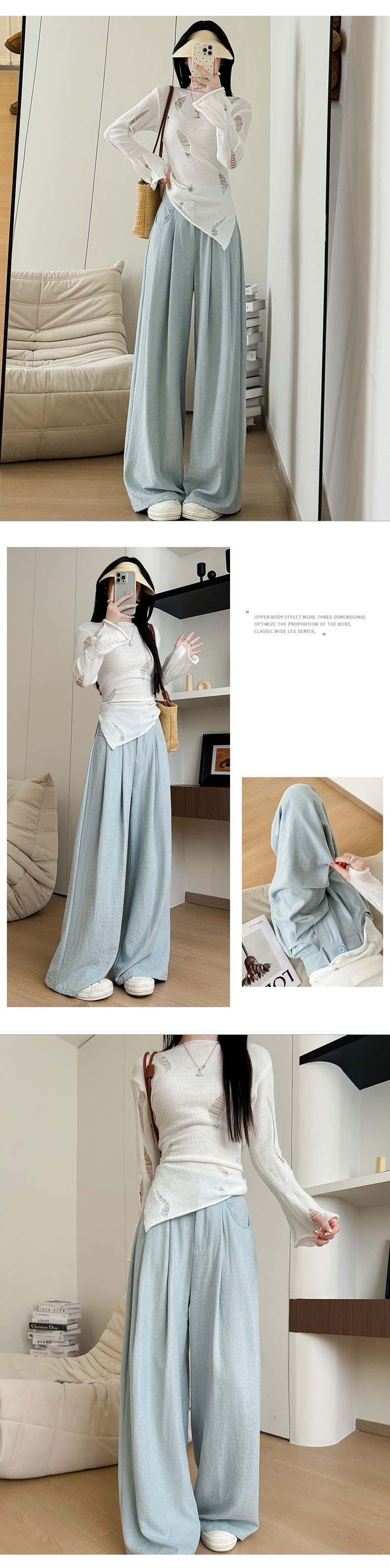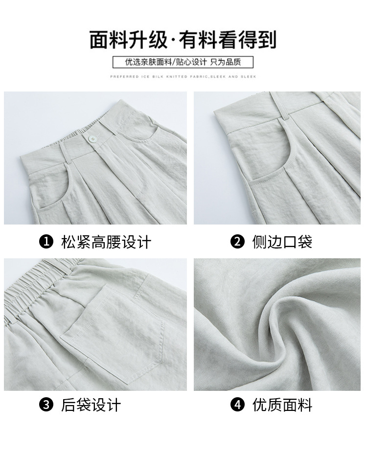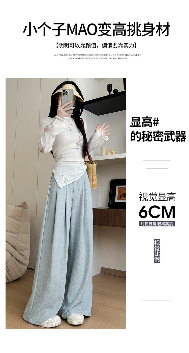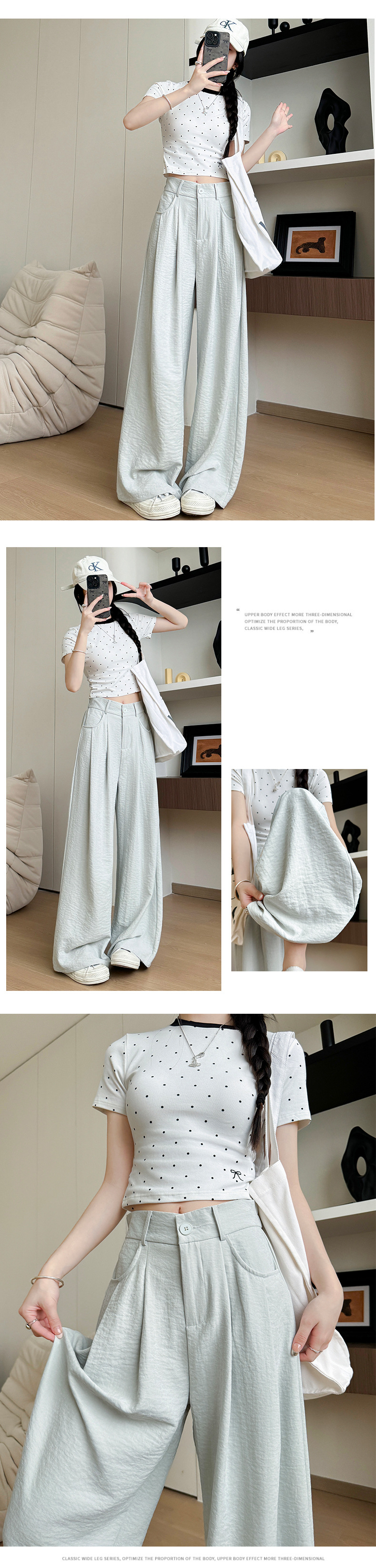 春夏轻薄奶芙西装裤 显瘦高腰宽松慵懒直筒阔腿裤