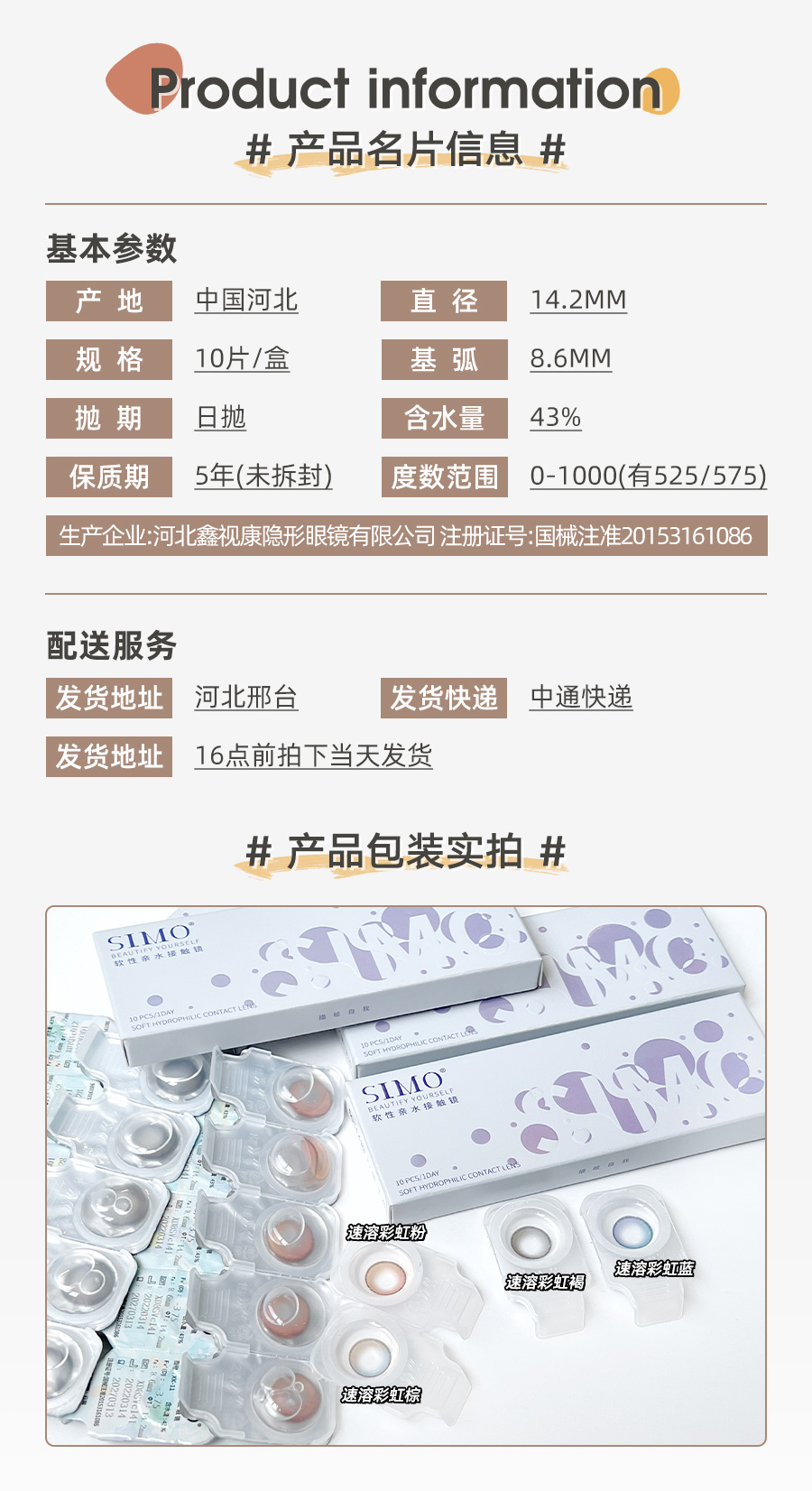 「6盒均¥44.6」SIMO速溶彩虹日抛 | 渐变梦幻瞳棕/褐/粉/蓝