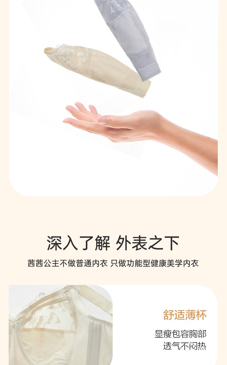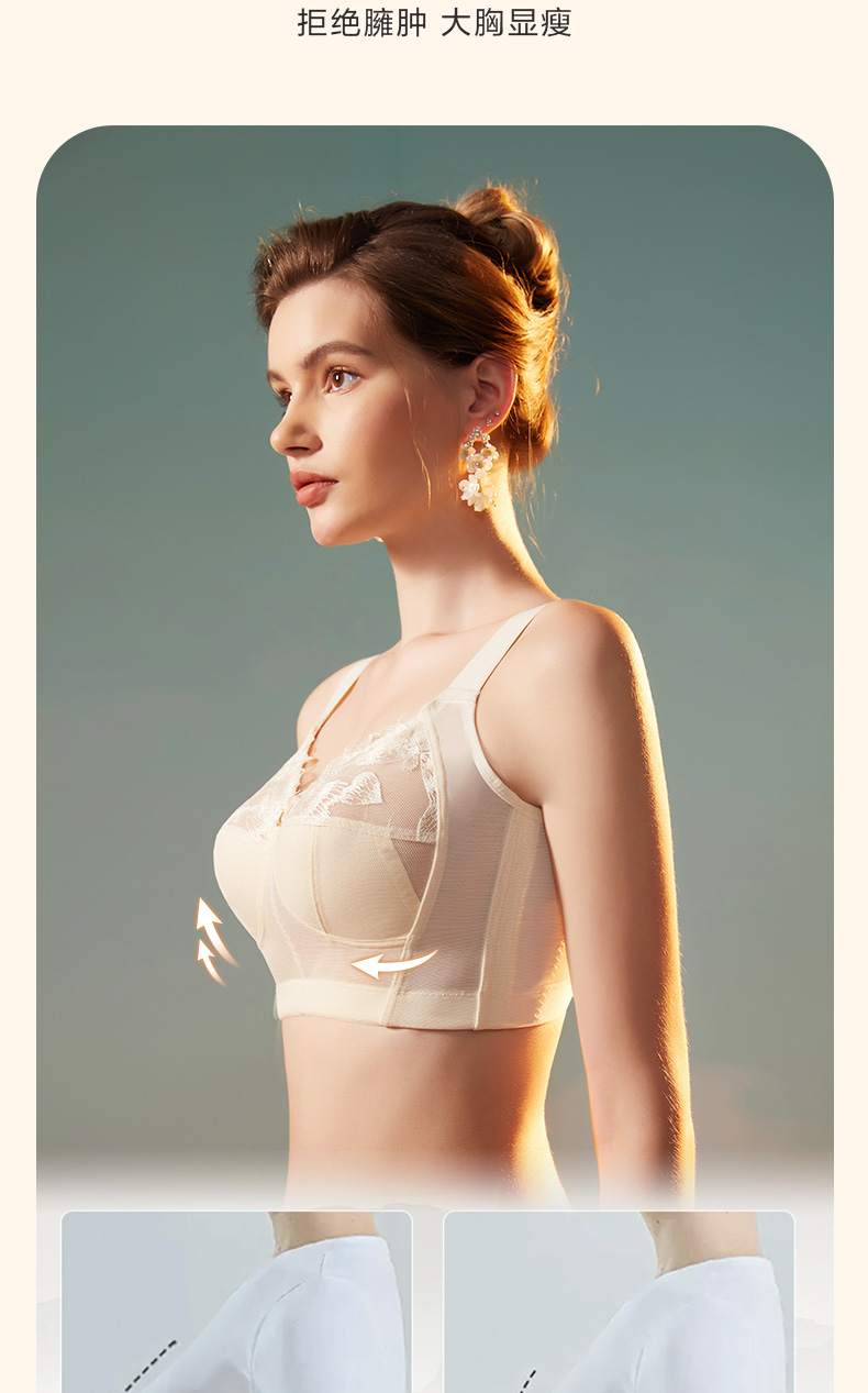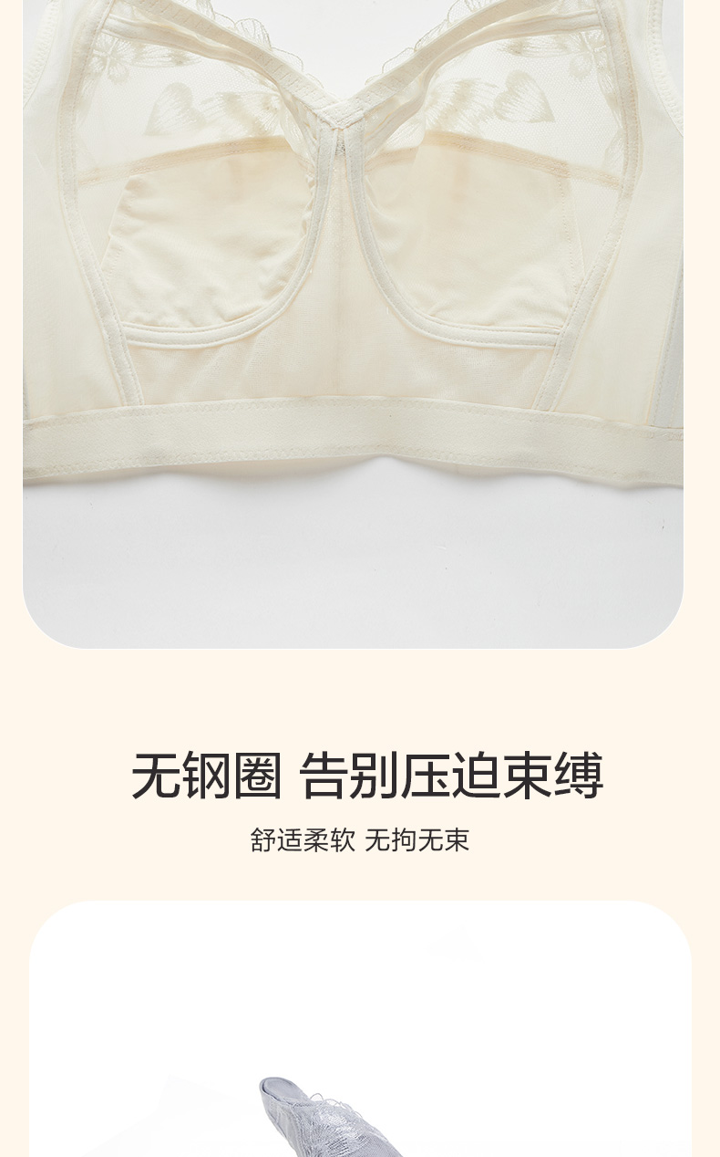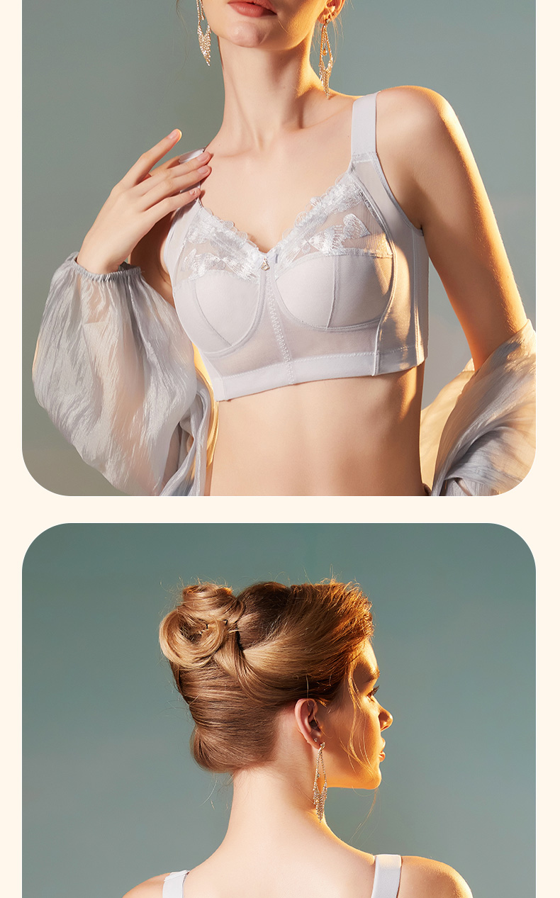 轻奢女王调整型文胸 无钢圈全罩杯超薄杯 通透蕾丝灵动刺绣 大胸显小 桑蚕丝里料抑菌滋养
