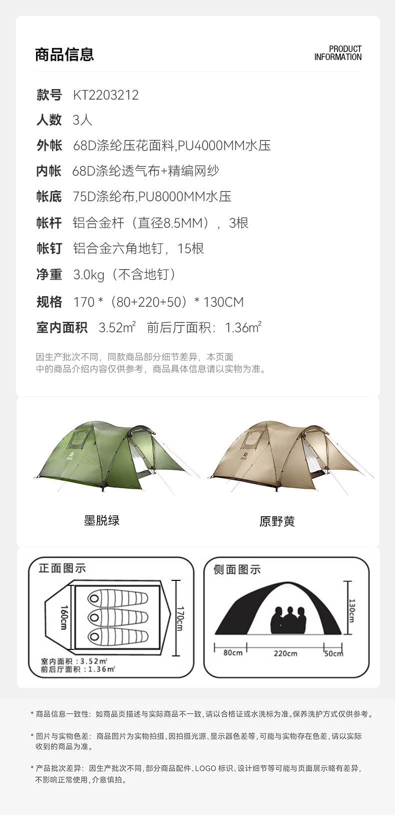 凯乐石户外 星宇III 3人野营帐篷 3P(Star Night III)KT2203212【Z】