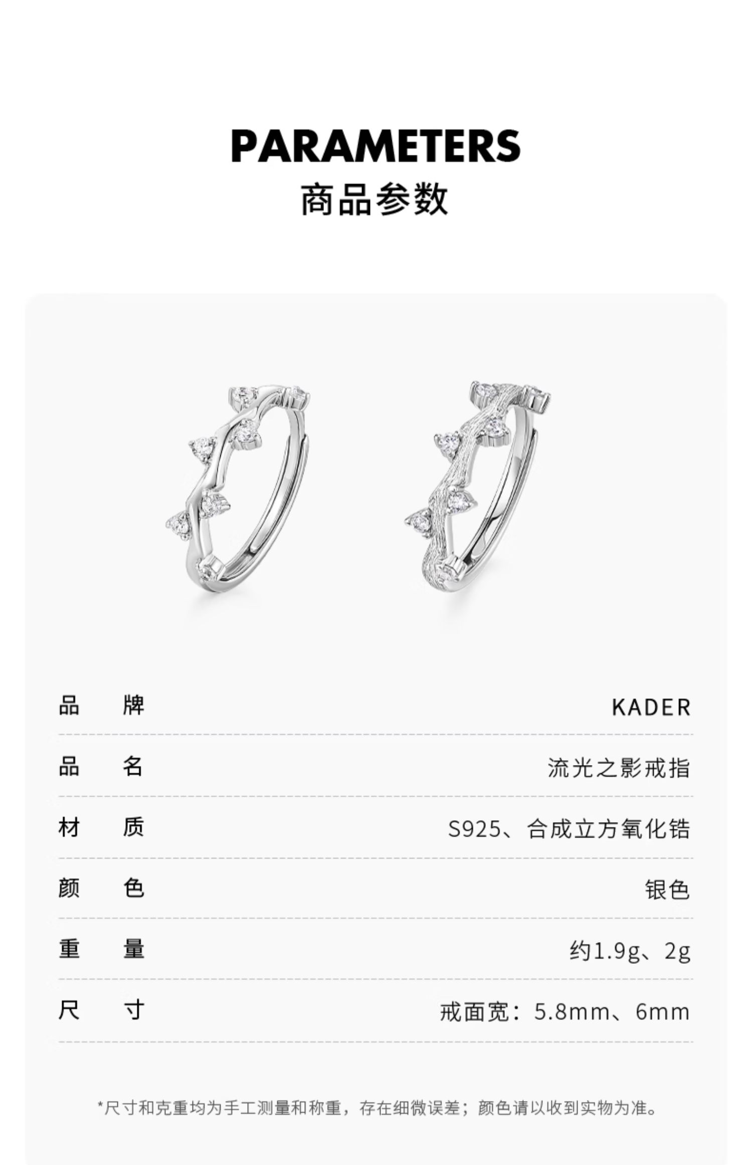 卡蒂罗KADER 时光之森情侣对戒 轻奢不规则纹理独特小众设计可调节一对 高级浪漫约会日常简约百搭通勤