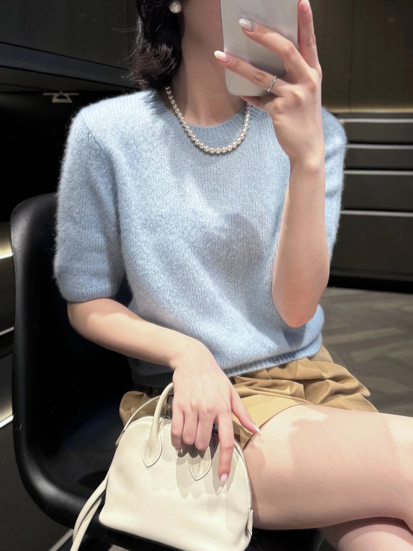 早春新款 重磅! 康宝莱羊绒短袖 Amara白厂丝羊绒 糖果色!针织短袖t恤