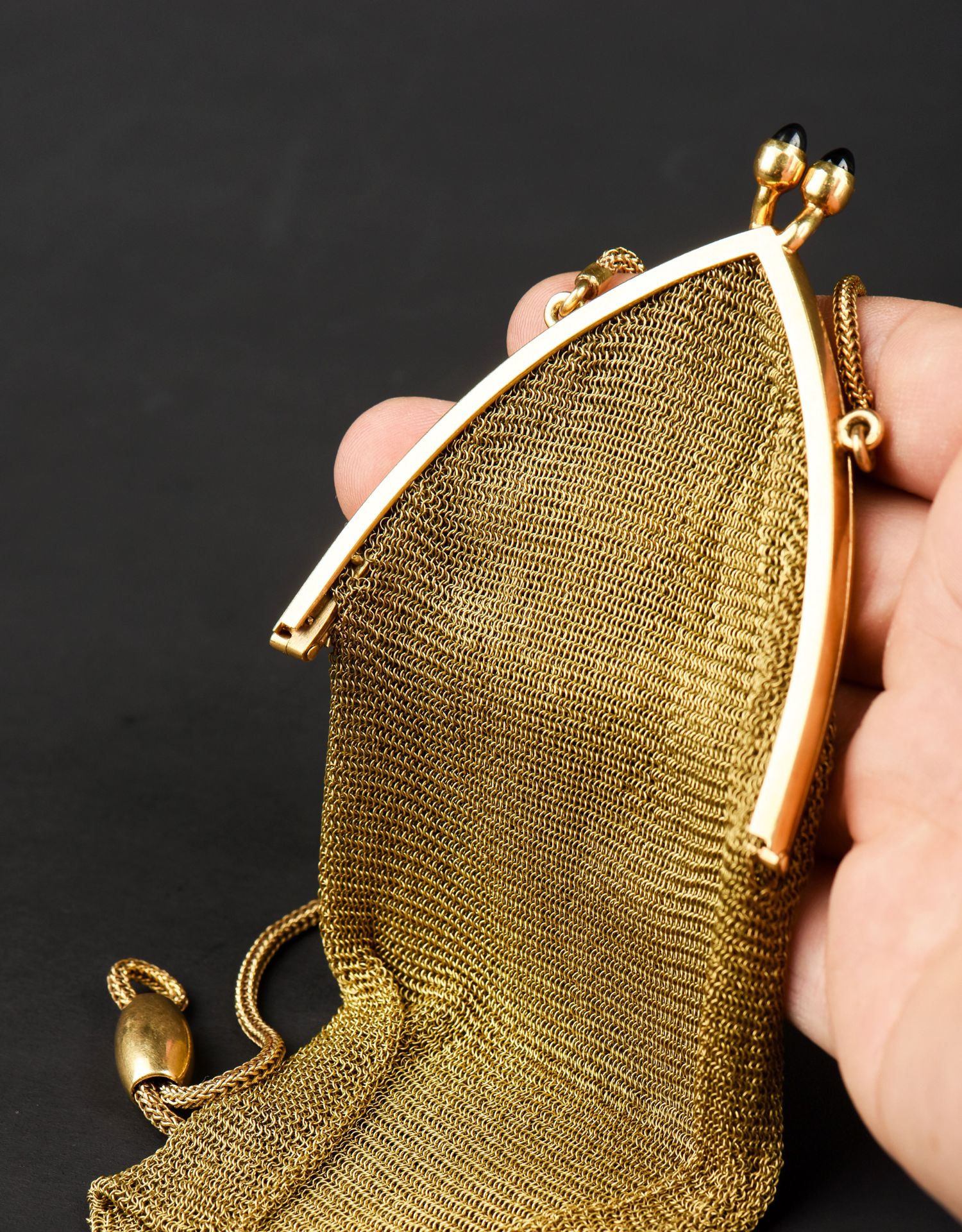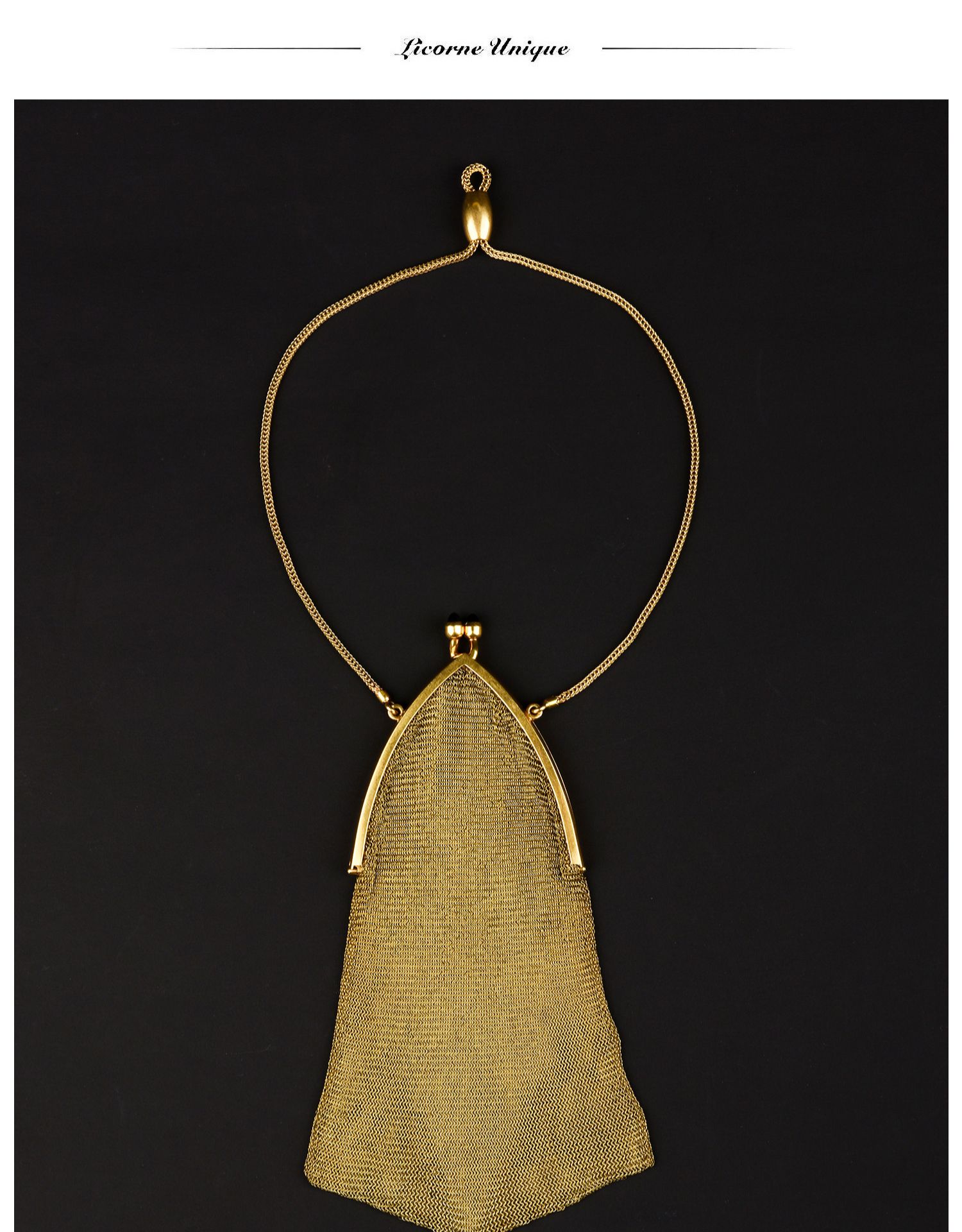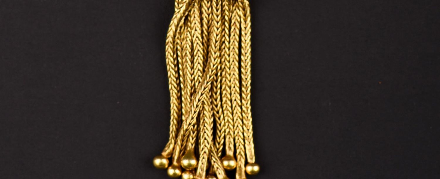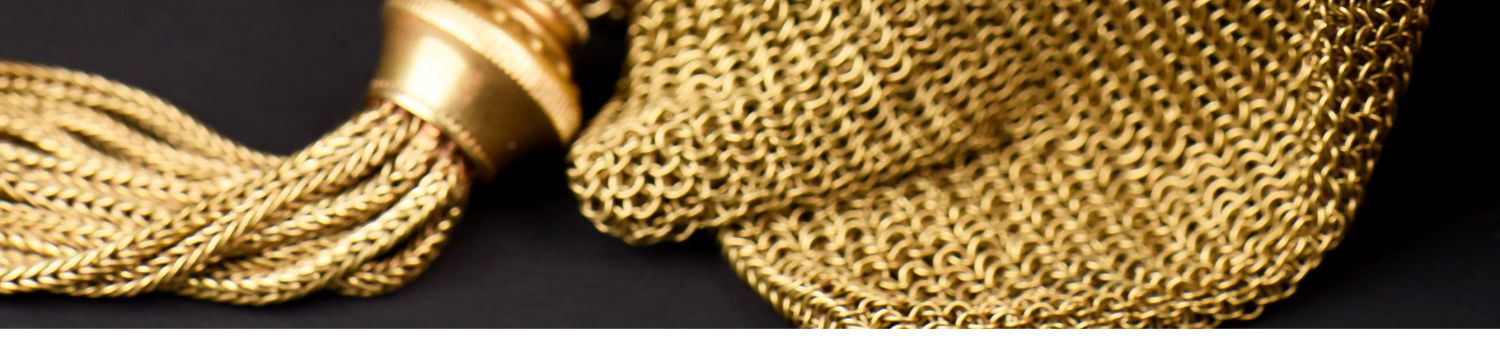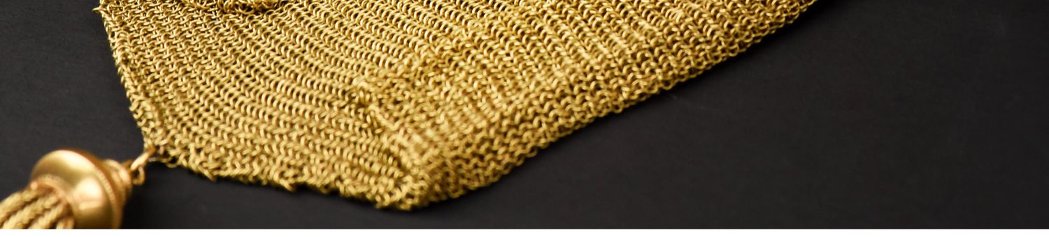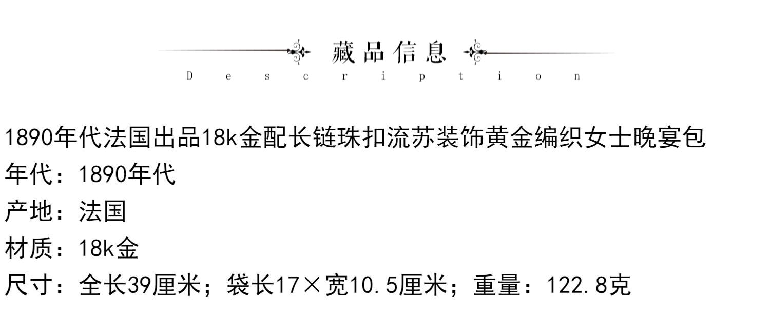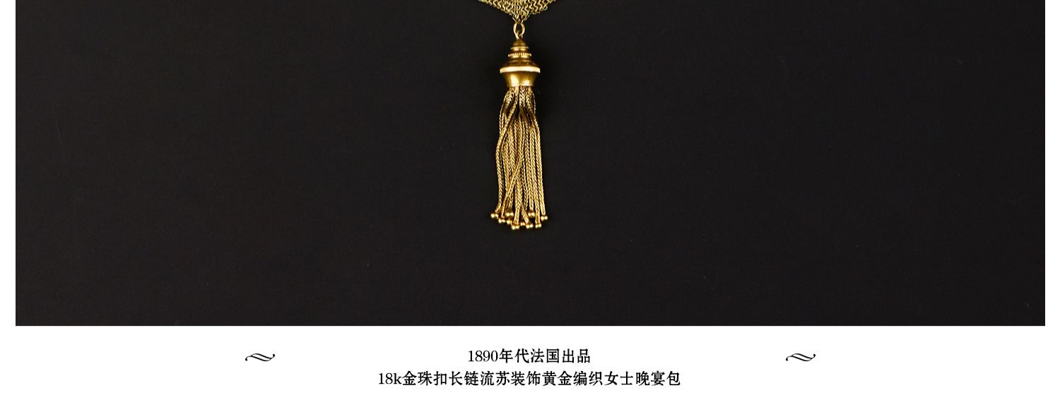 独角鹿西洋古董法国18K金长链珠扣流苏装饰黄金编织女士晚宴包