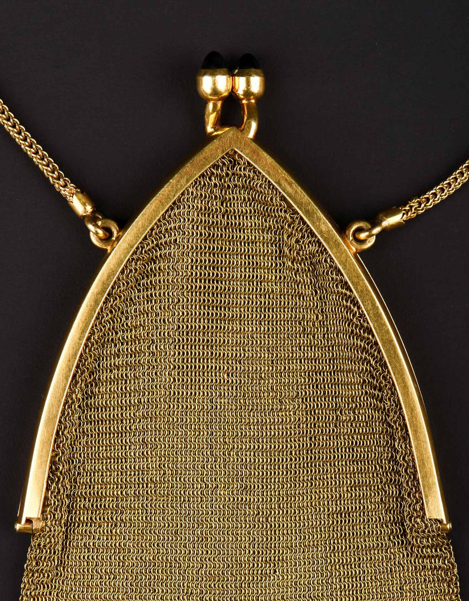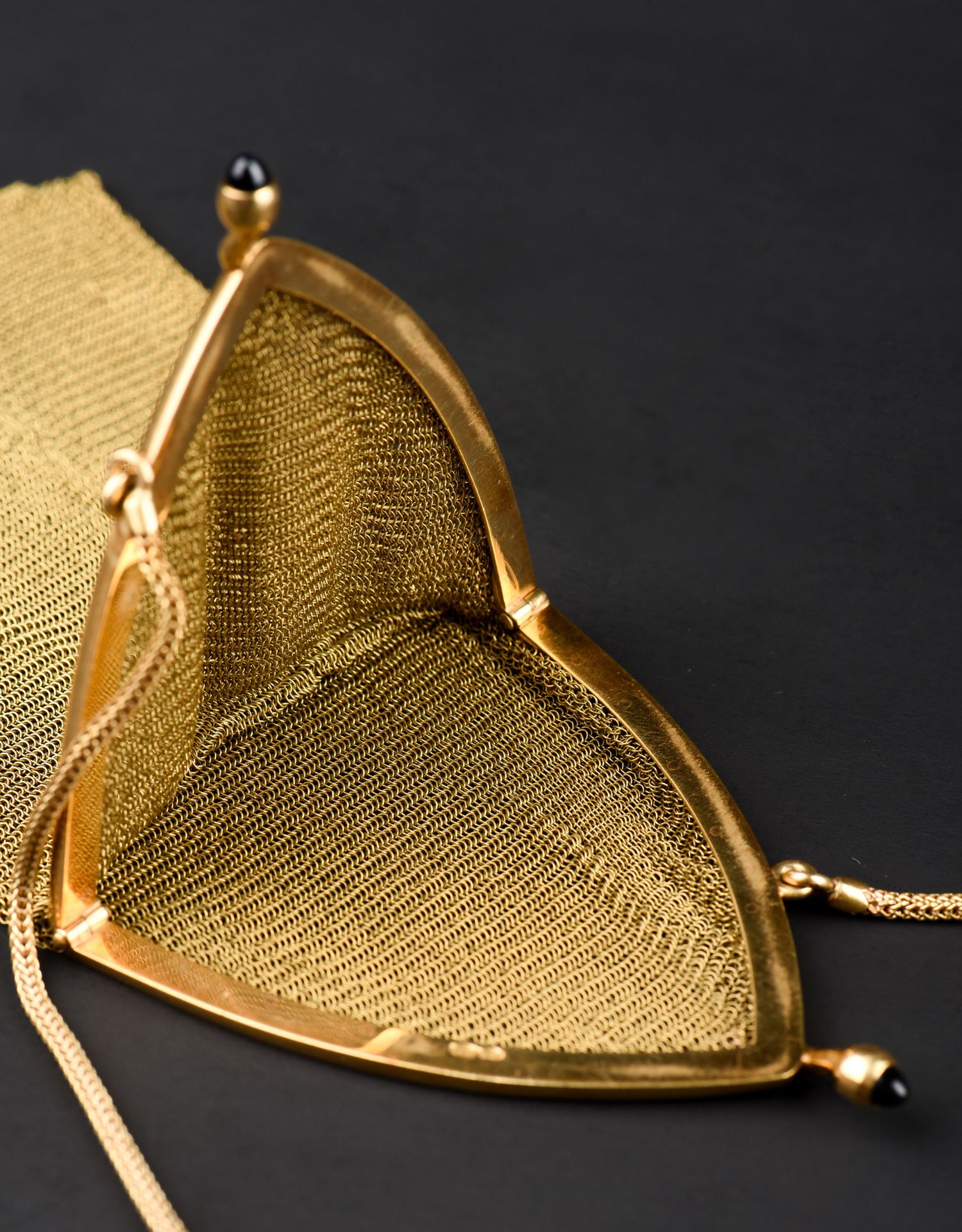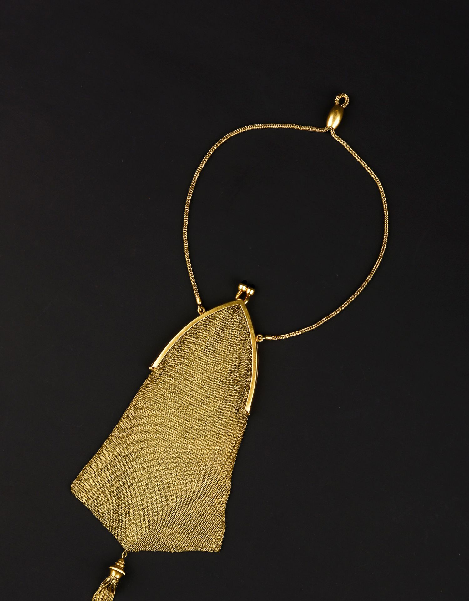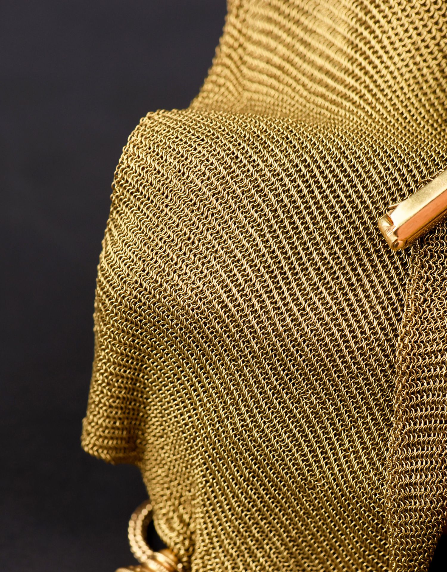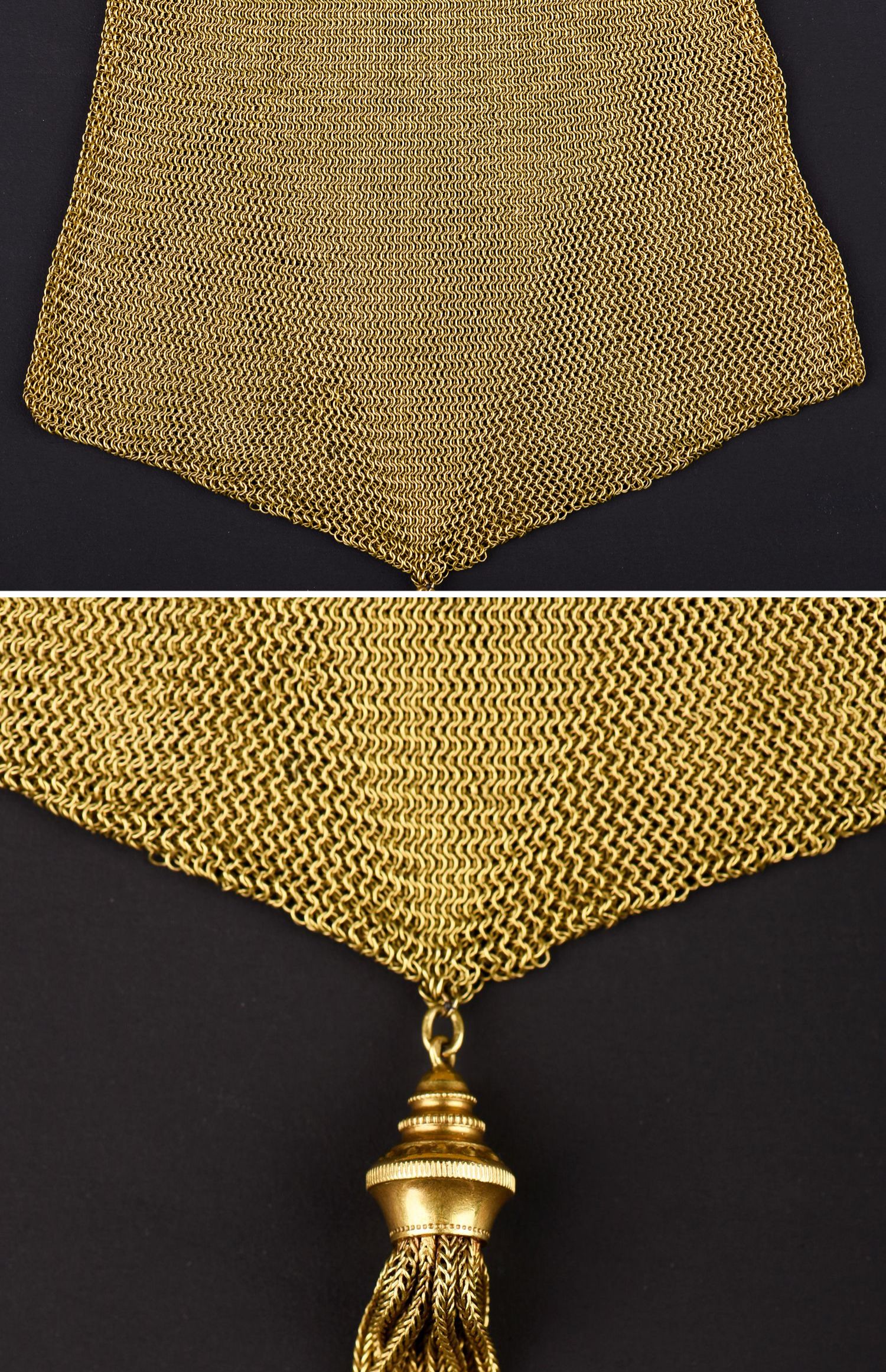 独角鹿西洋古董法国18K金长链珠扣流苏装饰黄金编织女士晚宴包
