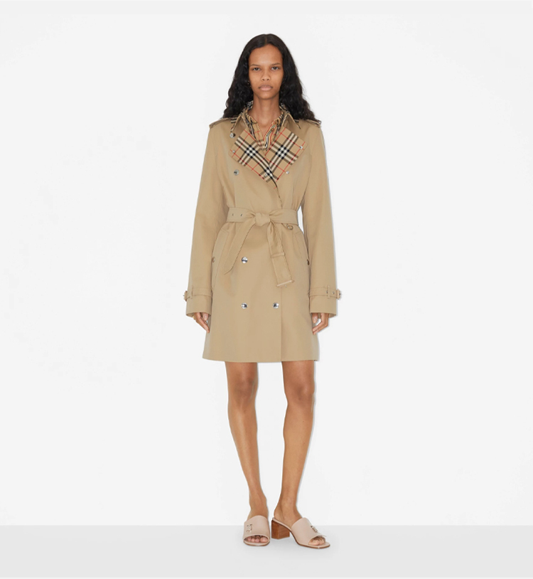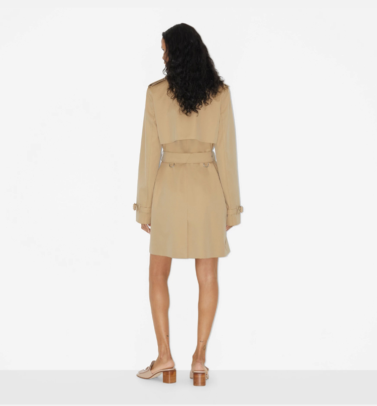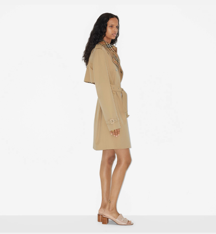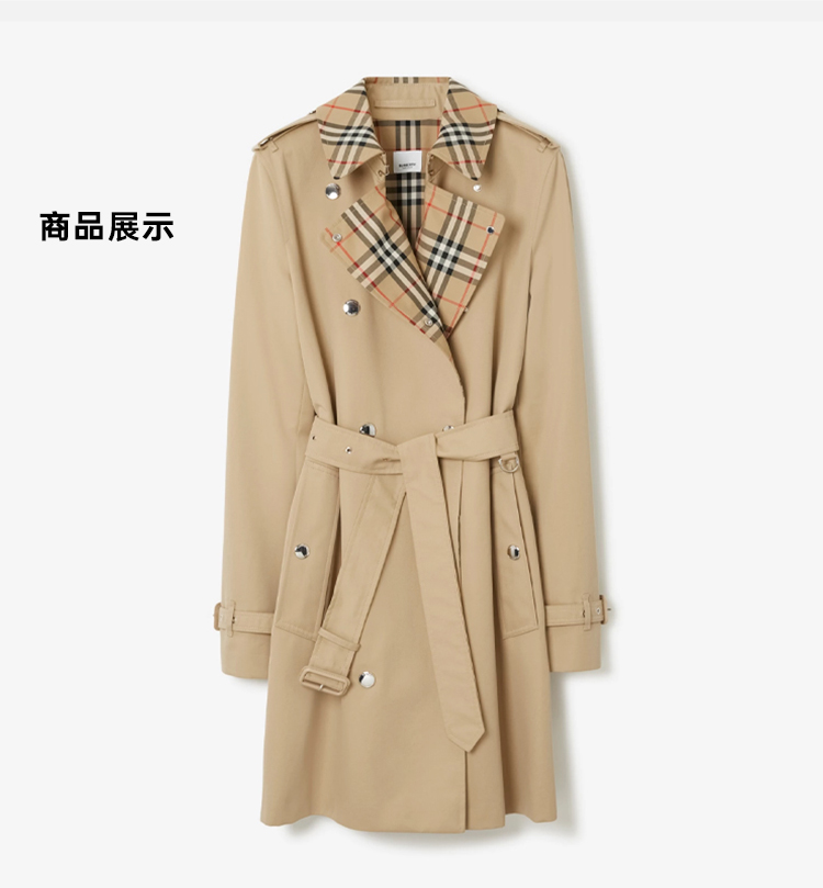 BURBERRY 巴宝莉 女士格纹装饰棉质嘎巴甸 Trench 风衣 卡其色 8070990 A1366