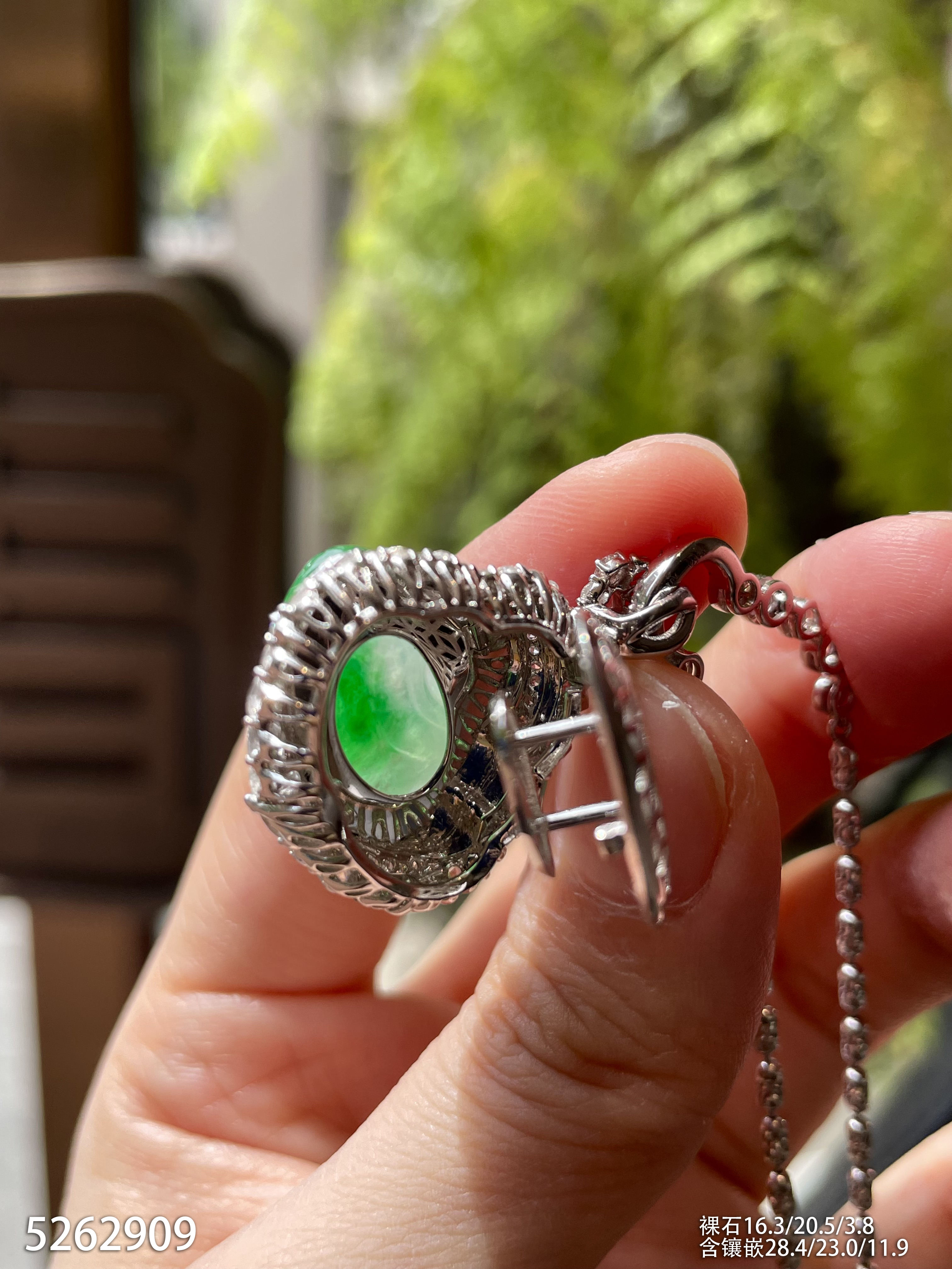 120-1232908,玻璃种木那艳绿蛋面戒指,具体价格微信咨询
