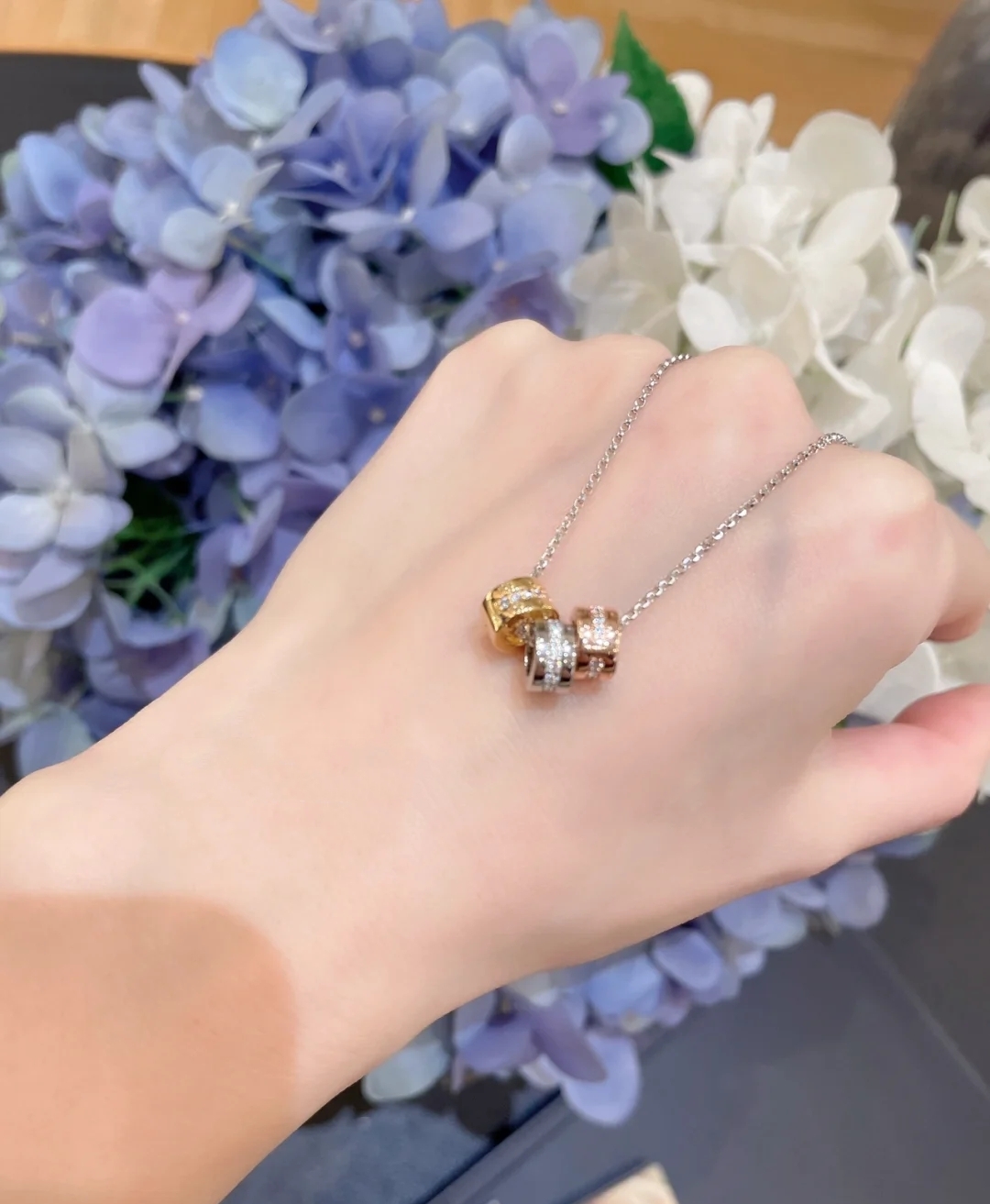 金色,银色,玫瑰金三色环上锆石镶嵌的摩斯密码!