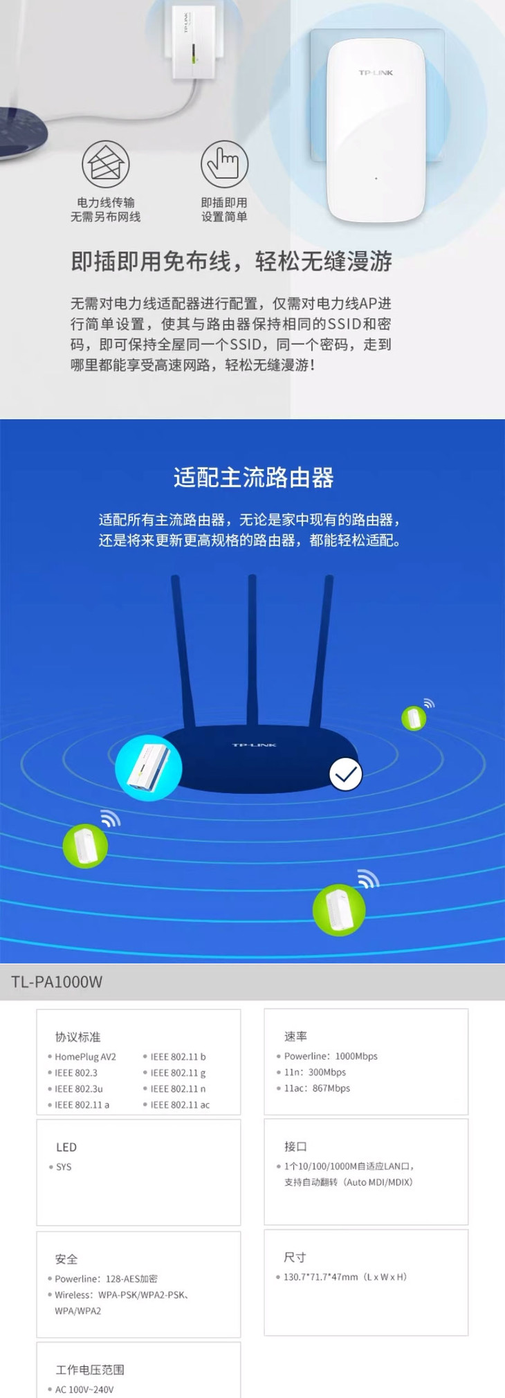 TP-LINK WiFi扩展无线电力猫套装