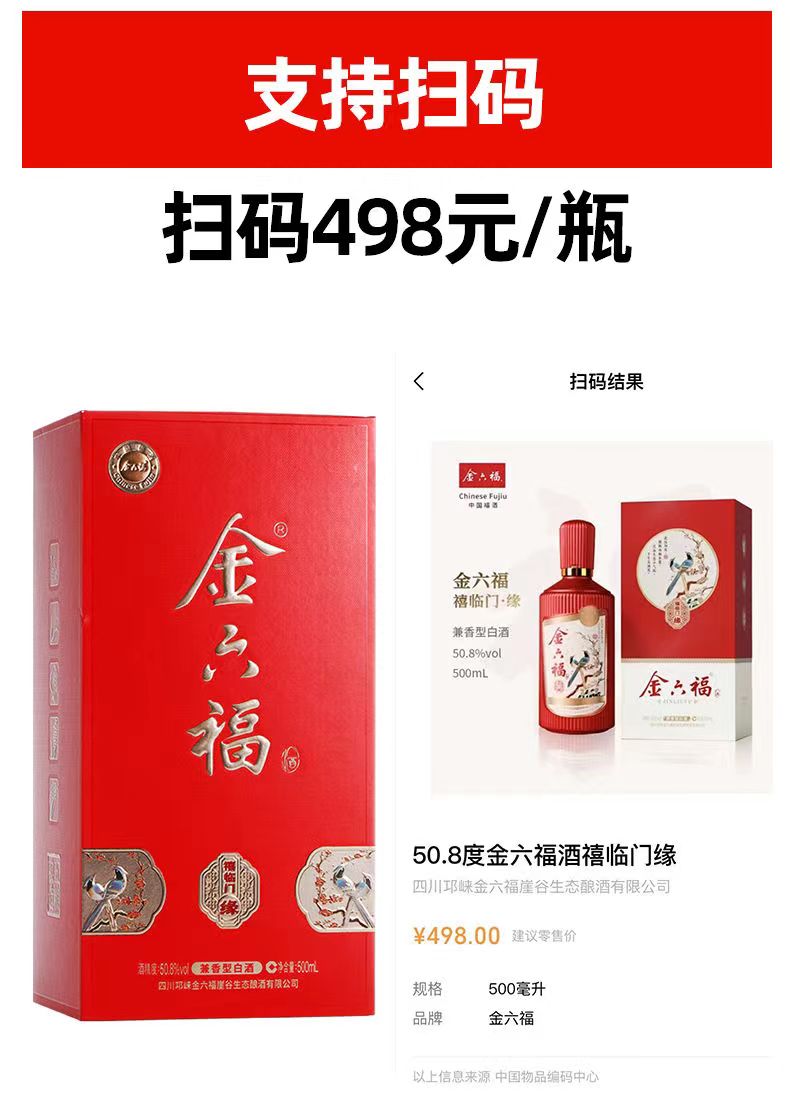 [金六福禧临门缘]-50.8度兼香型白酒整箱500ml*6瓶送礼用酒
