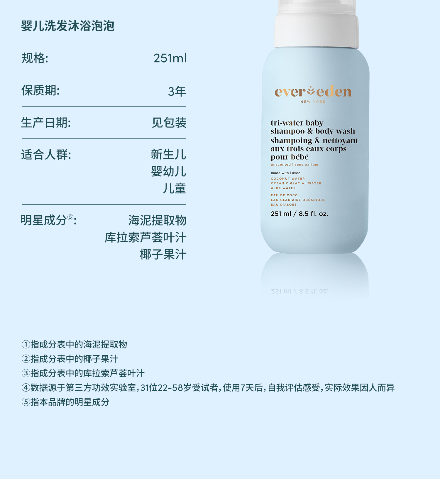 【369元任选3件】Evereden安唯伊胎脂按摩油50ml/小蓝爽身精华露118ml/小蓝洗沐251ml/无香洗沐251ml/云朵洁面100ml/至臻唇油5ml/青少年洁面100ml/小蓝唇膏