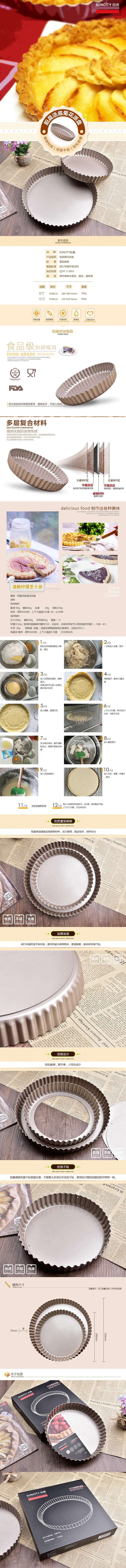 阳晨金色8/10寸活底菊花派盘 活底波浪蛋糕模 不粘镀膜脱底高圆盘/矮圆盘 烘焙模具