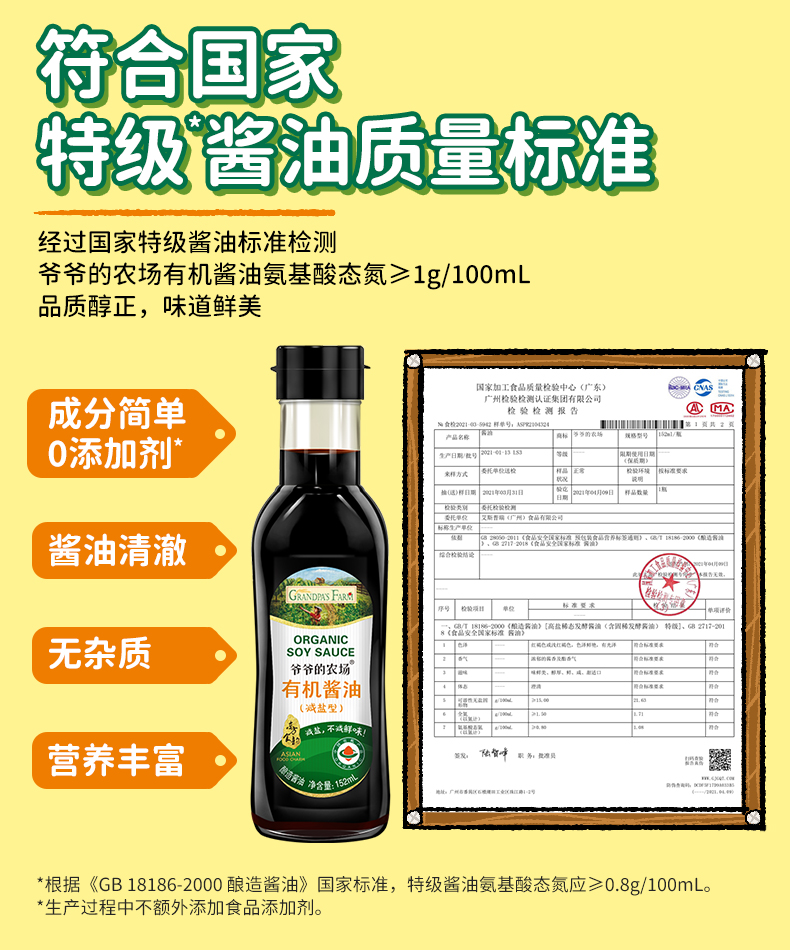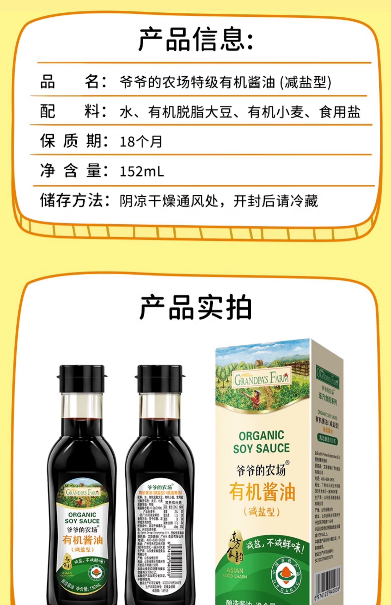 爷爷的农场有机酱油减盐型调味料无添加儿童调味料/YNC-940038