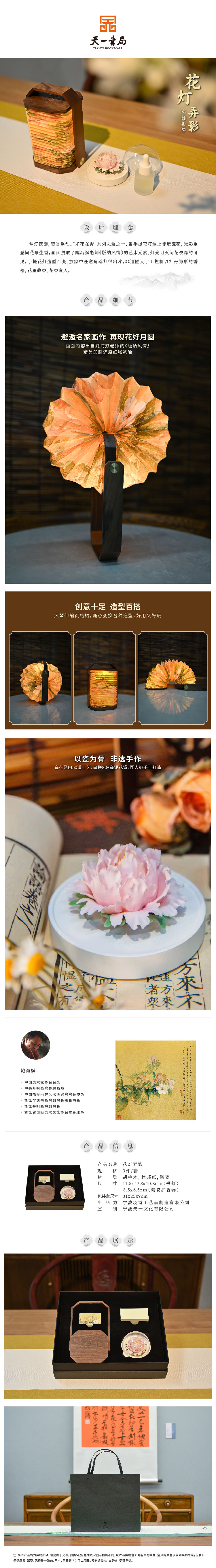 羽诗制造出品 花灯弄影手提书灯陶瓷扩香器礼盒套装